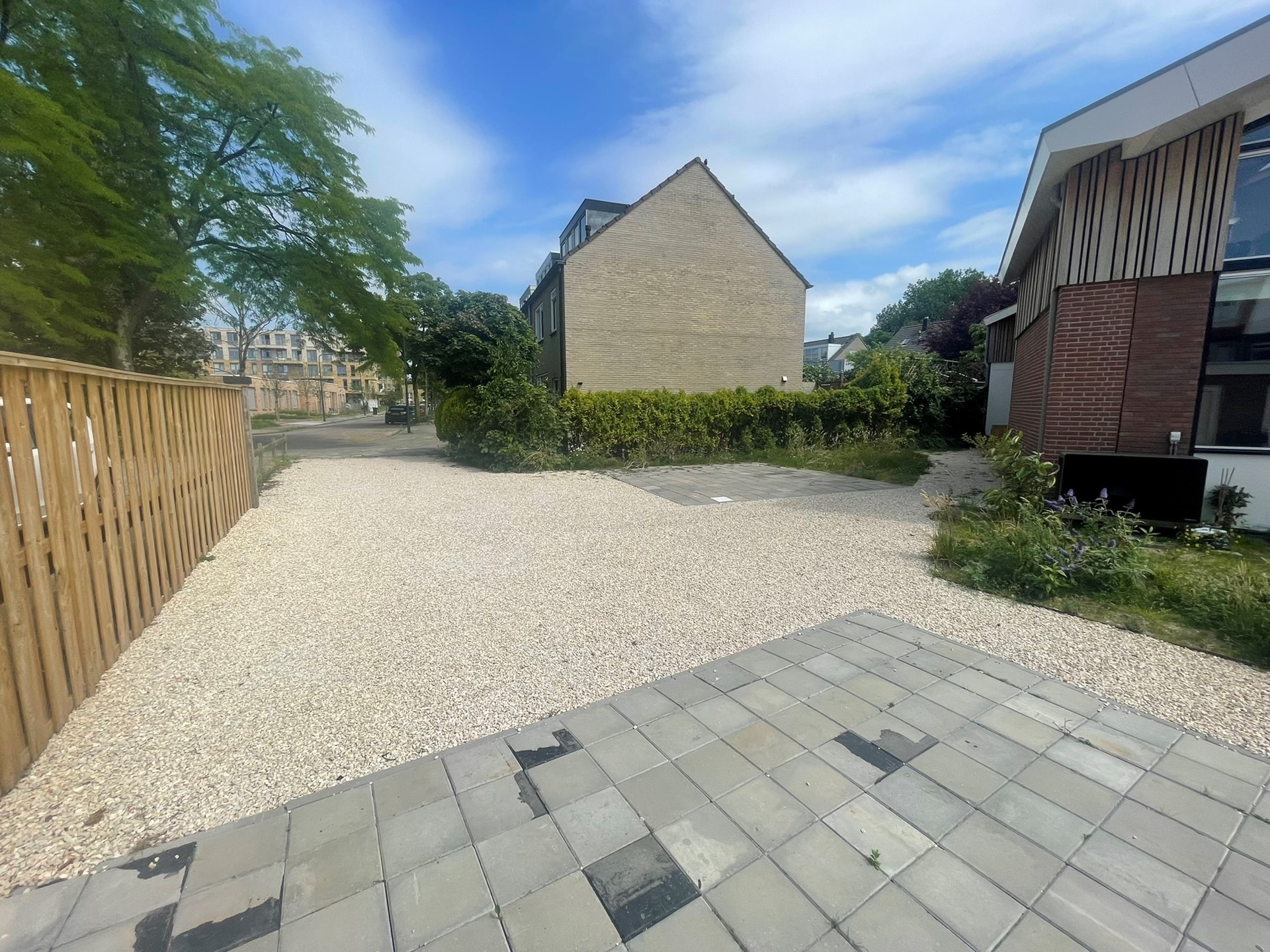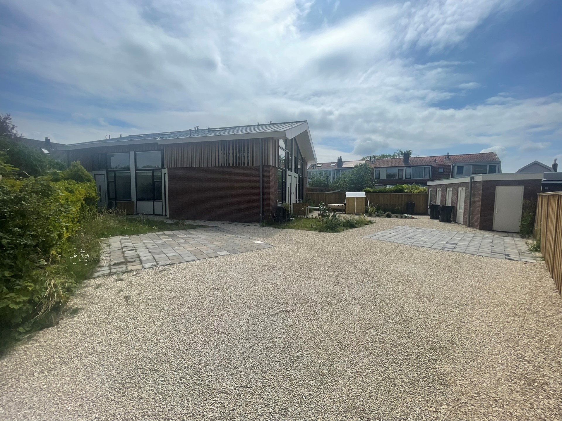 Entree perceel met toegang tot parkeerplek, berging en woning.