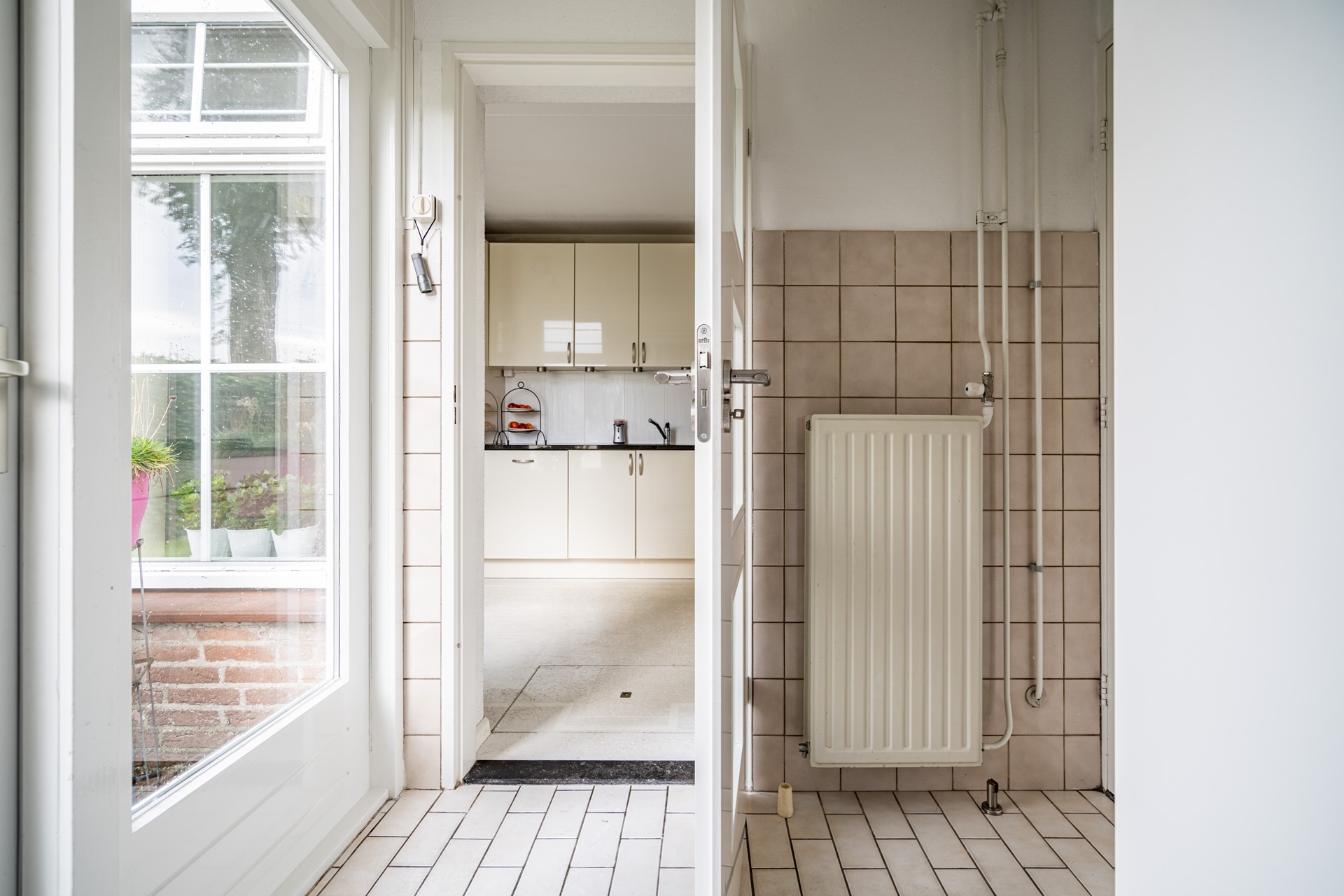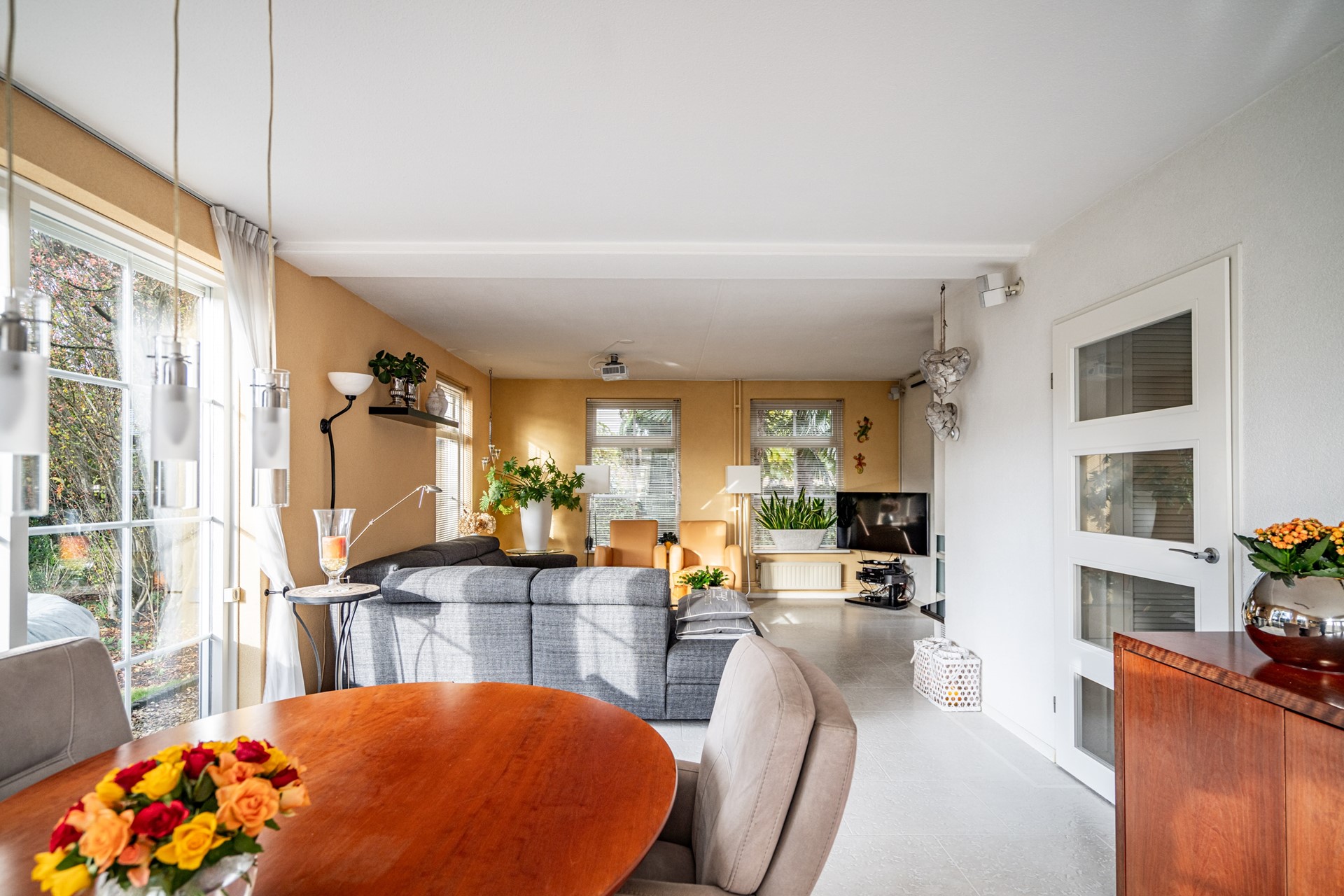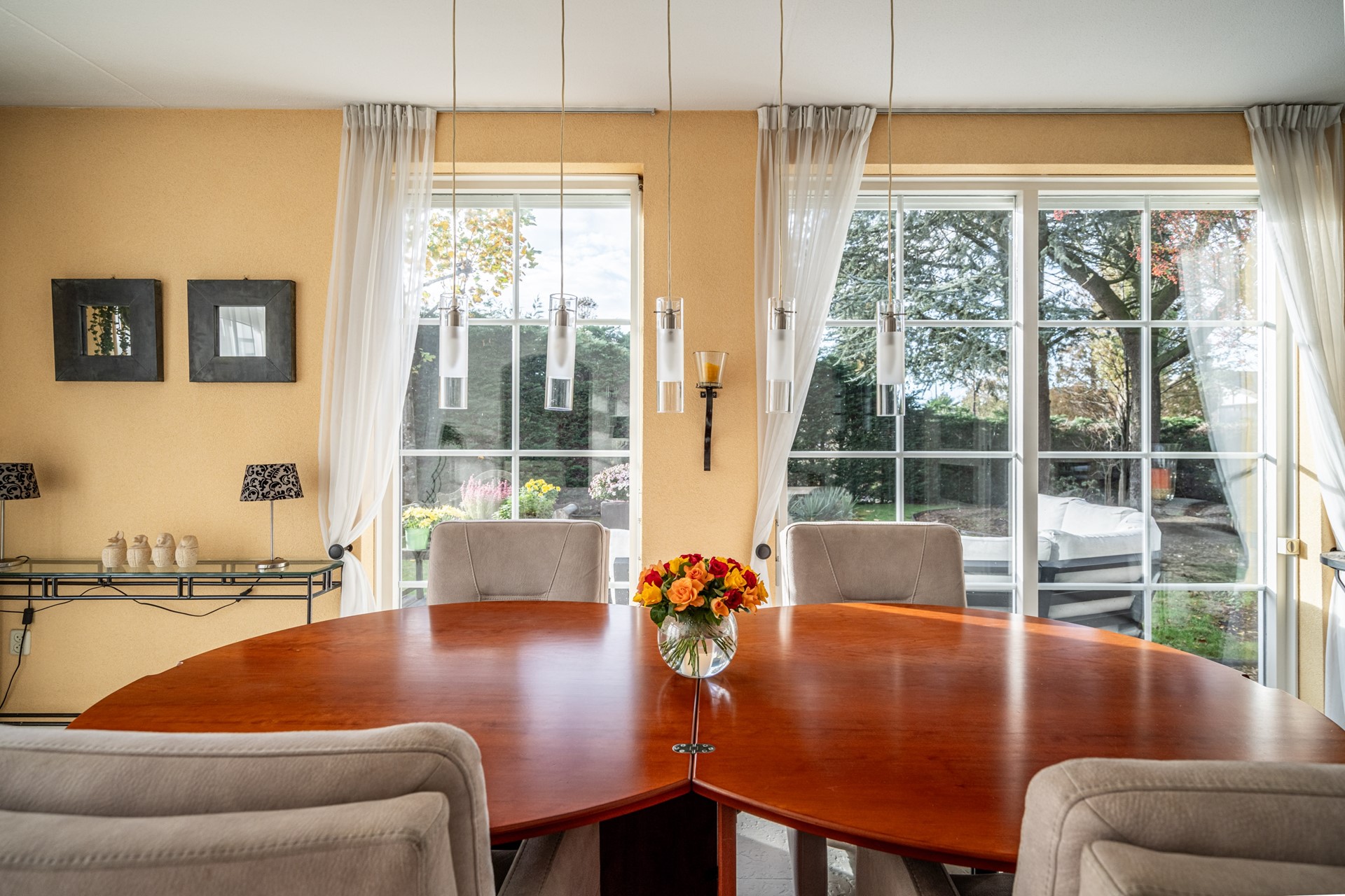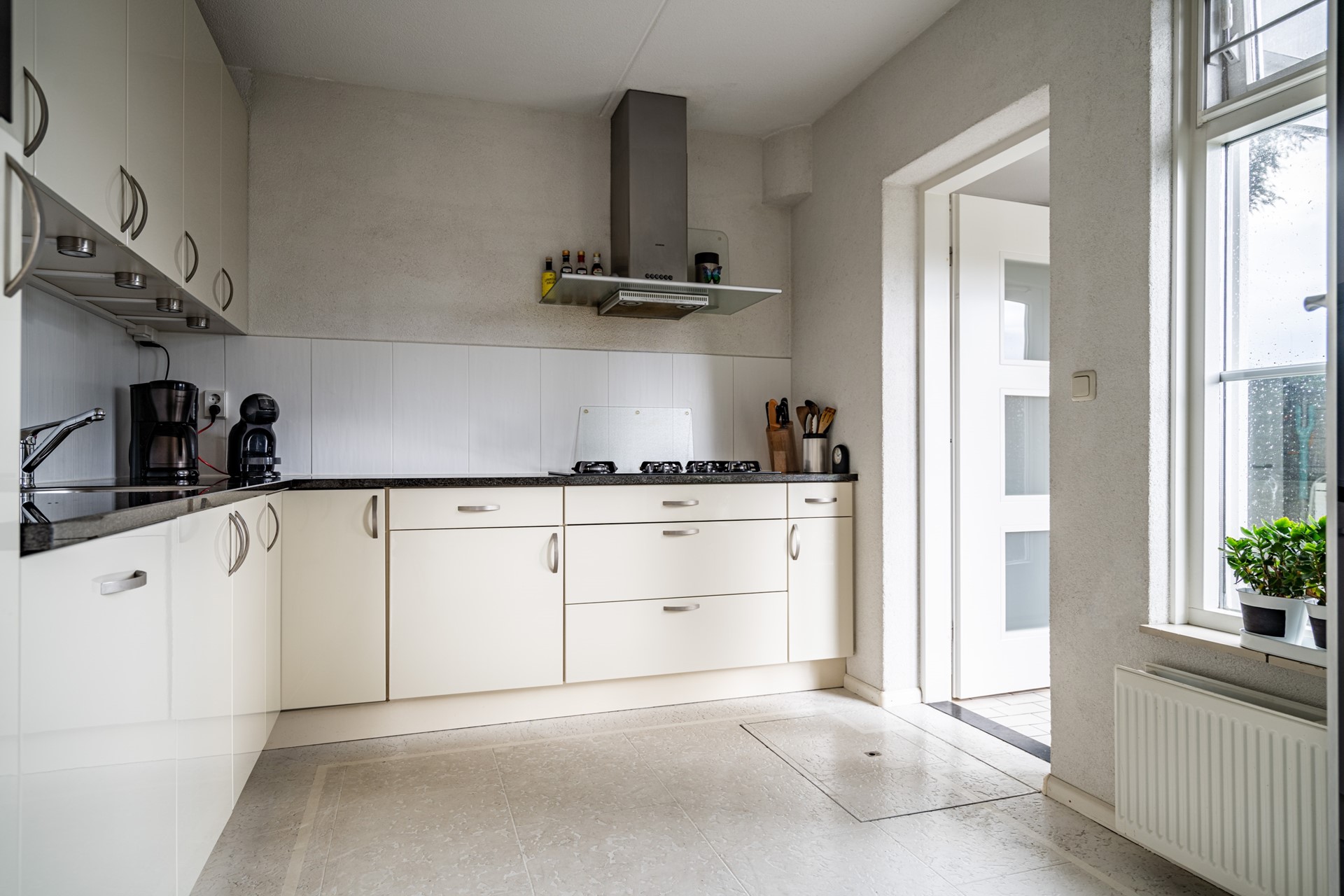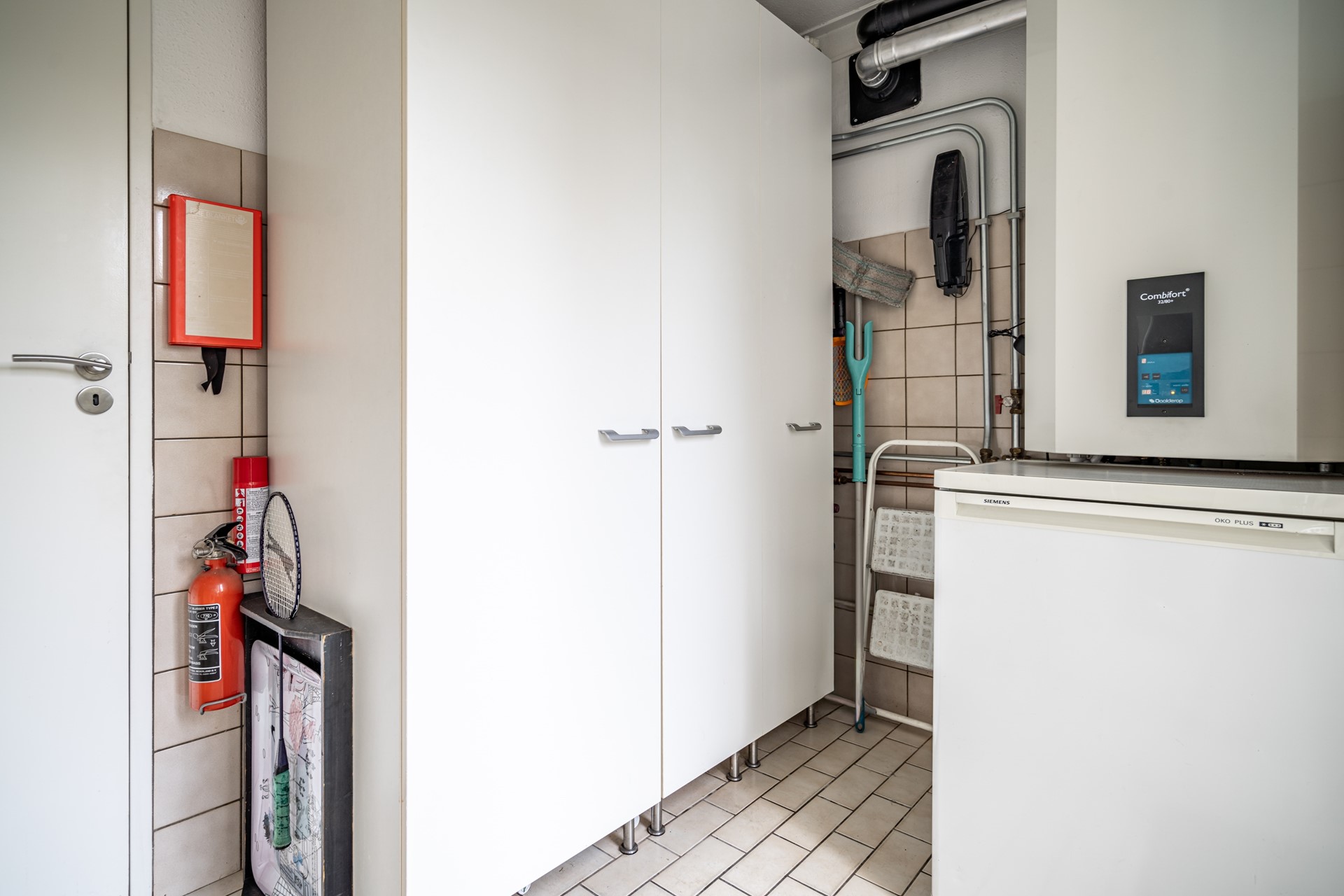De halfopen keuken is compleet uitgerust met een vijfpits gasfornuis, vaatwasser, afzuigkap, oven, koelkast en granieten werkblad. Vanuit de woonkamer heeft u een prachtig zicht op de tuin, waardoor binnen en buiten naadloos in elkaar overgaan. De bijkeuken biedt extra bergruimte, toegang tot de garage en de tuin.