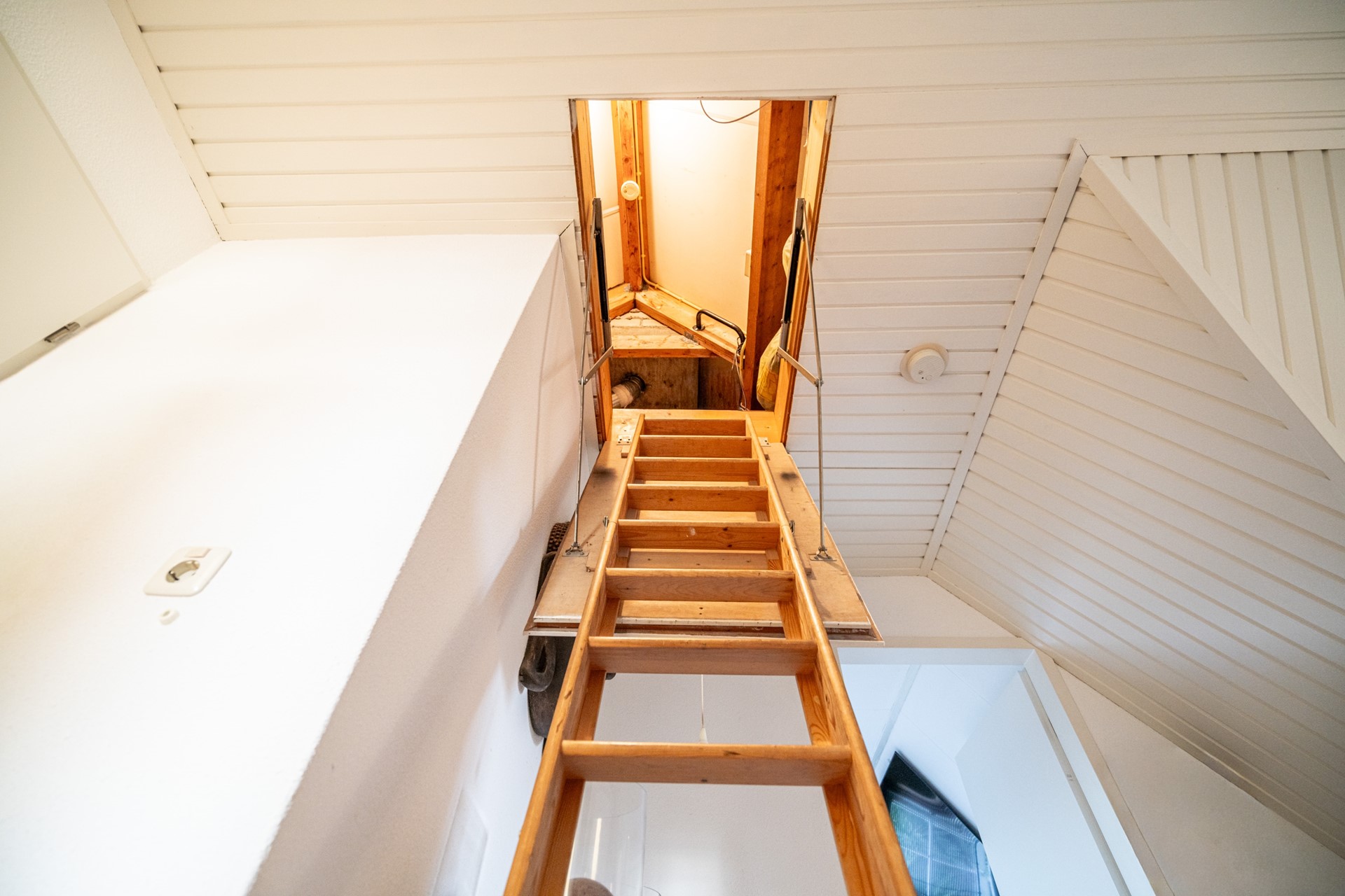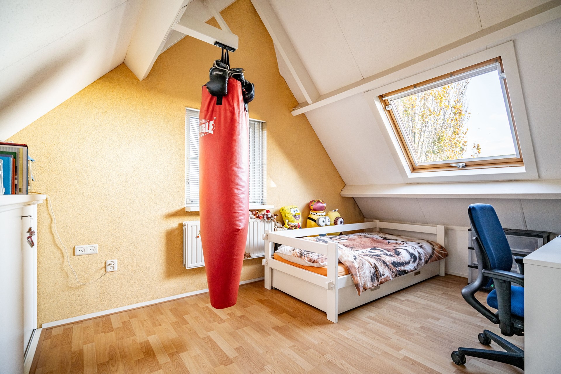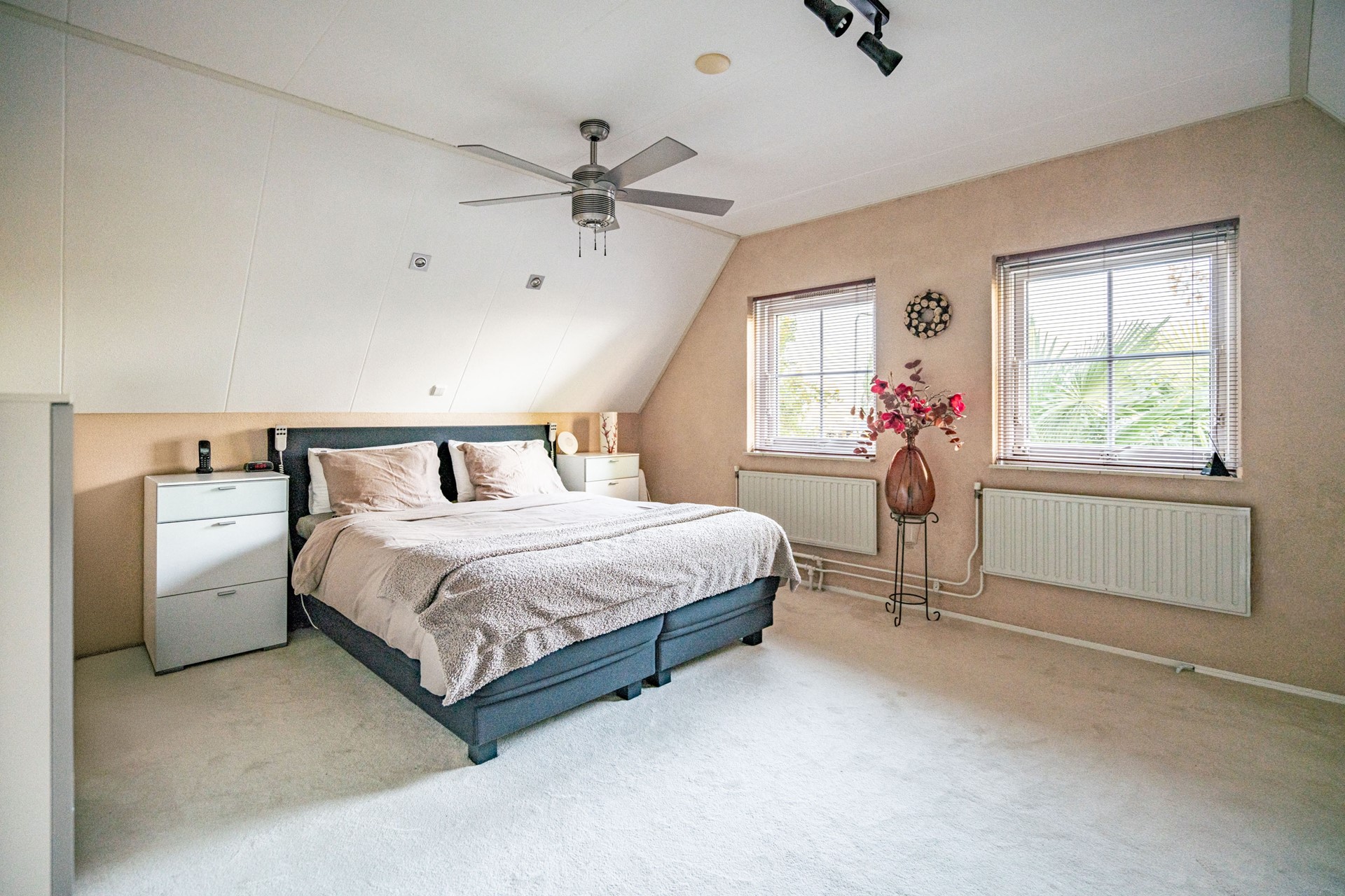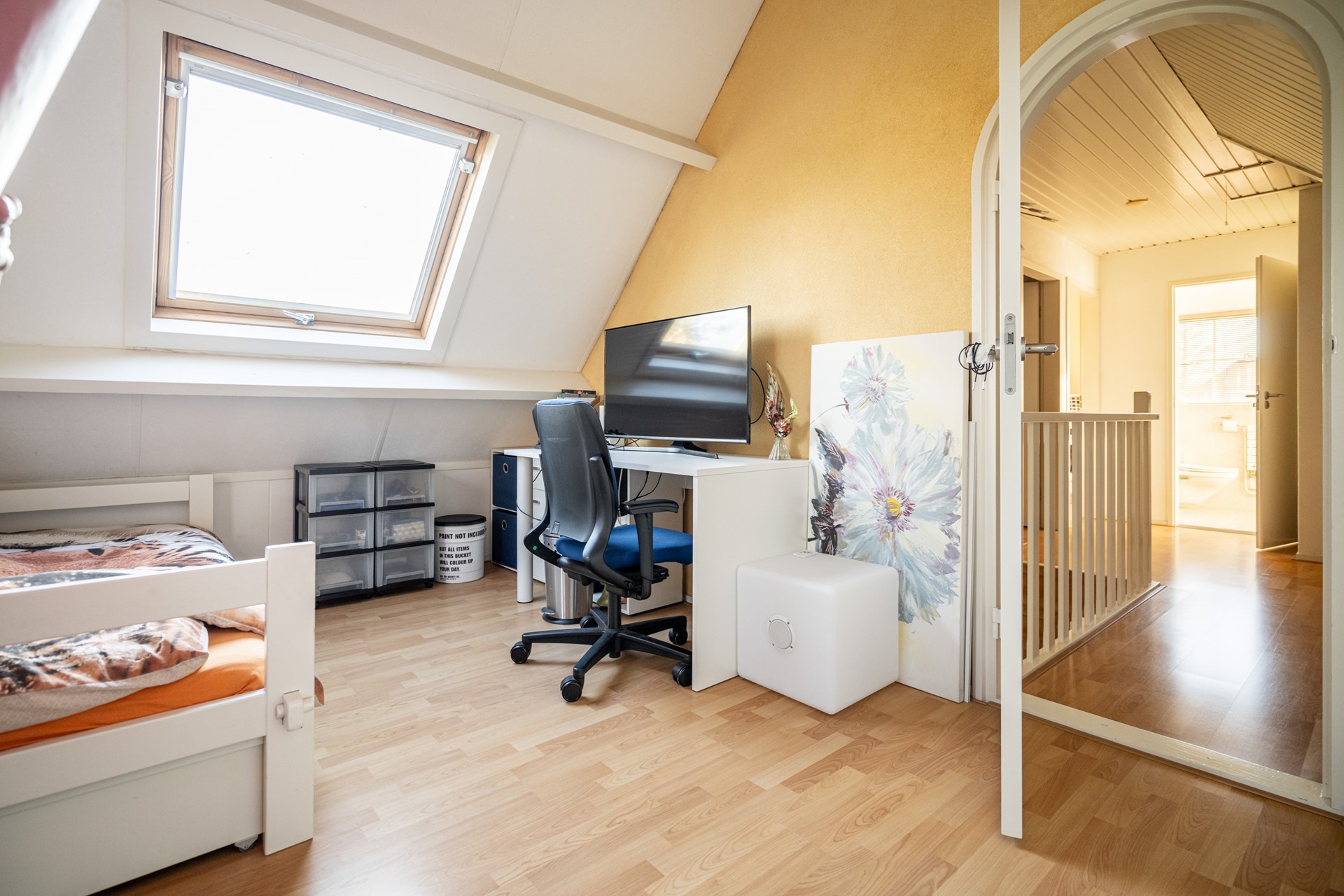 De tweede slaapkamer boven de garage is eveneens royaal en licht.