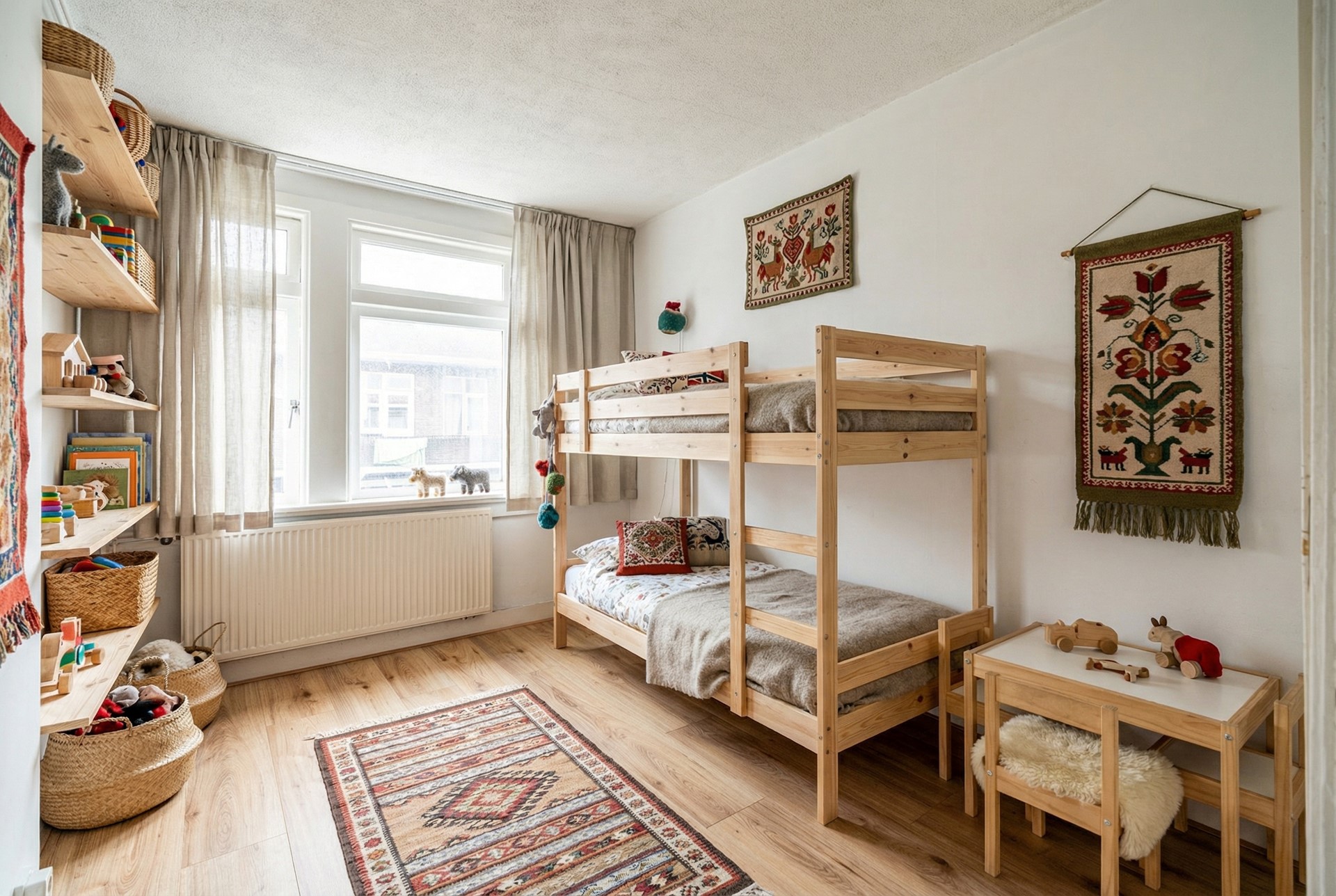 NAAST DE WOONKAMER ZIJN ER NOG 3 SLAAPKAMERS VAN GOED FORMAAT AANWEZIG.