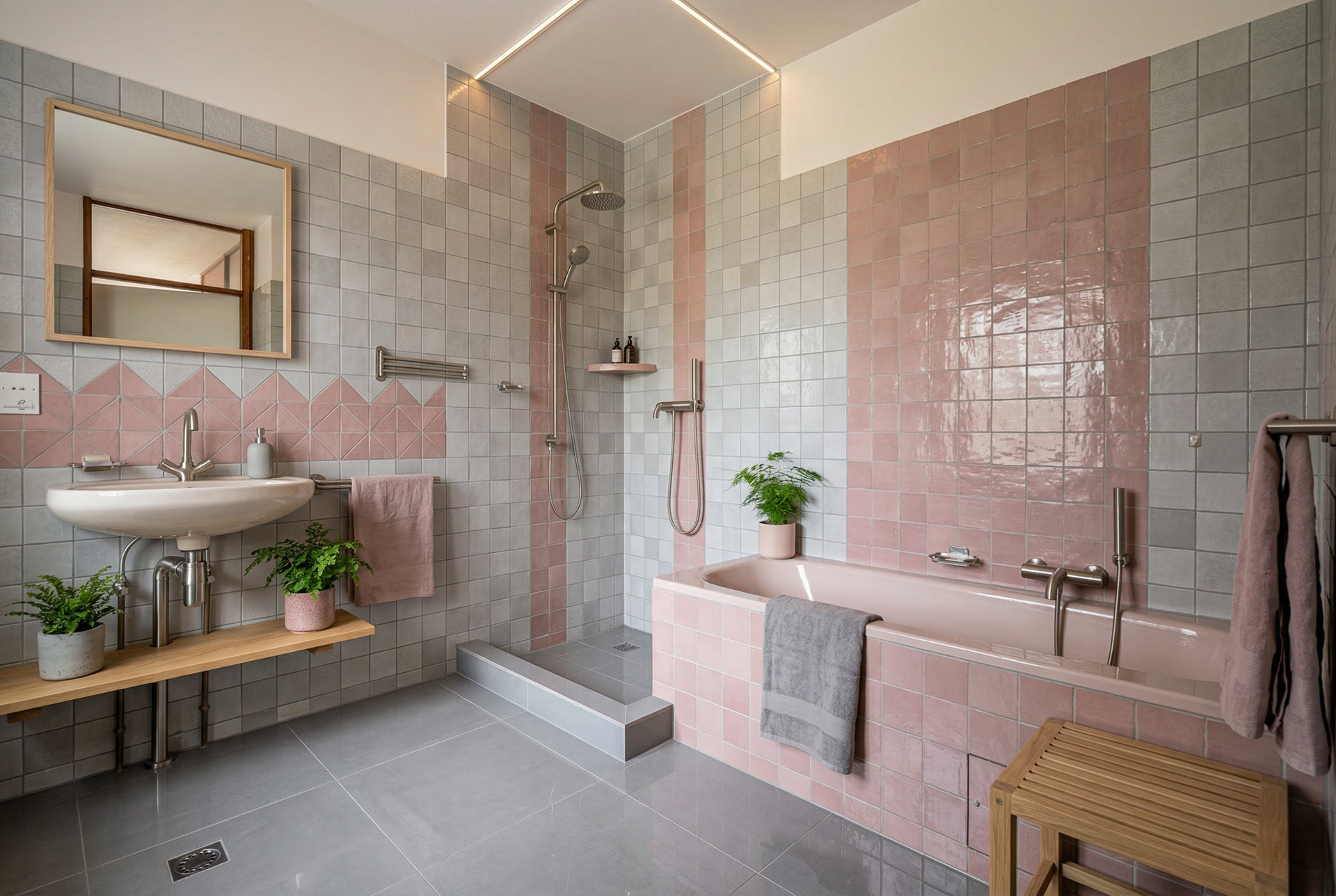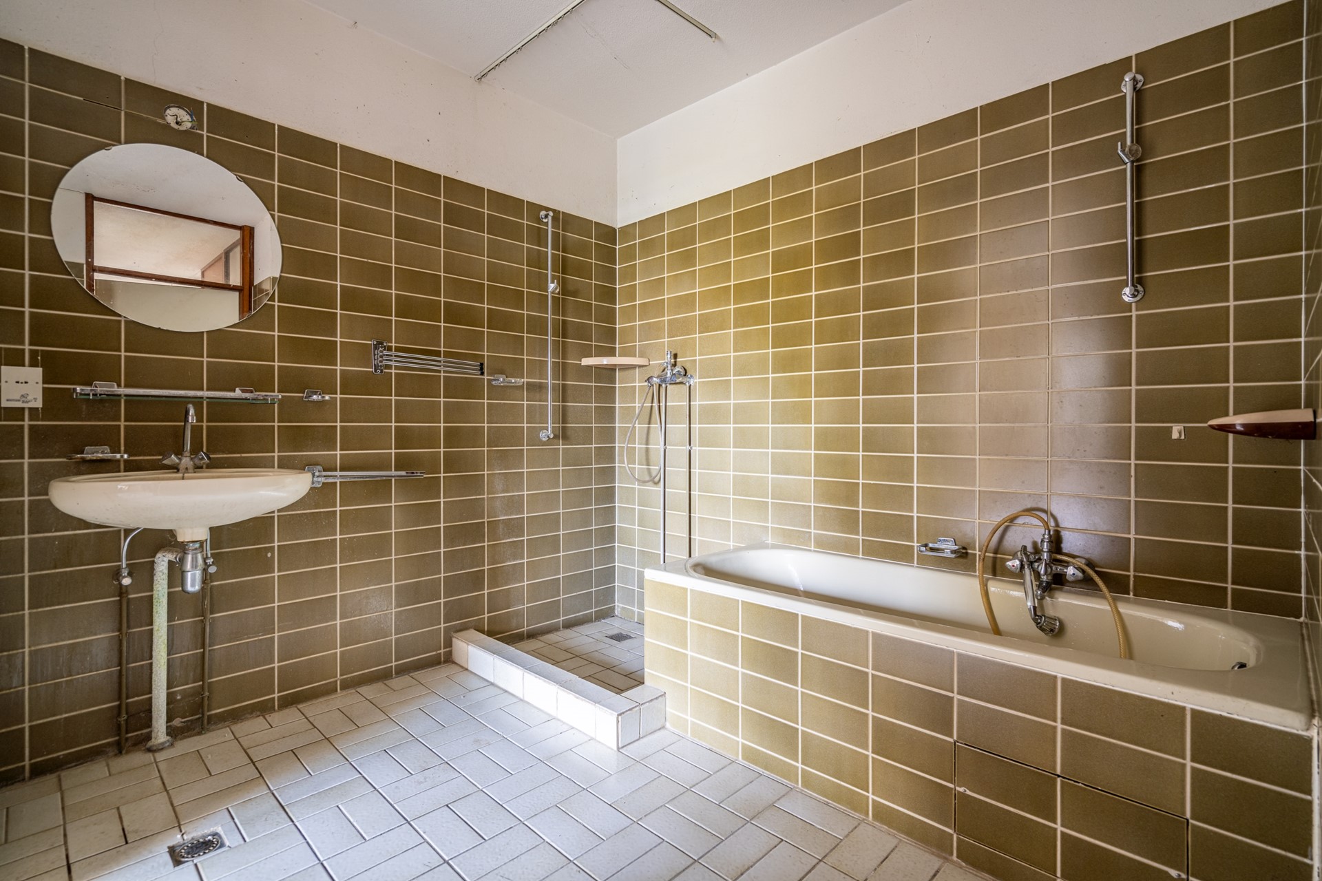 - A bathroom with a bathtub, separate shower, washbasin, and bidet