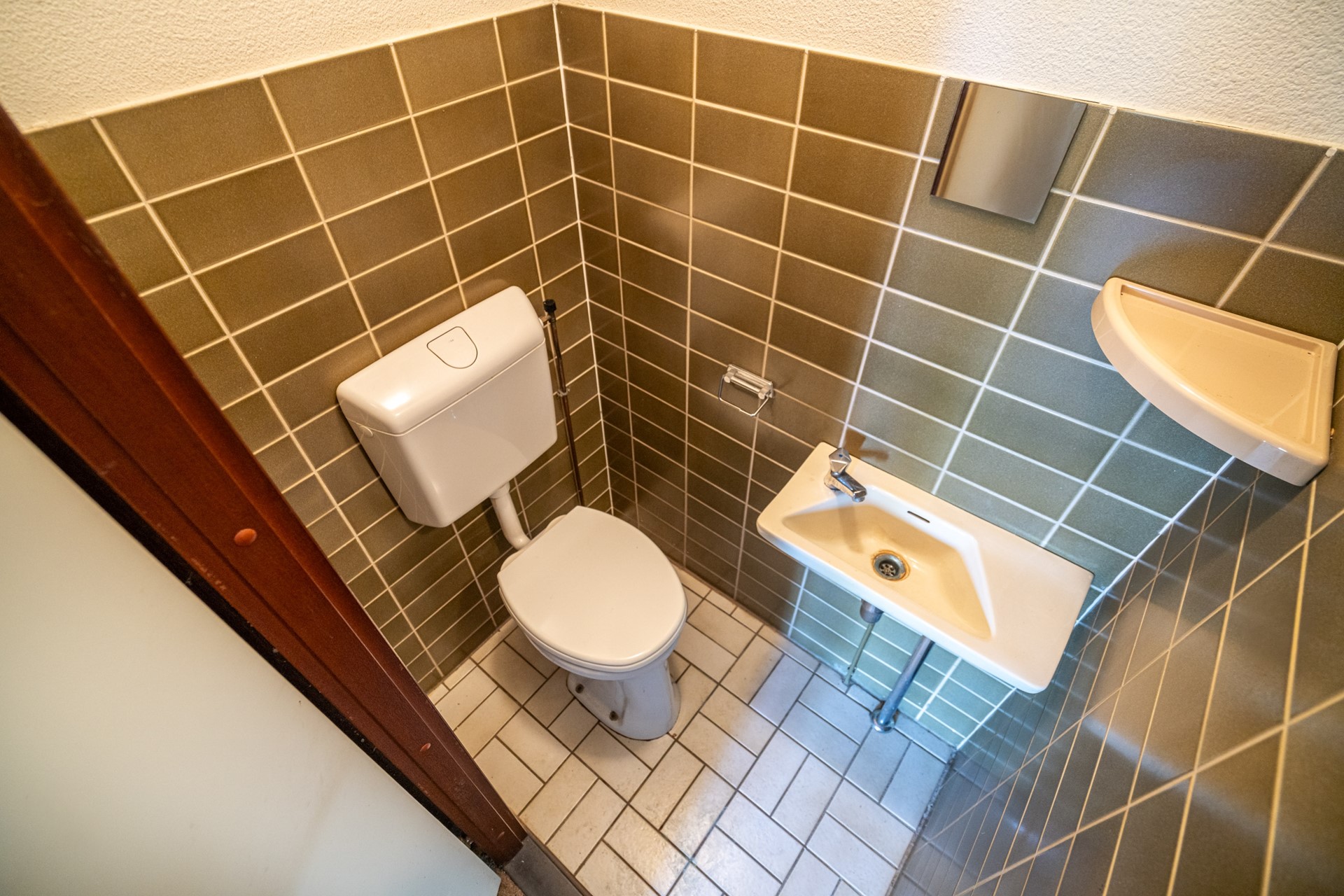 De semi-open keuken grenst aan de woonkamer en is voorzien van inbouwapparatuur. Vanuit de hal bereikt u verder: