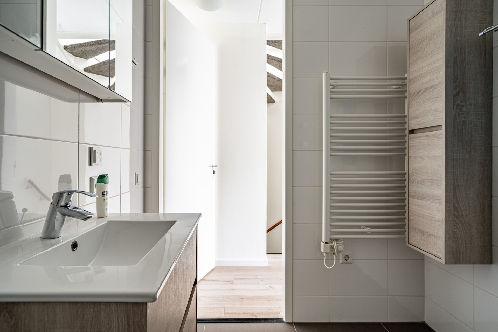 Met de vaste trap bereikt u de slaapverdieping. Hier vindt u twee ruime slaapkamers, een moderne badkamer en een aparte technische ruimte.