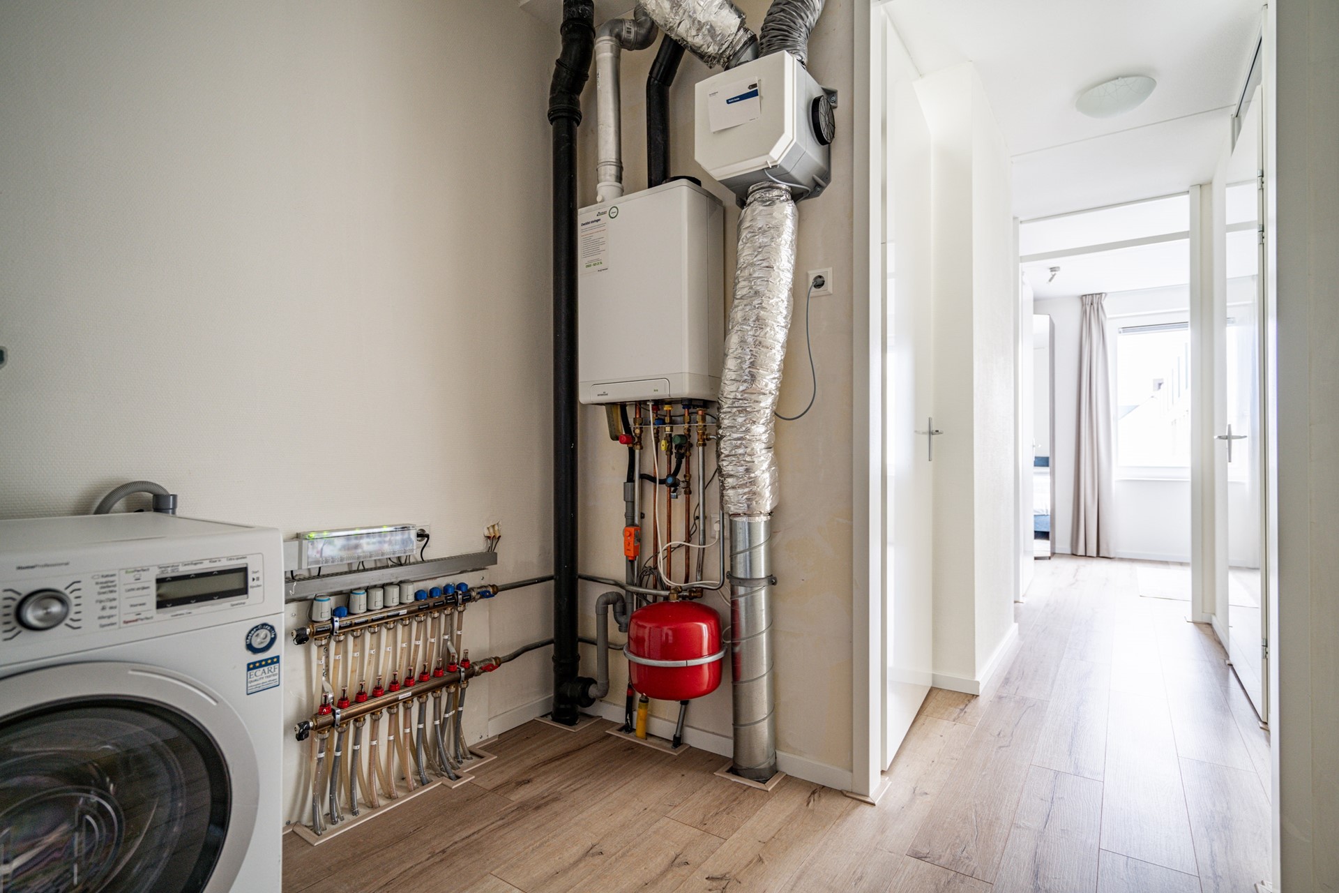 In addition, there is a separate utility room with the central heating boiler (Itho Daalderop) and underfloor heating manifold. The floor also has underfloor heating, with the rooms individually adjustable.