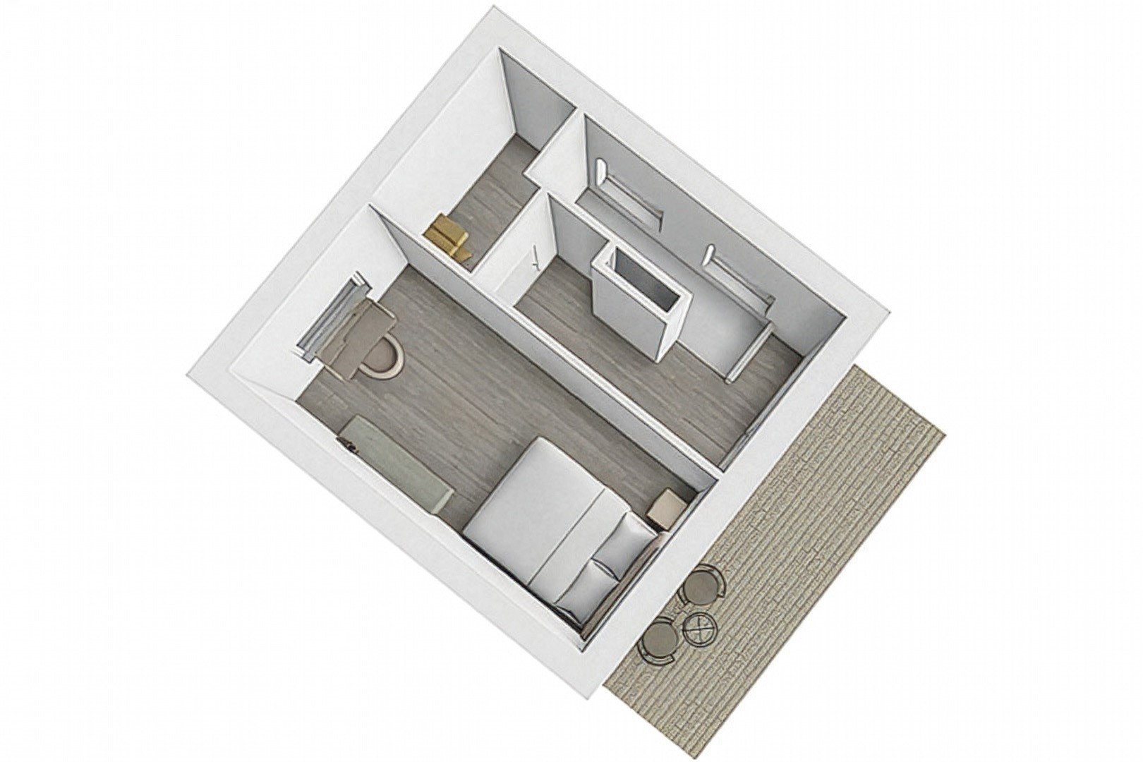 Derde verdieping – gerealiseerde opbouw met extra terras