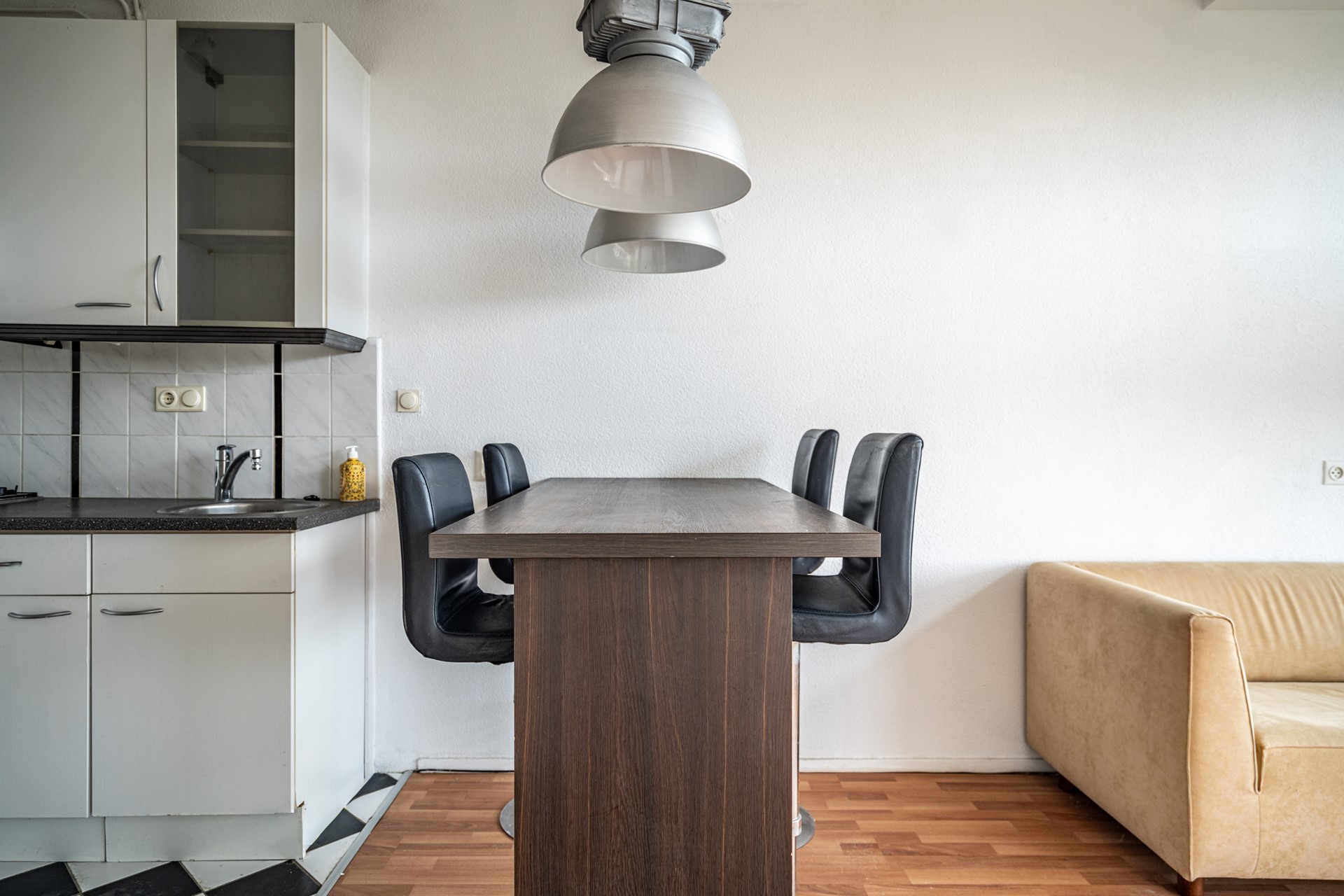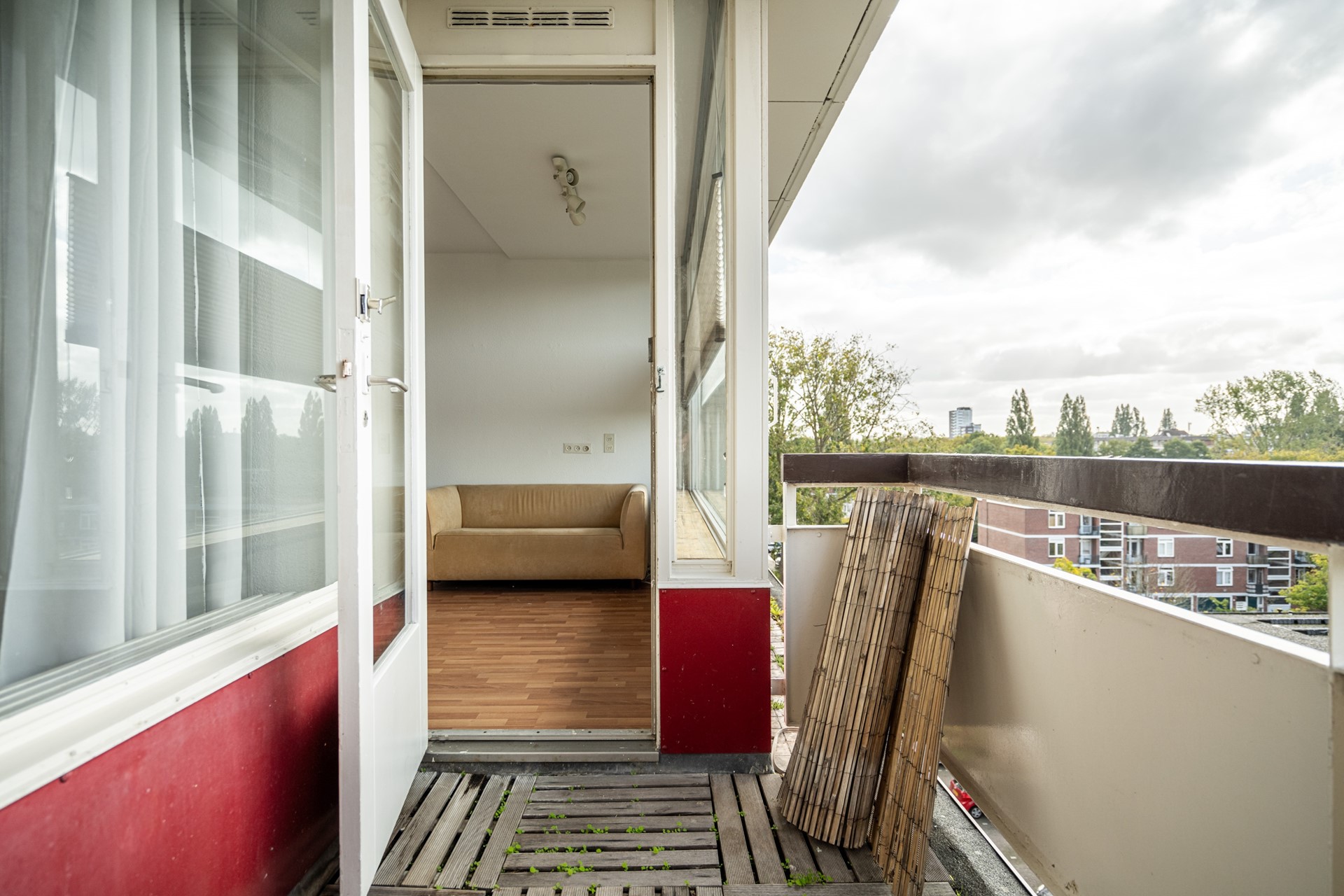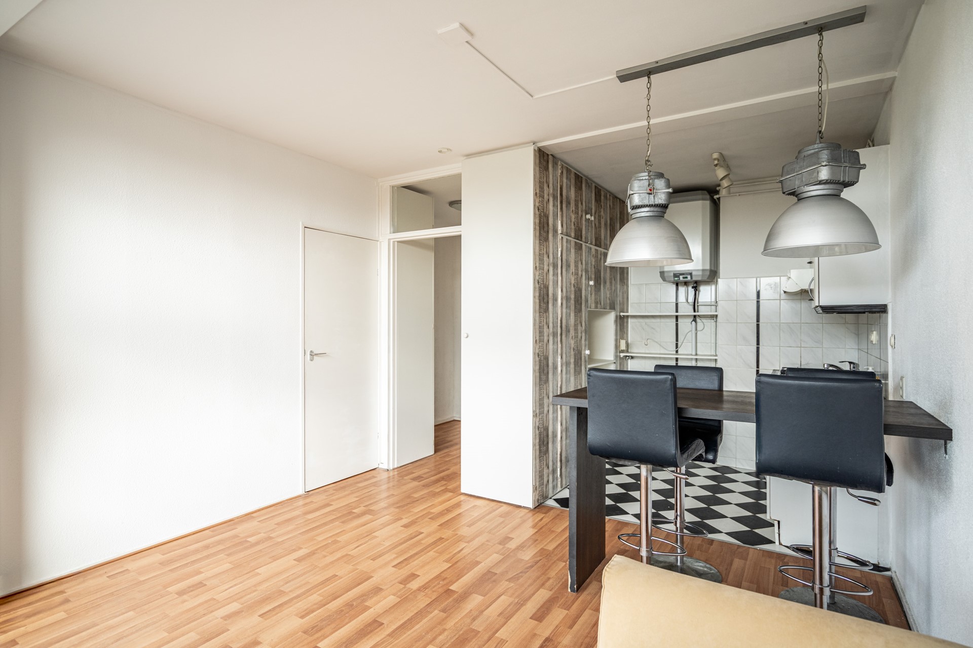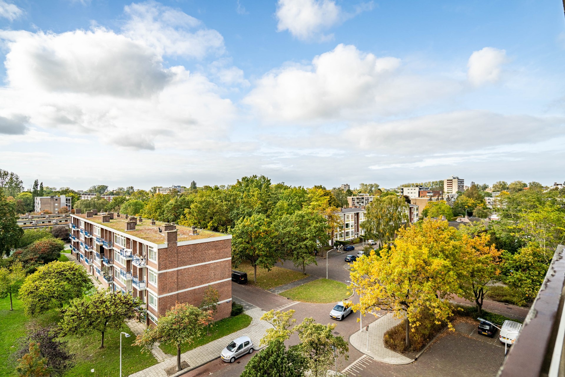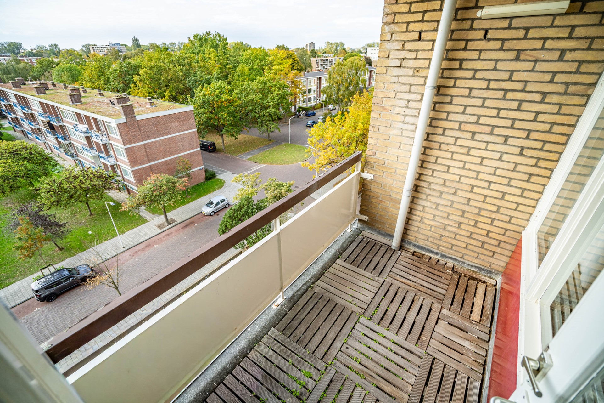 On the fifth floor of the Rijnlandflat in Leiden, you'll find this modern apartment, partially furnished and move-in ready. From the living room, you have access to the west-facing balcony, where you can enjoy the sun and the beautiful view until the evening.