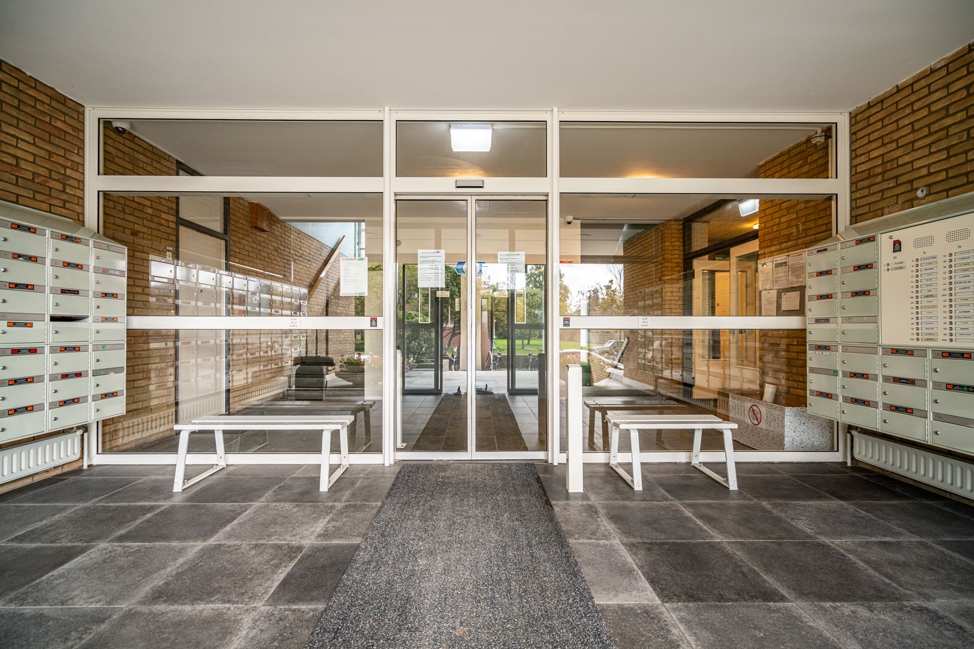 Afgesloten centrale entree met brievenbussen, bellentableau en camerabewaking. Via het trappenhuis of de lift bereikt u de gemeenschappelijke fietsenstalling en uw eigen berging in de onderbouw.