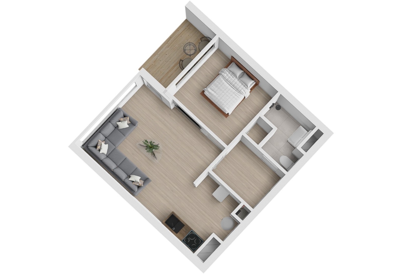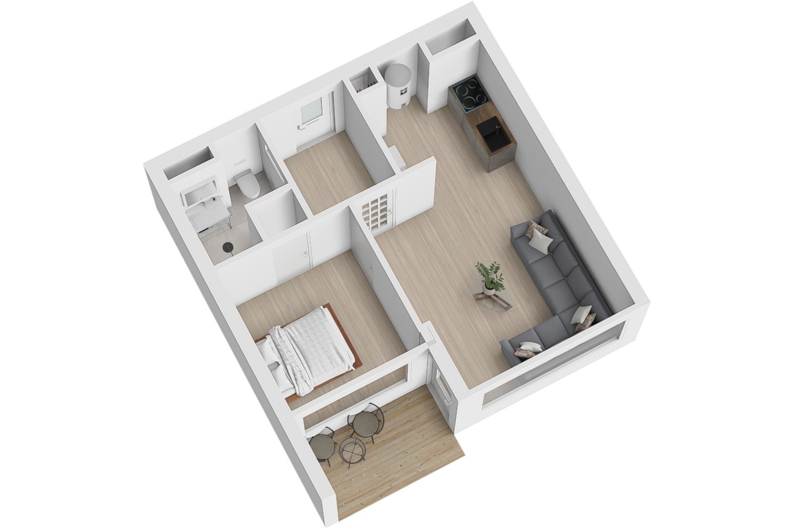 • Modern, gedeeltelijk gemeubileerd tweekamerappartement