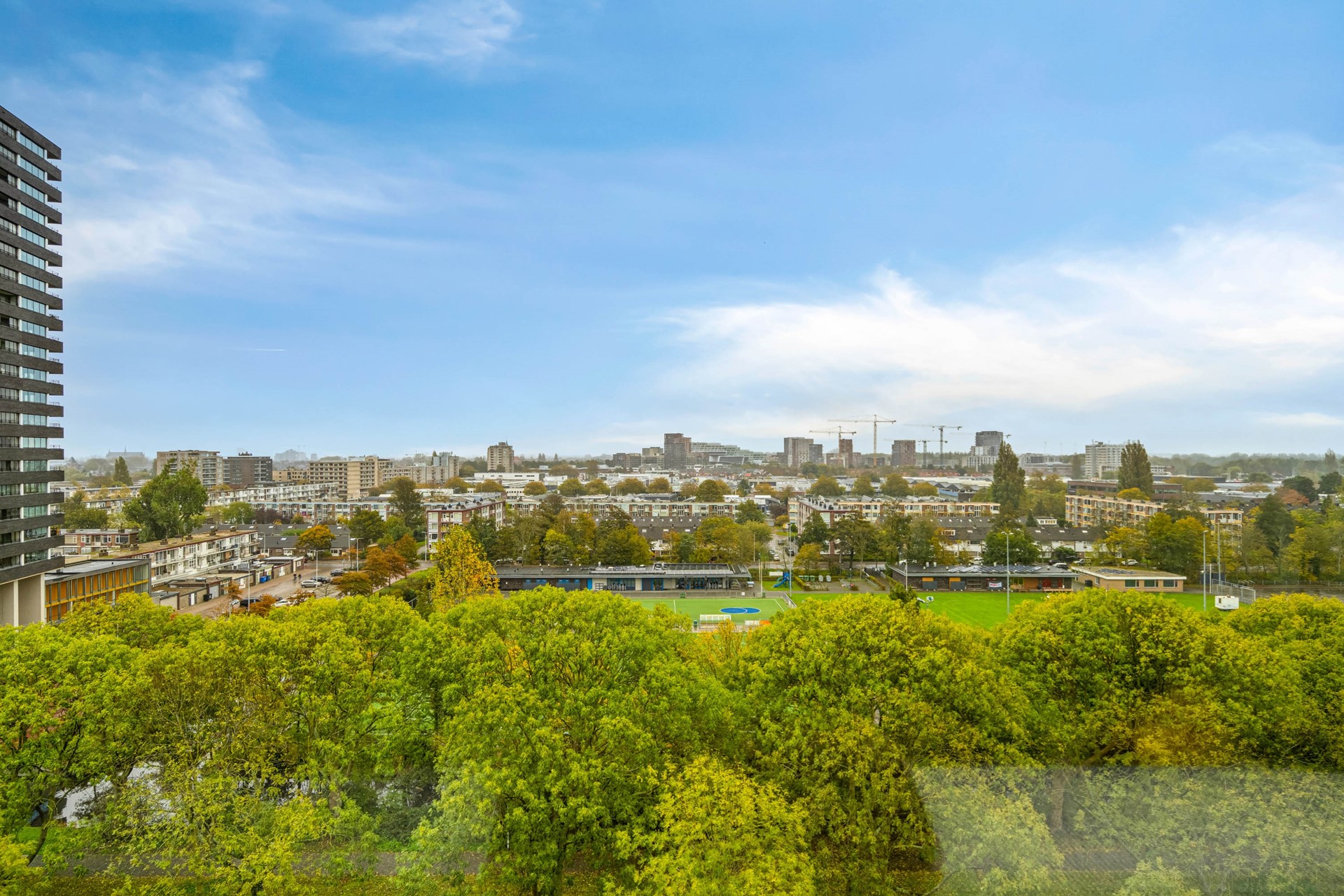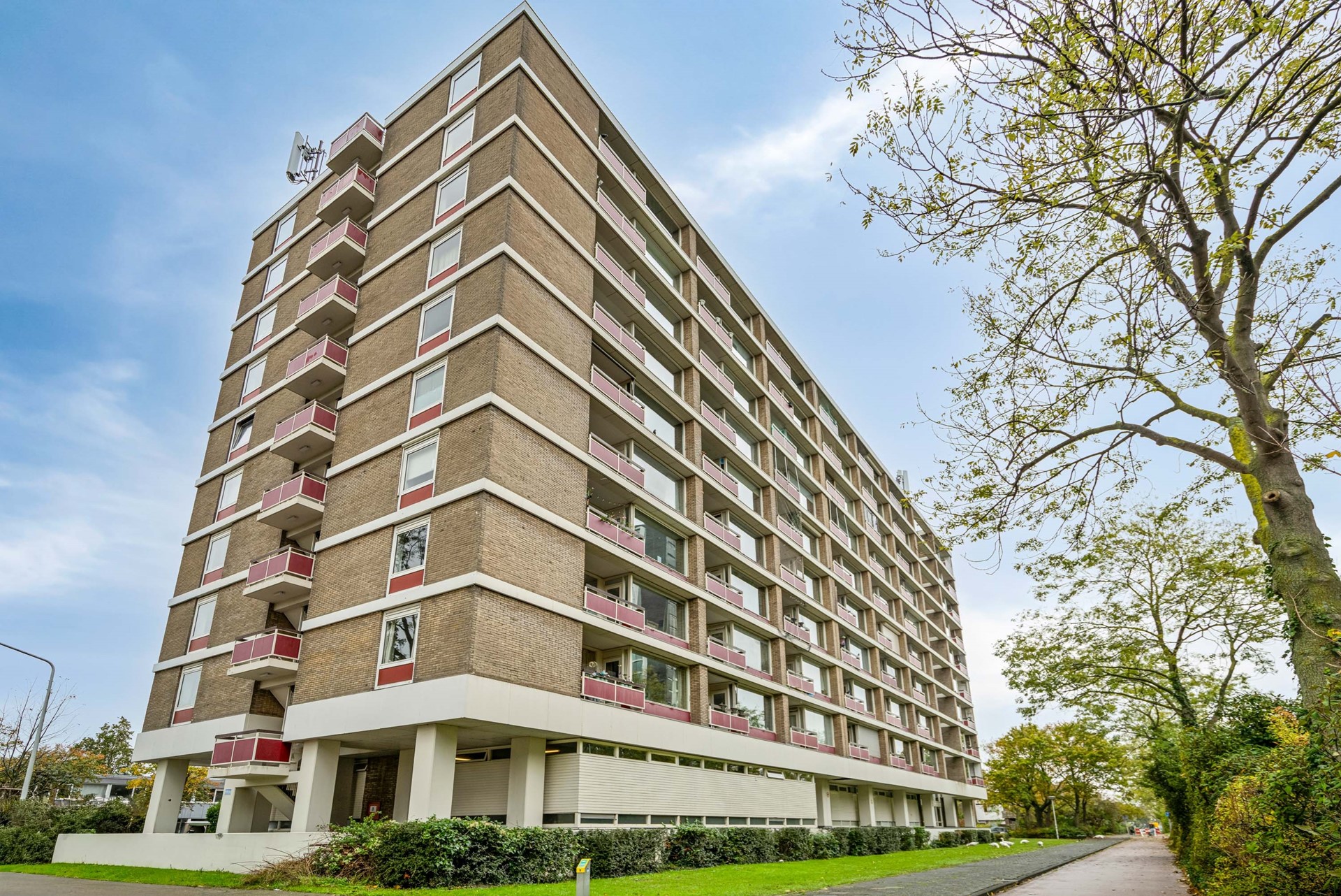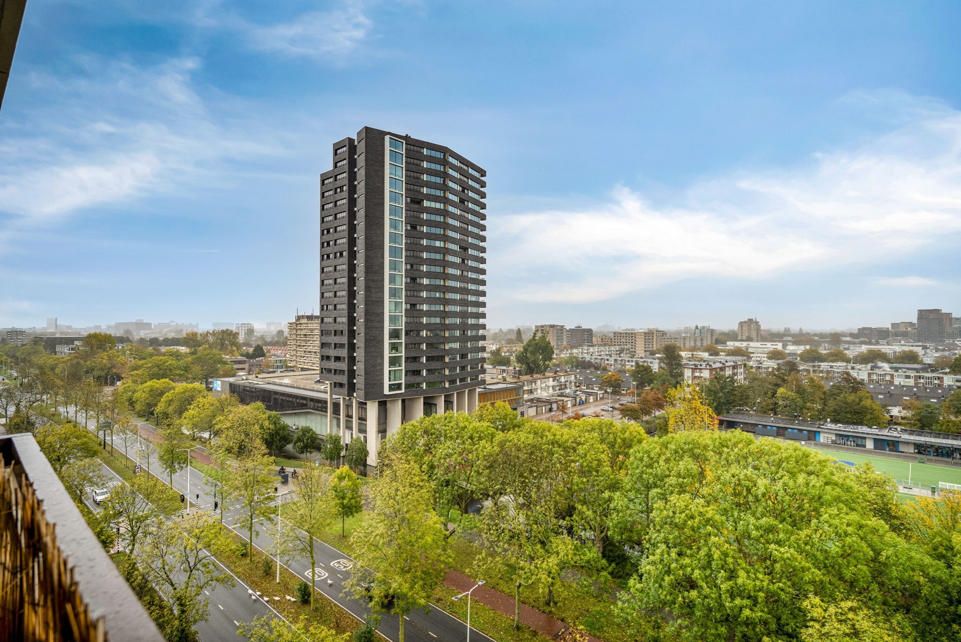 Located on the ninth floor of the popular Rijnlandflat neighborhood in Leiden Zuidwest, you'll find yourself in an ideal location. The De Luifelbaan shopping center, with HEMA and Albert Heijn XL stores, is within walking distance, as are restaurants, sports facilities, the LUMC, Leiden University, and the Bio Science Park. A ten-minute bike ride will take you to the heart of Leiden's vibrant city center.
