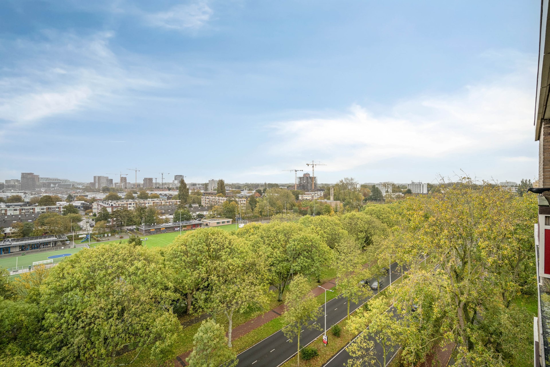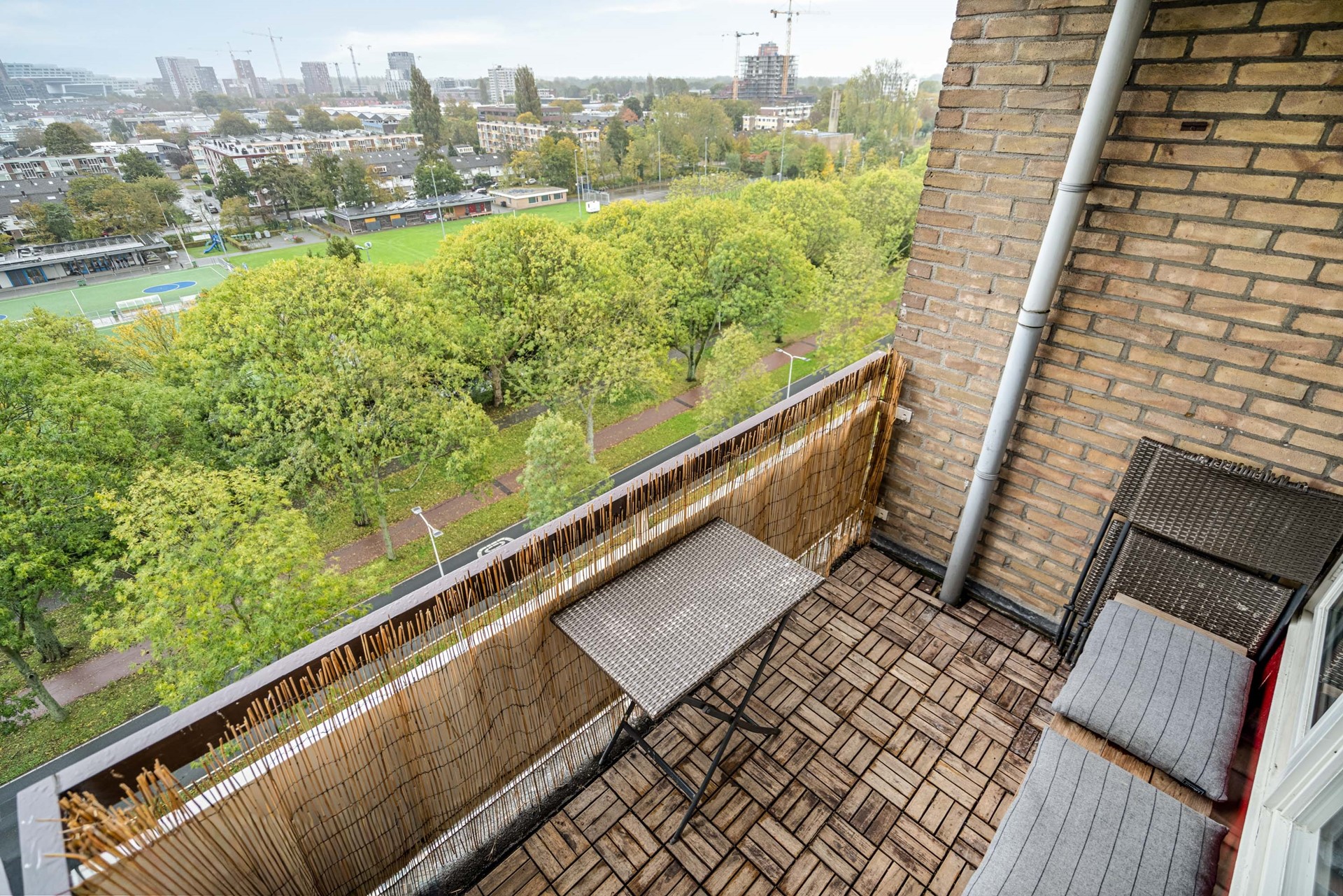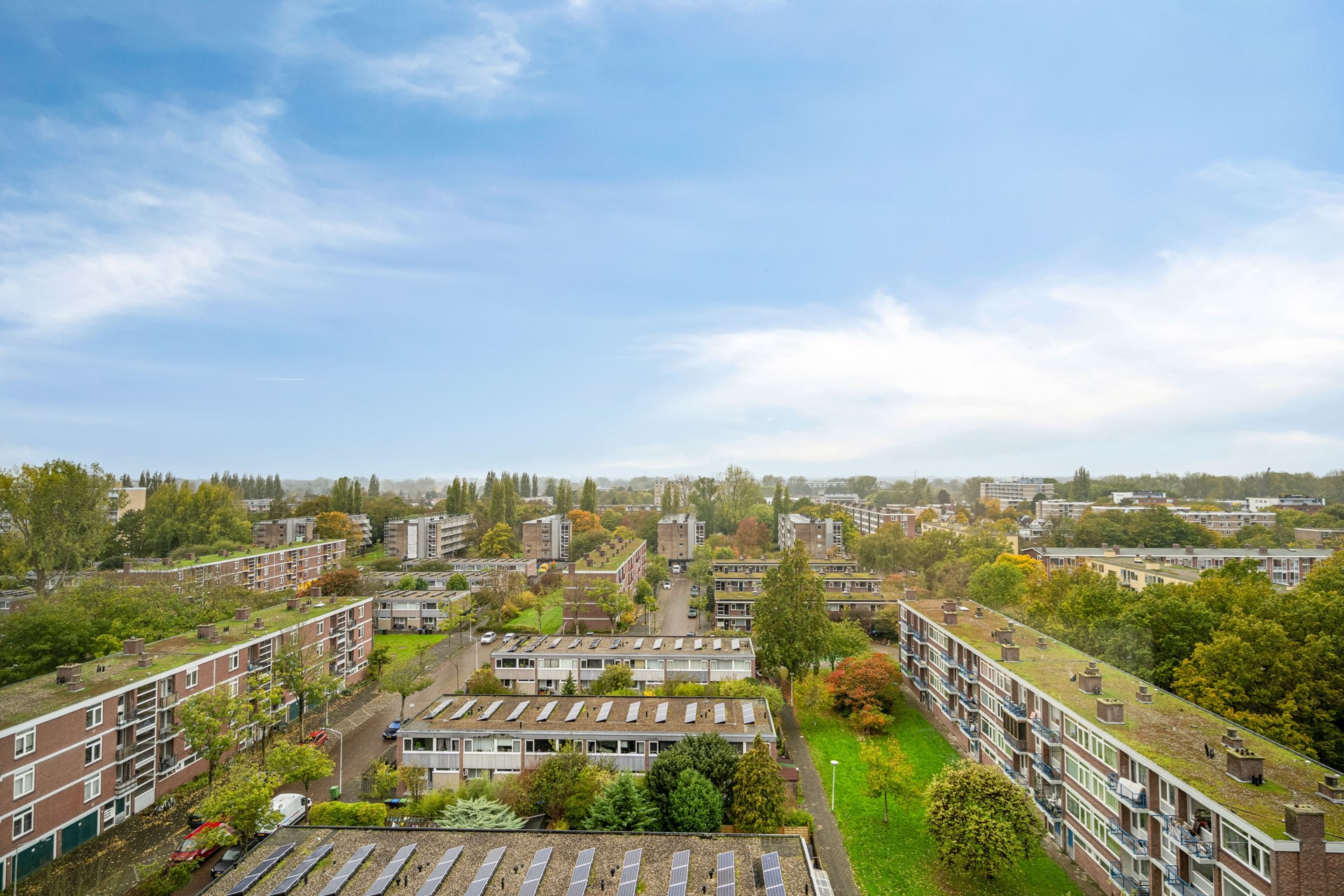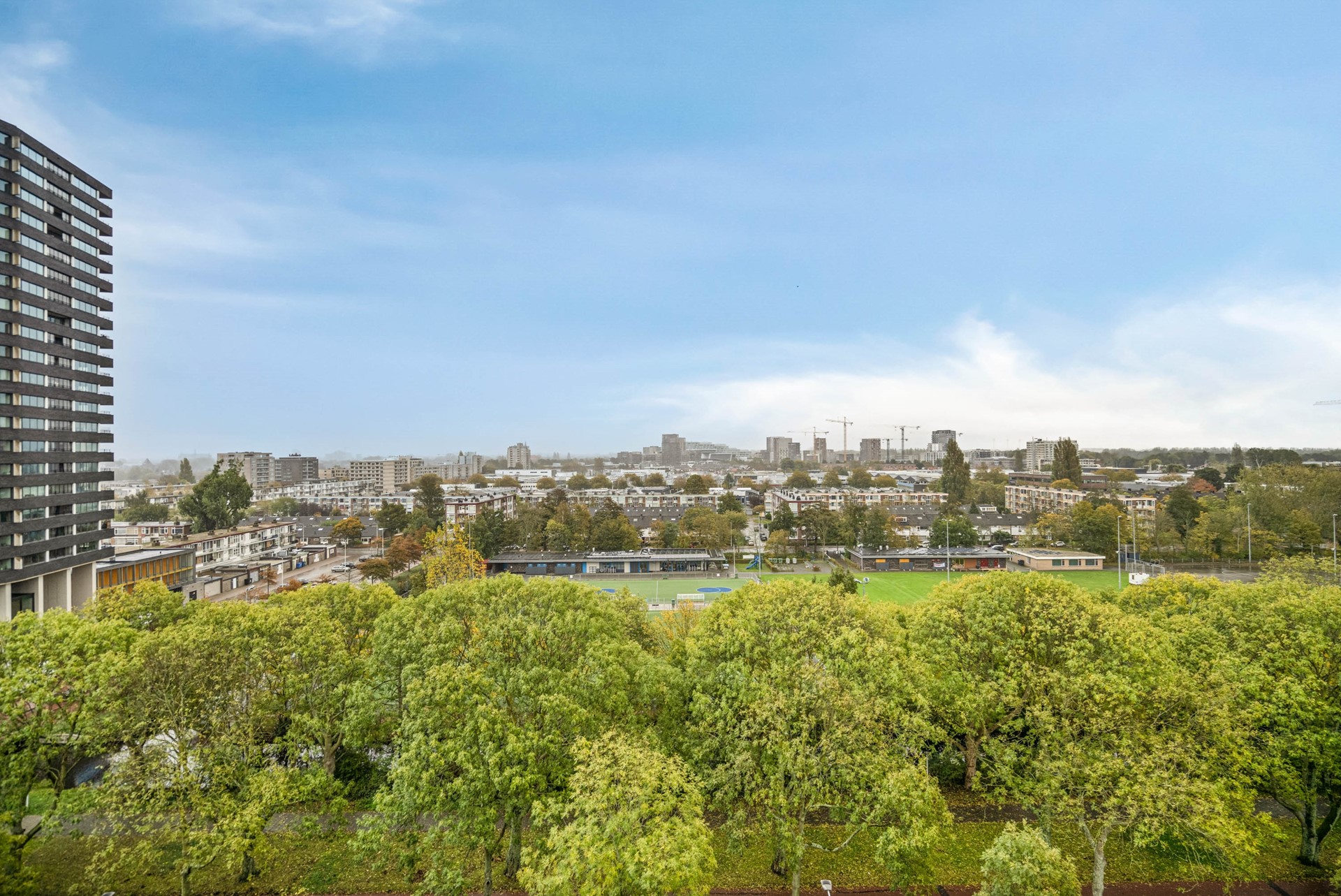 Located on the ninth floor of the popular Rijnlandflat neighborhood in Leiden Zuidwest, you'll find yourself in an ideal location. The De Luifelbaan shopping center, with HEMA and Albert Heijn XL stores, is within walking distance, as are restaurants, sports facilities, the LUMC, Leiden University, and the Bio Science Park. A ten-minute bike ride will take you to the heart of Leiden's vibrant city center.