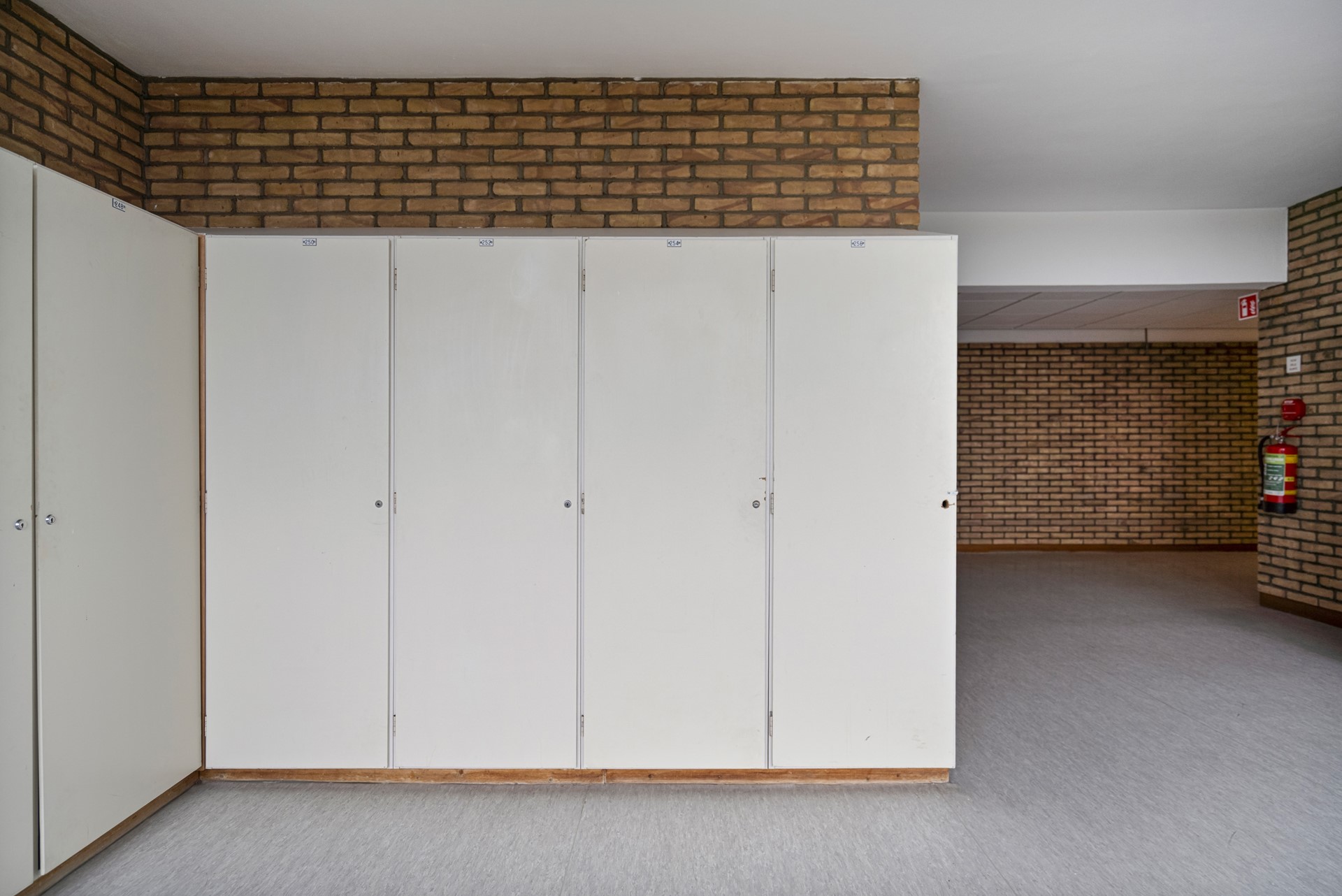 The communal hallway leads to the front door with an adjacent meter cupboard. There is a practical storage room in the central hall.