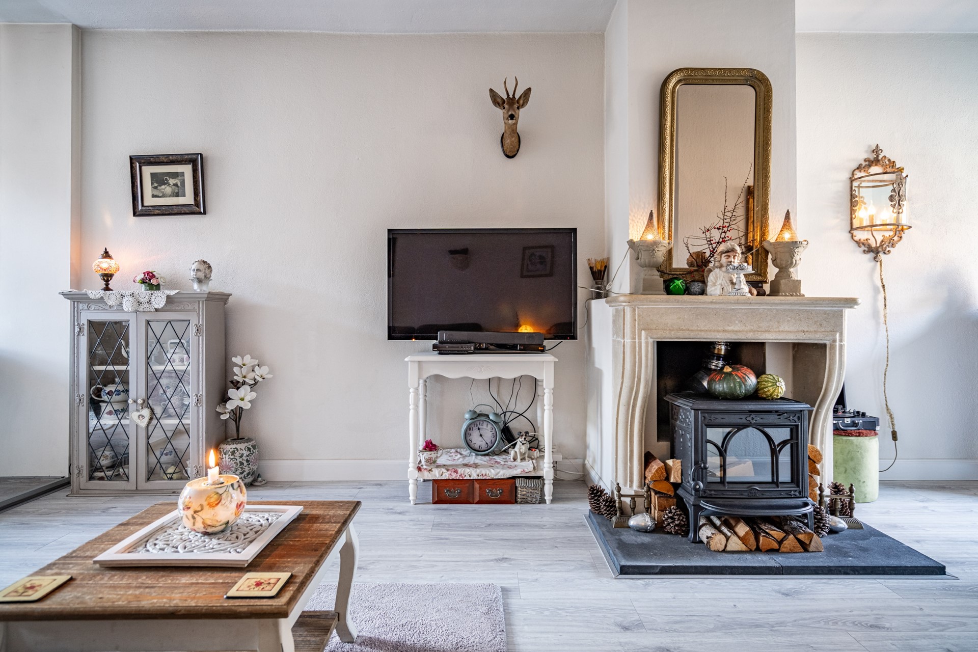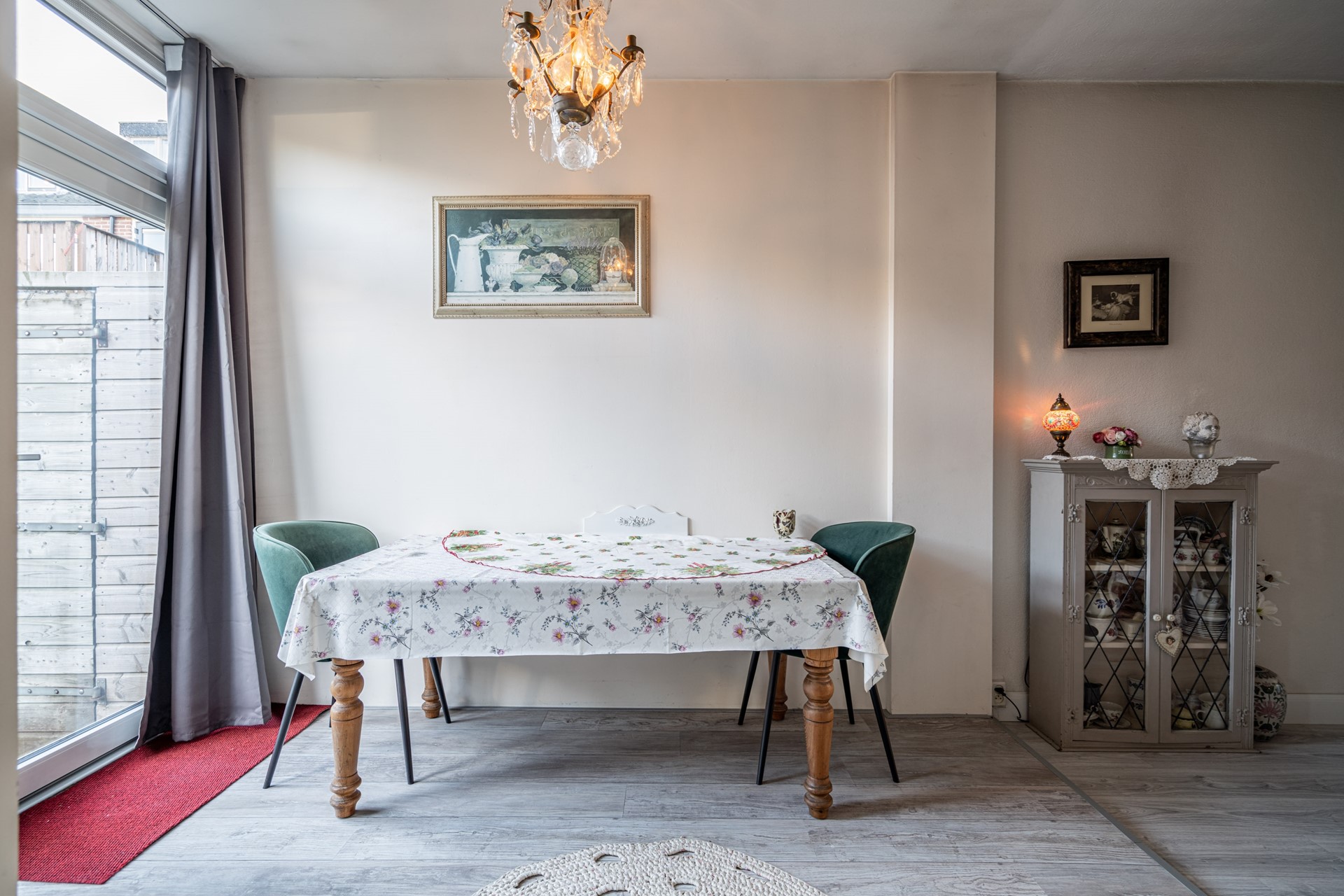 Via de voortuin bereik je de entree van de woning. In de hal tref je de vernieuwde meterkast, een praktische trapkast en het separate toilet. Zodra je de woonkamer binnenstapt, valt het licht direct op. Dankzij de uitbouw en de kunststof kozijnen met openslaande deuren stroomt het daglicht rijkelijk naar binnen. Hier is volop ruimte voor een gezellige zithoek en een fijne eettafel – een plek waar je graag thuiskomt en waar het leven zich moeiteloos afspeelt.