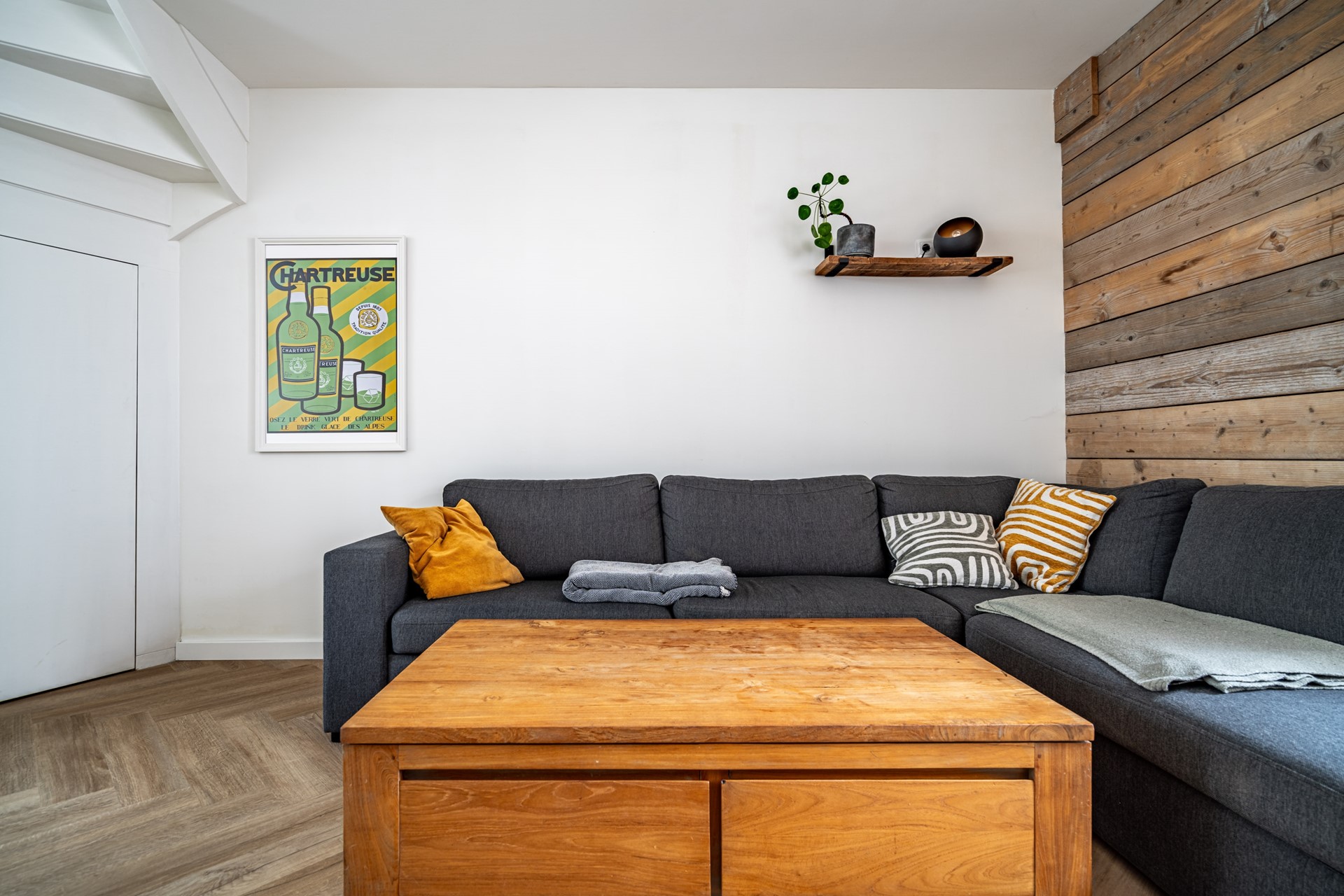 Facing the garden, you'll find the open-plan kitchen, a real eye-catcher! The kitchen is equipped with various built-in appliances. A door at the back provides easy access to the fully renovated terrace and sunny garden.