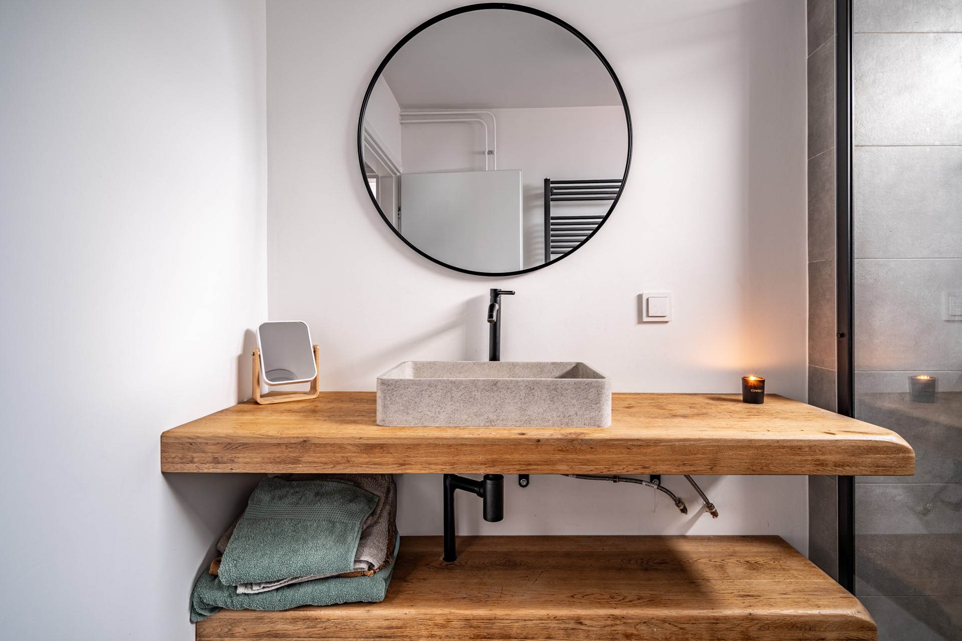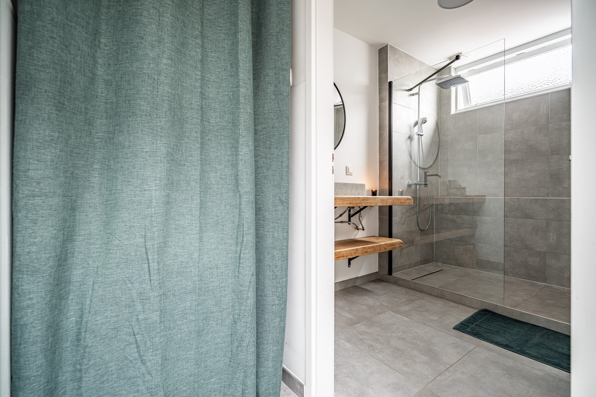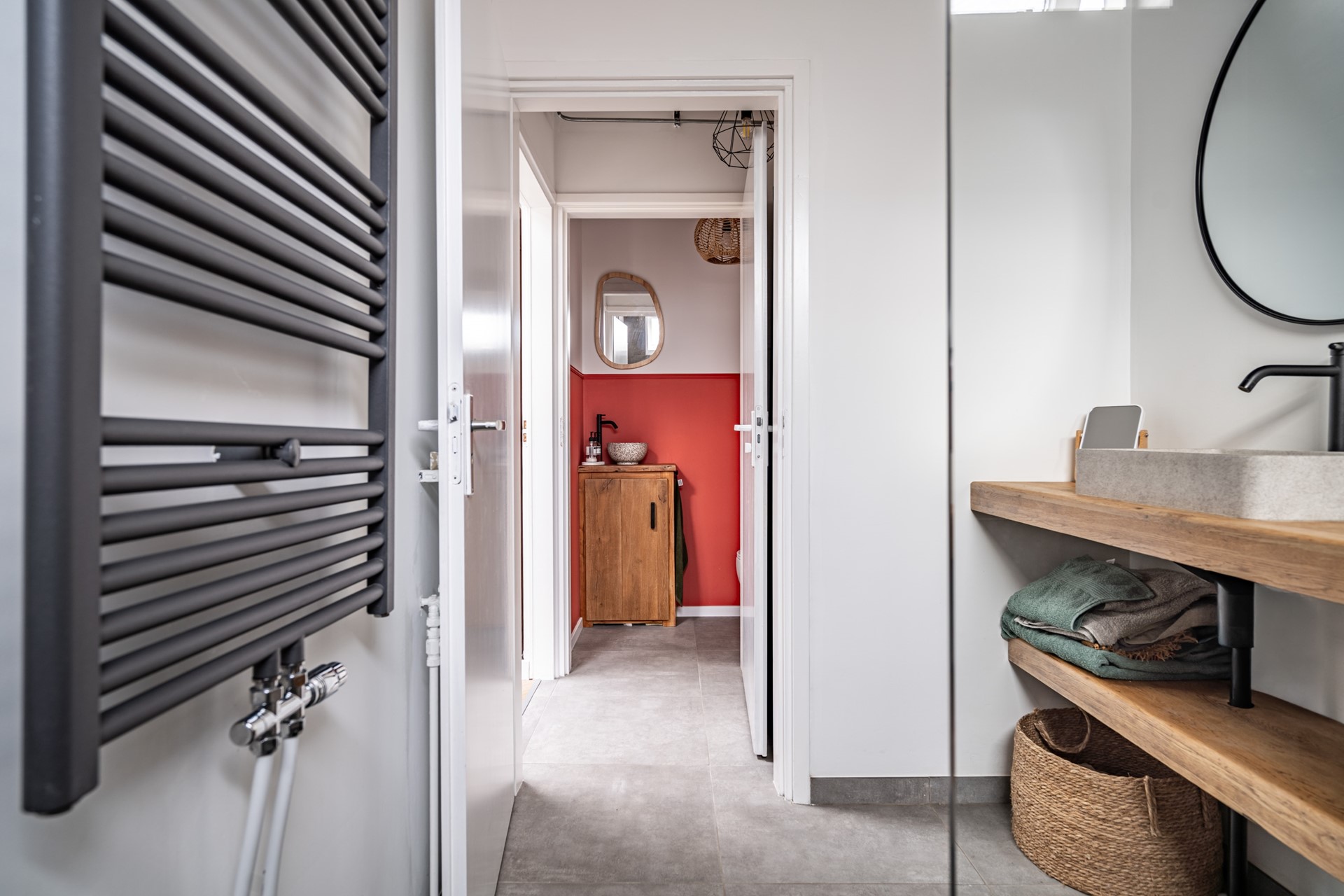 Op de begane grond bevindt zich tevens een prachtig gerenoveerde badkamer met inloopdouche, wastafelmeubel, radiator en mechanische ventilatie. Tevens is er een apart, modern hangend toilet met fonteintje.