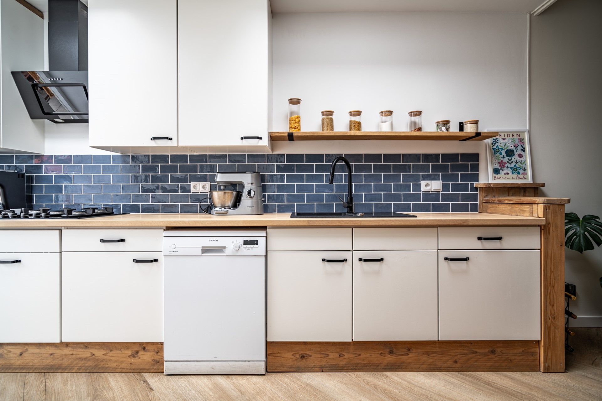 Aan de tuinzijde vindt u de open keuken, een echte blikvanger! De keuken is voorzien van diverse inbouwapparatuur. Een deur aan de achterzijde biedt eenvoudig toegang tot het volledig gerenoveerde terras en de zonnige tuin.
