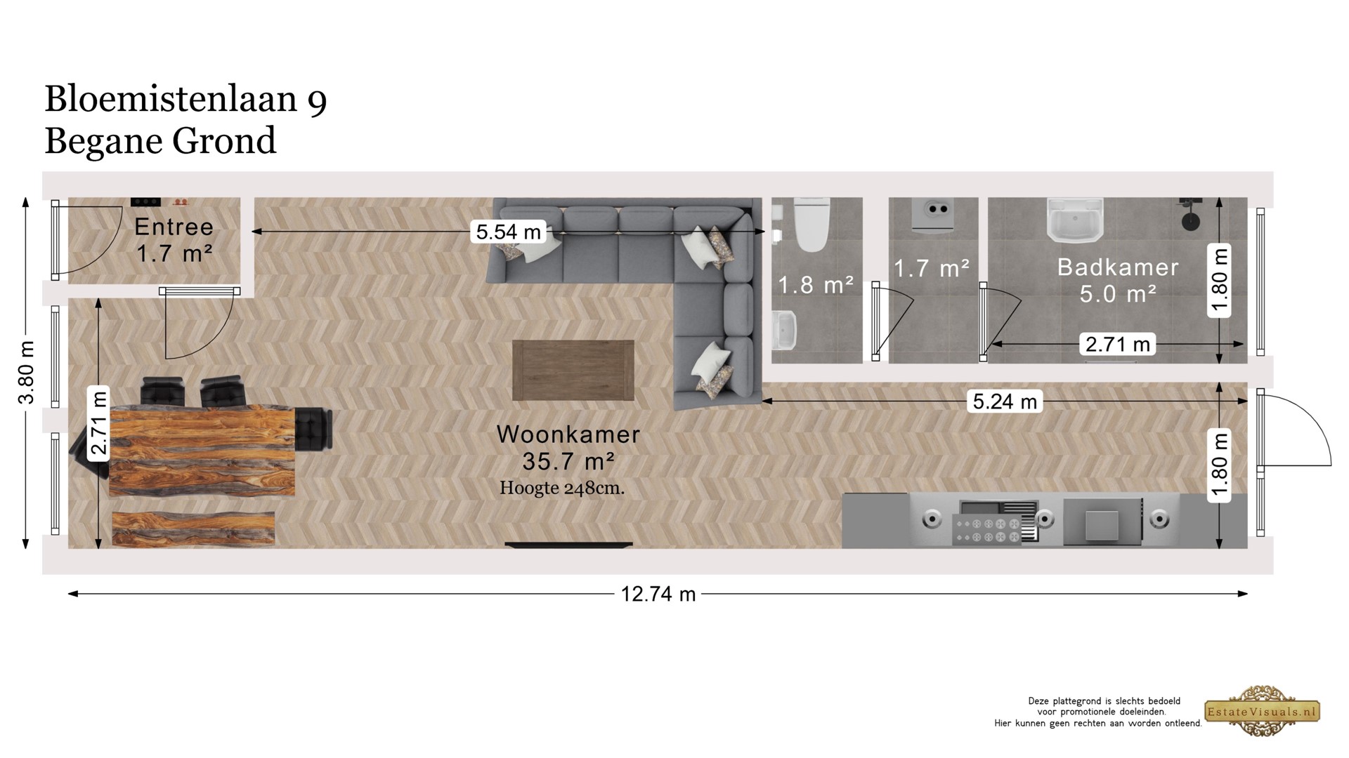 - Gladde wand- en plafondafwerking en een fraaie PVC-vloer op de begane grond;