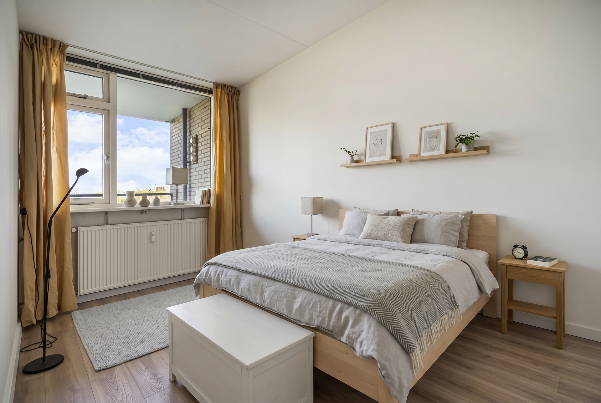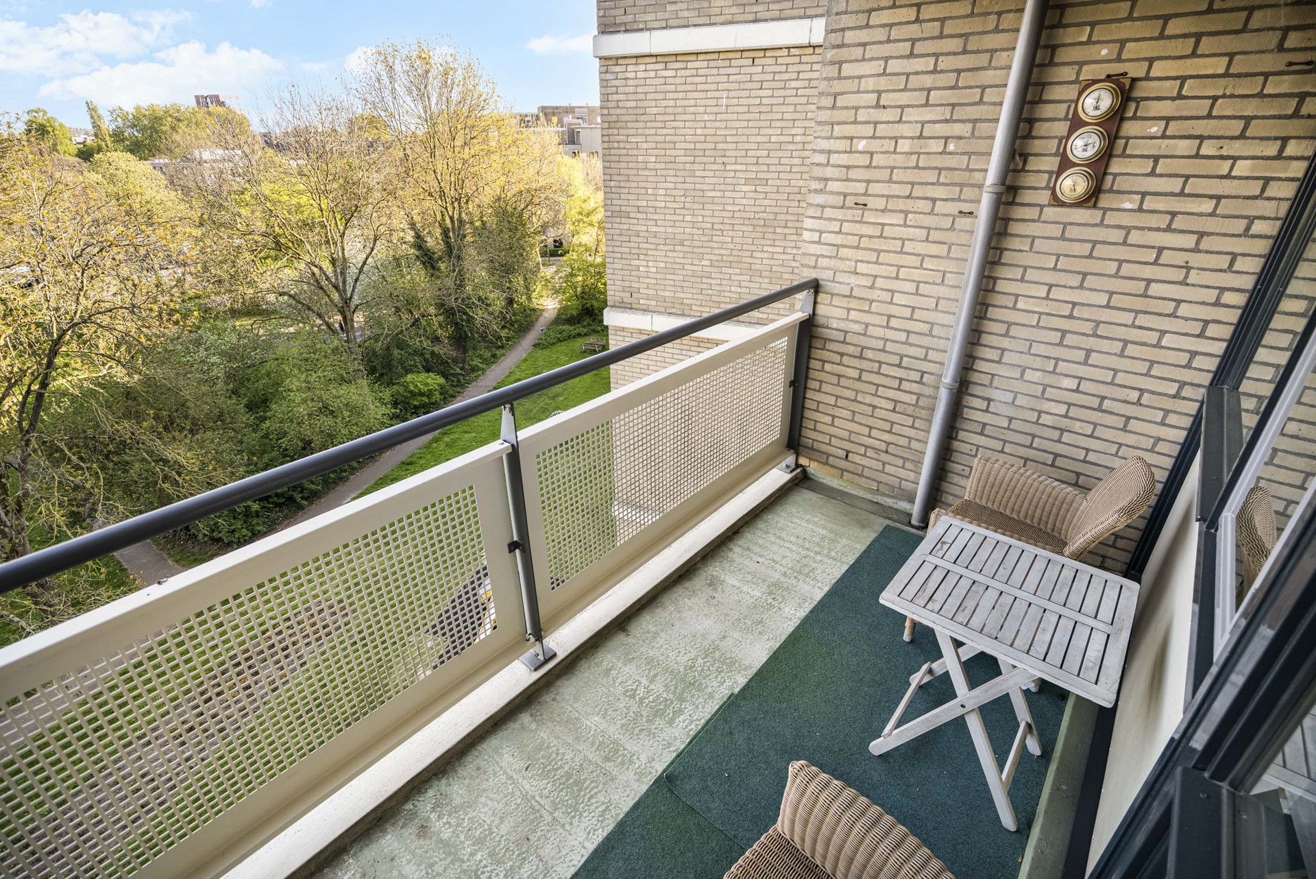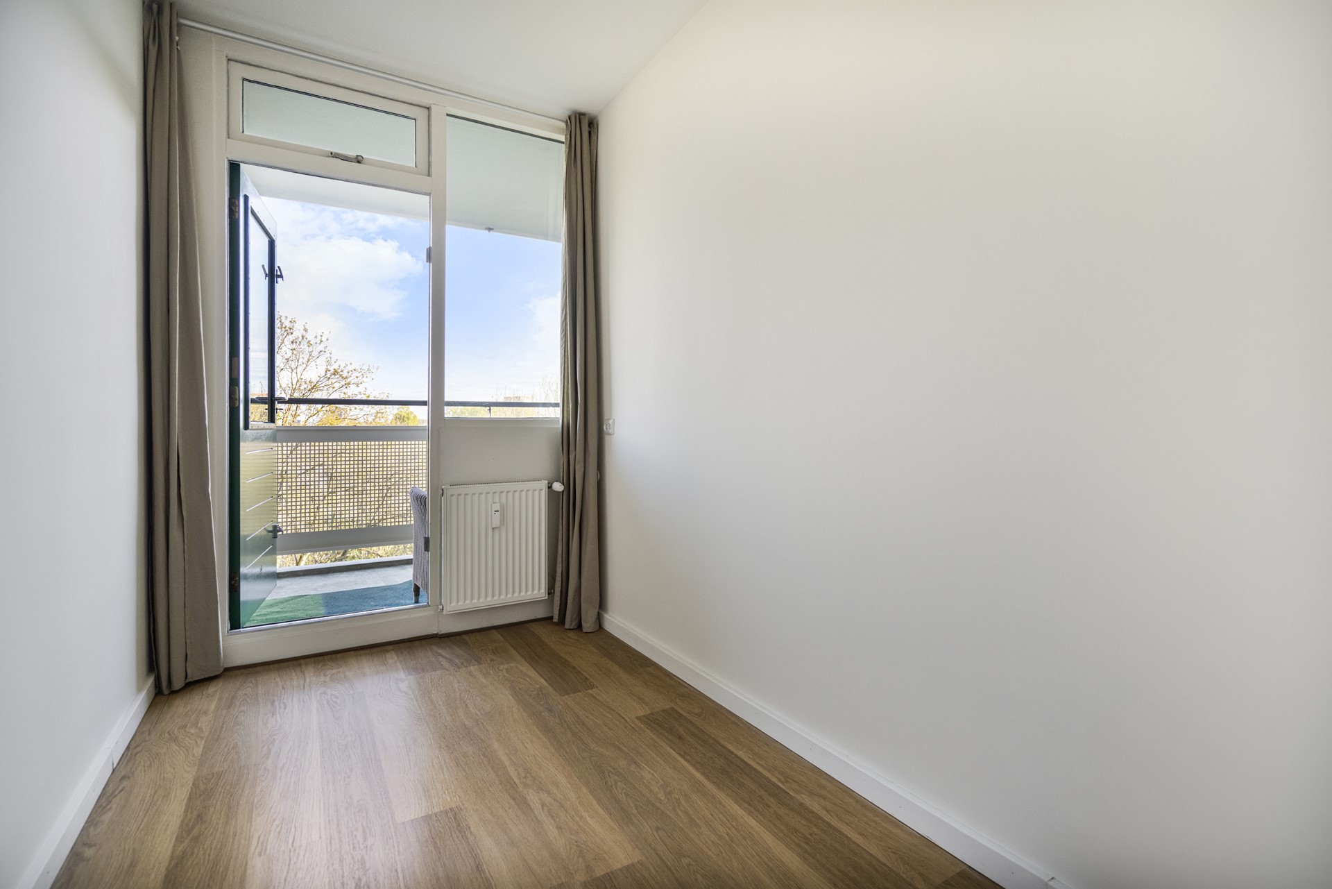 Eén van de slaapkamers geeft toegang tot het zonnige balkon op het zuidoosten – een heerlijke plek om de dag te beginnen met een kop koffie of om in de middag van de zon te genieten.
