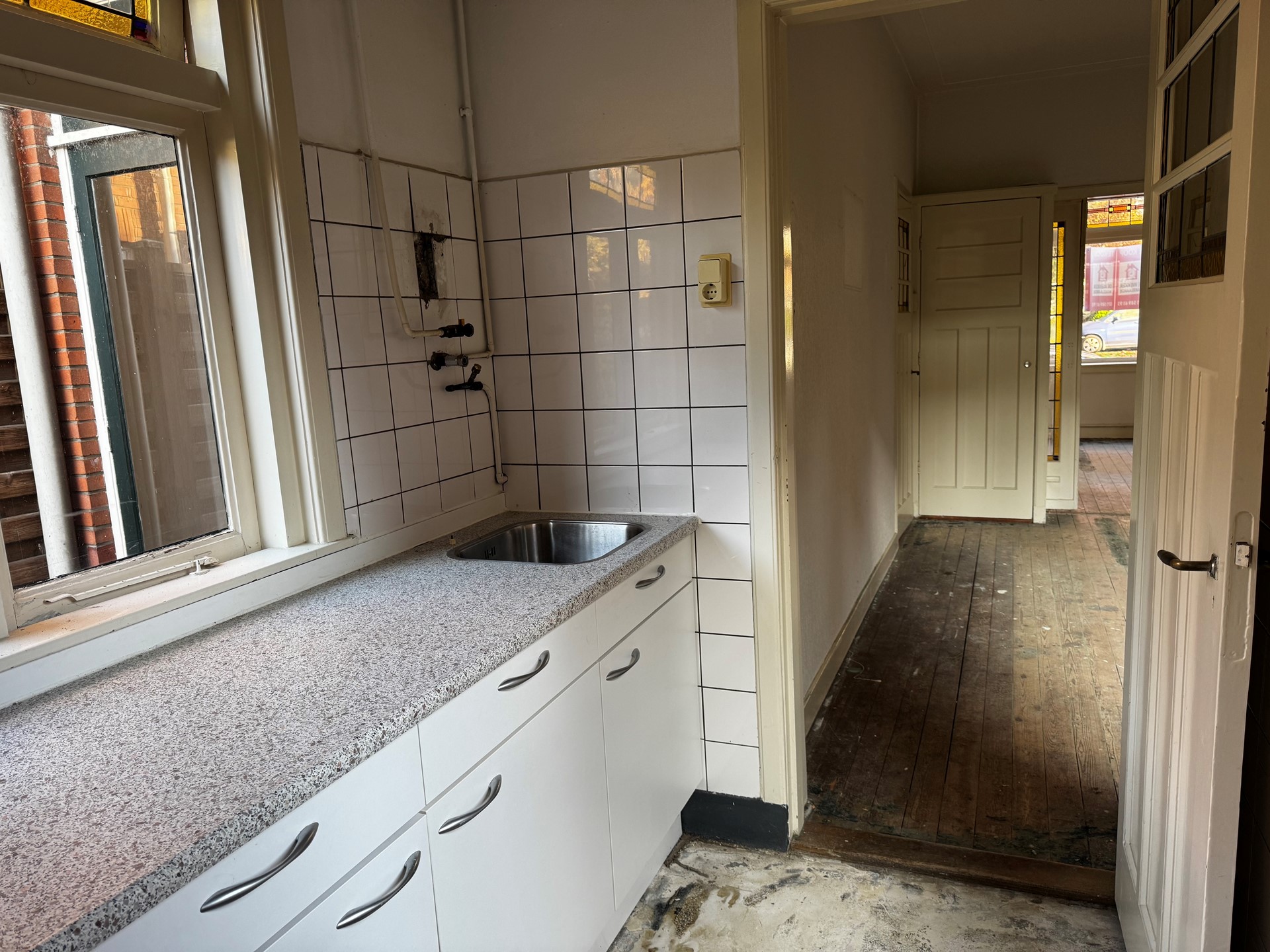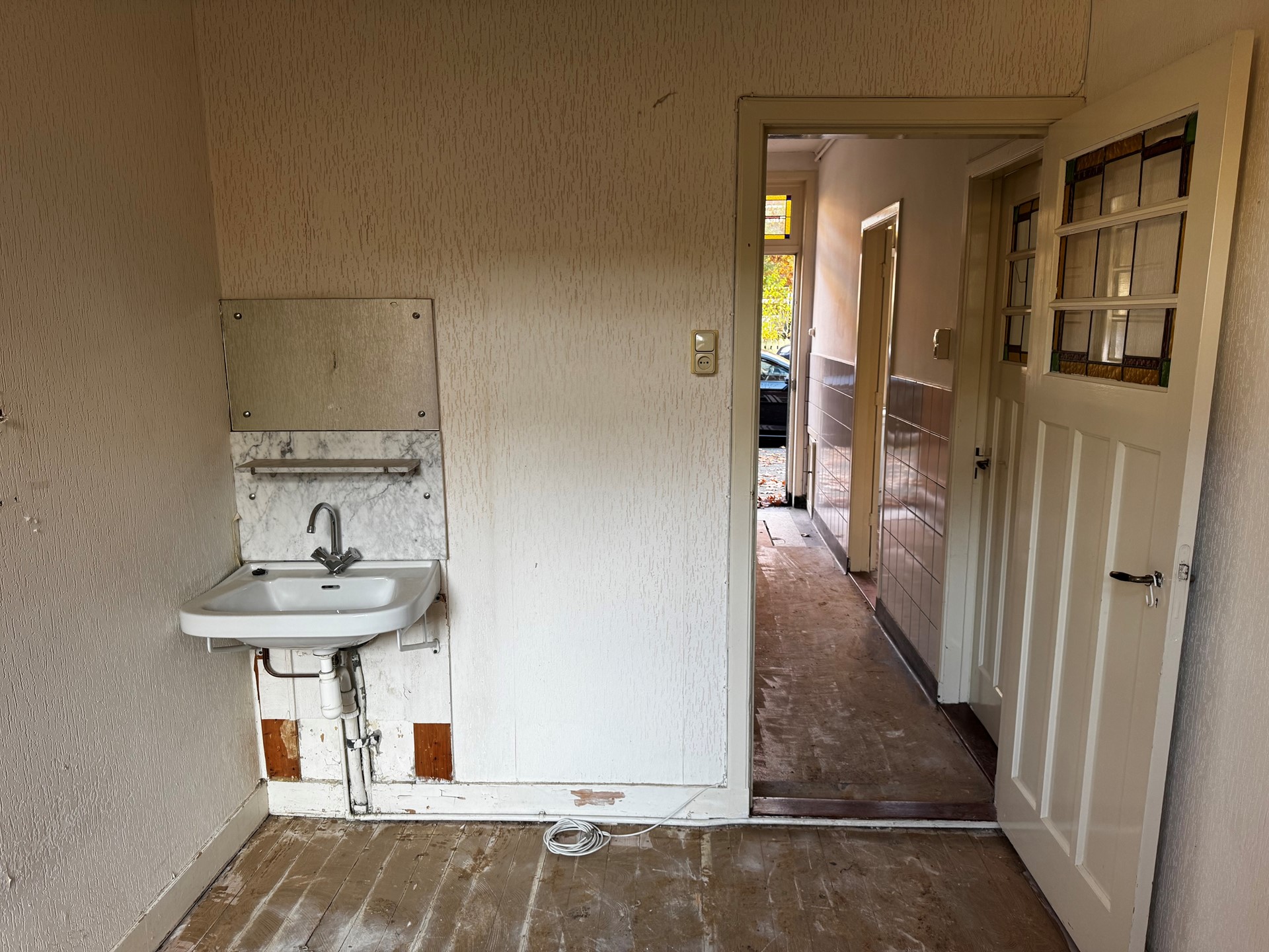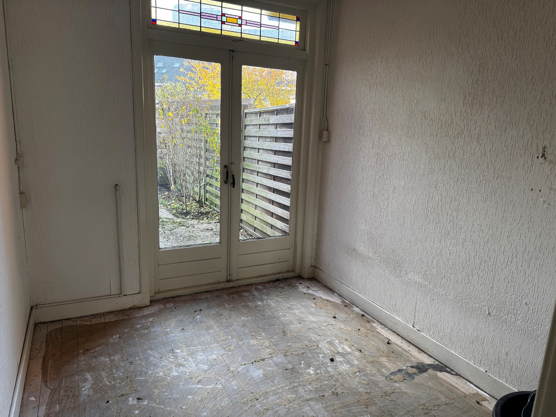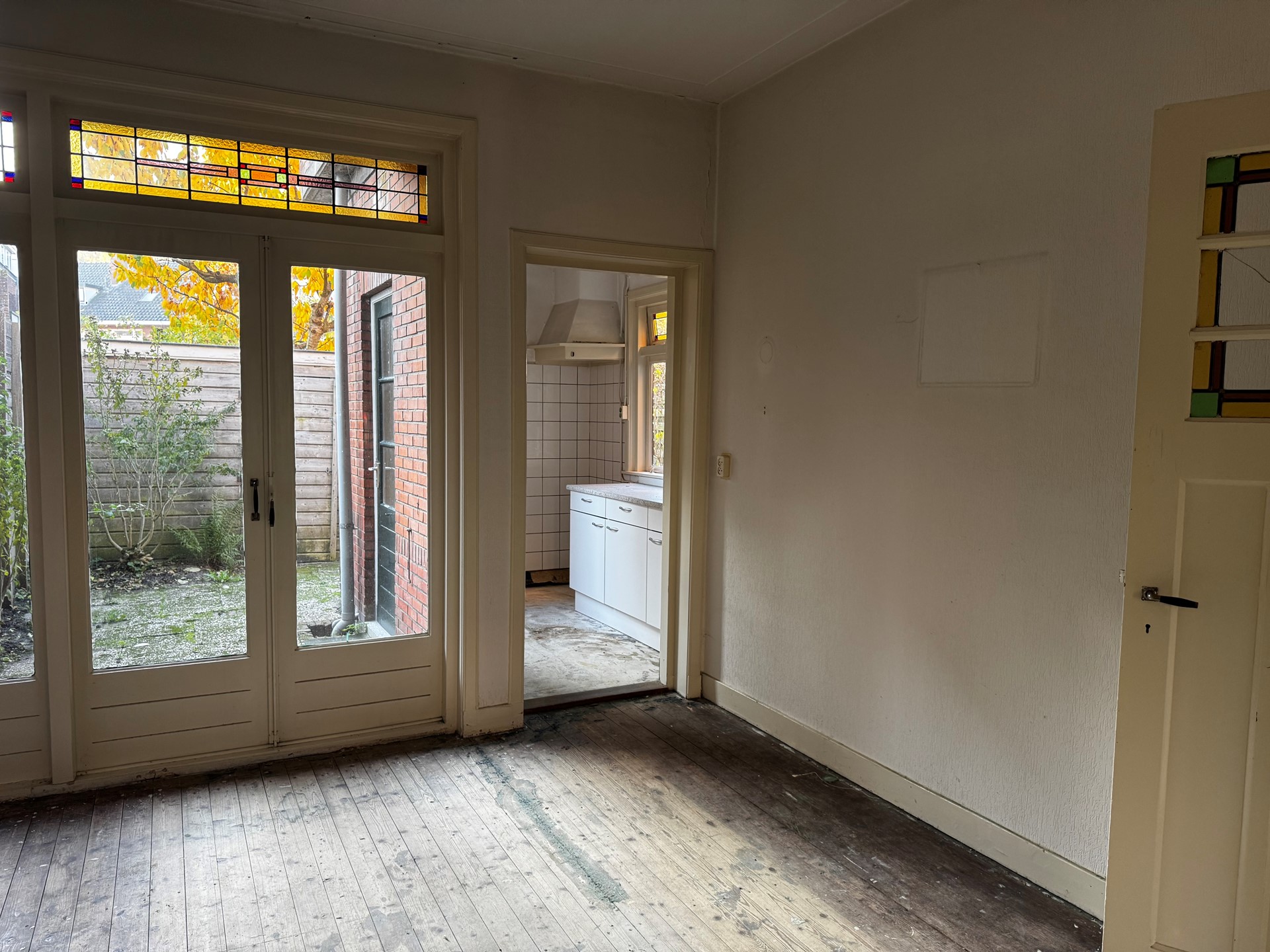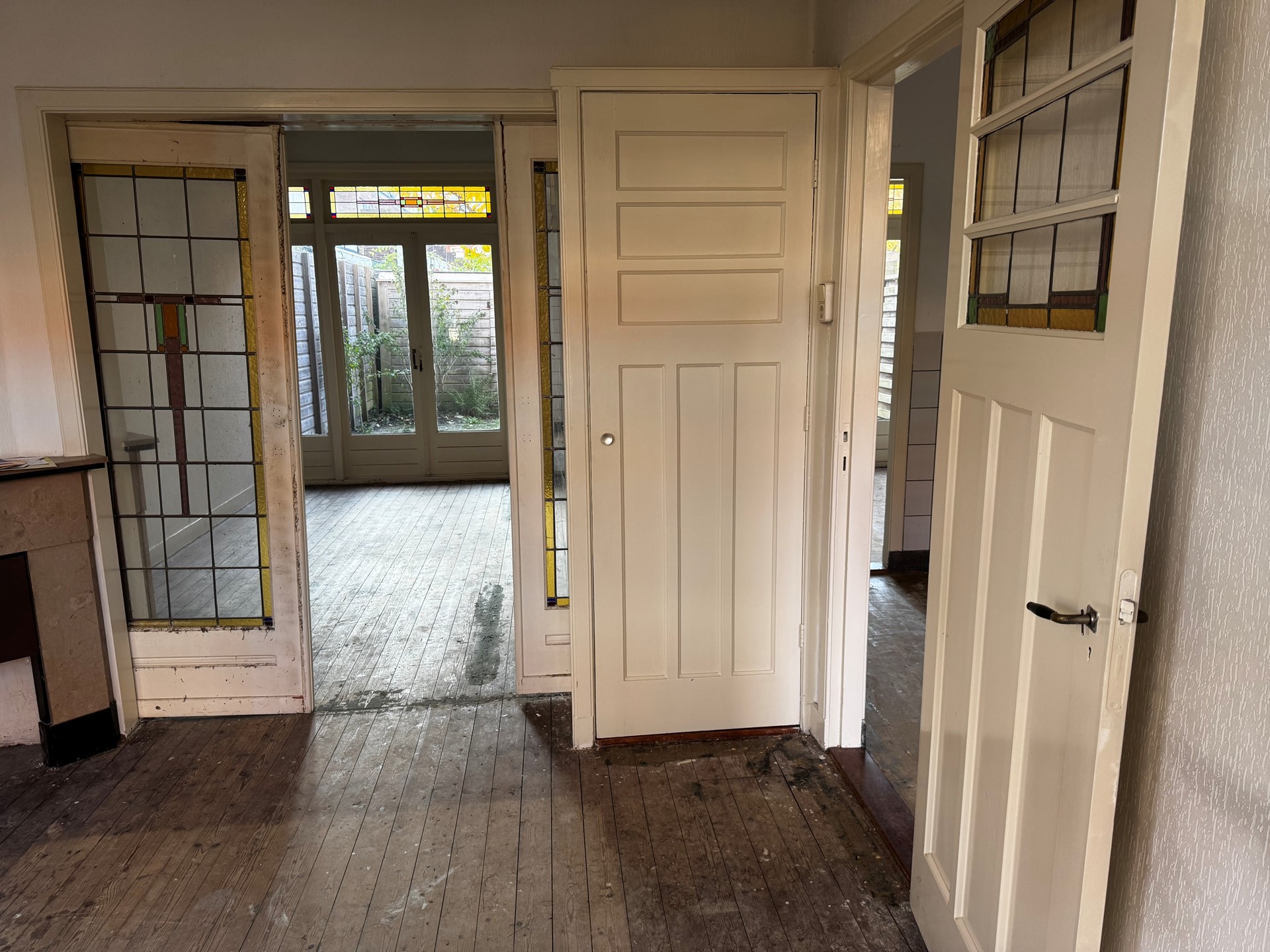 De woning beschikt op dit moment over een traditionele indeling met en-suite woonkamer, slaapkamer, keuken, toilet en badkamer. Door de aanwezigheid van de en-suite deuren is de leefruimte eenvoudig opnieuw in te delen naar eigen wens en smaak. Via de openslaande deuren bereikt u de achtertuin, die volop mogelijkheden biedt om een groene, sfeervolle buitenruimte te creëren.