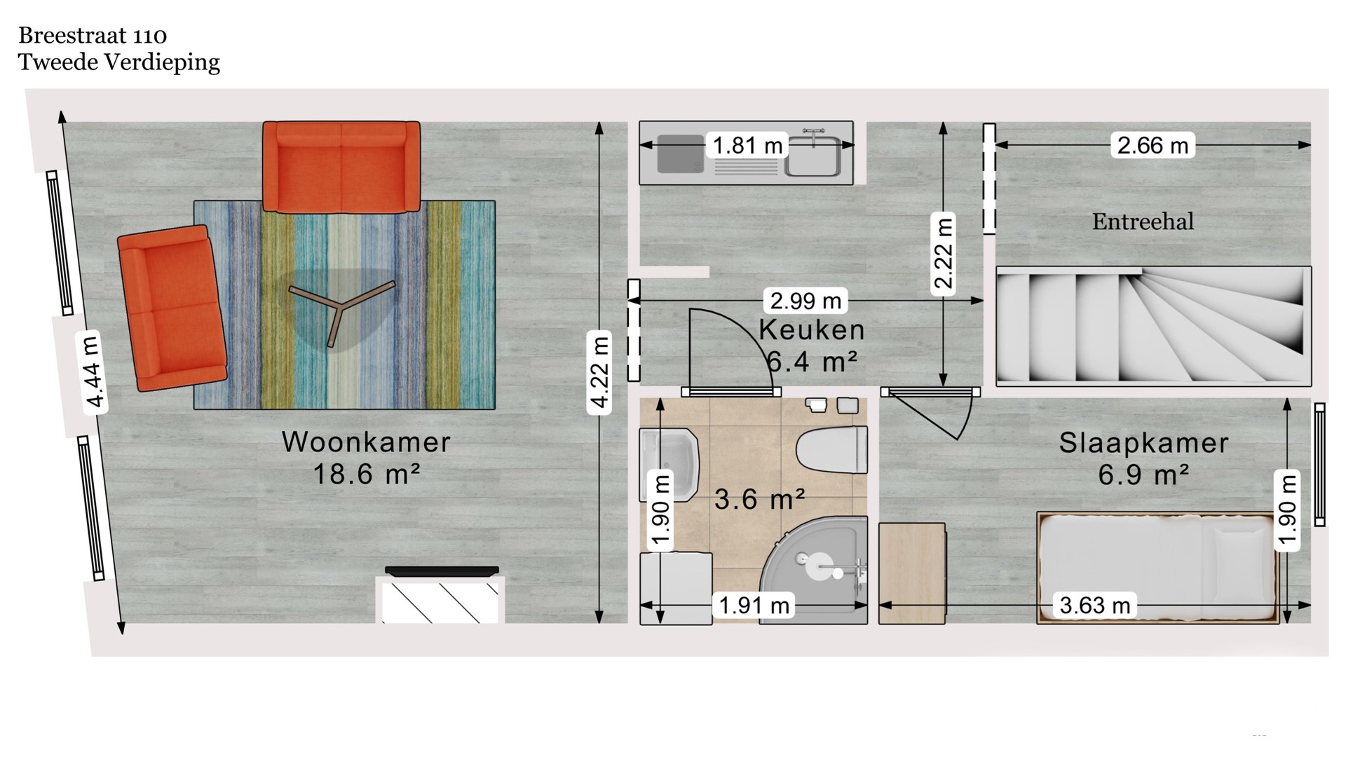 - Een lichte woonkamer met uitzicht over de levendige Breestraat