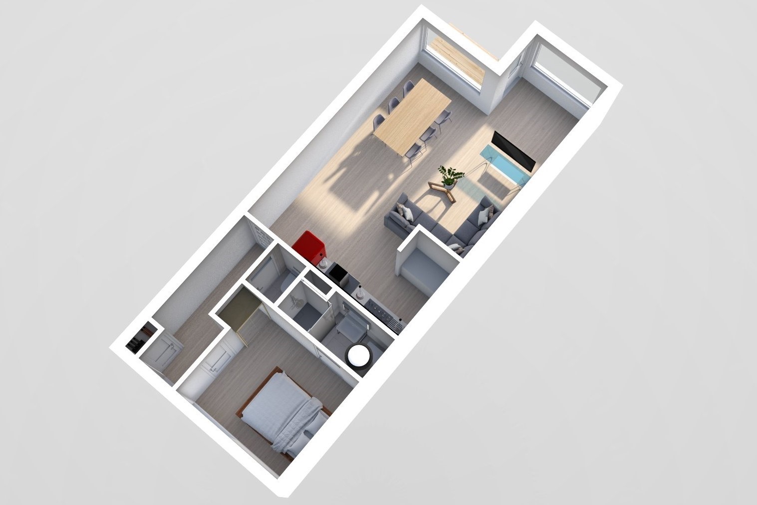 - Air conditioning in both the living room and bedroom;
