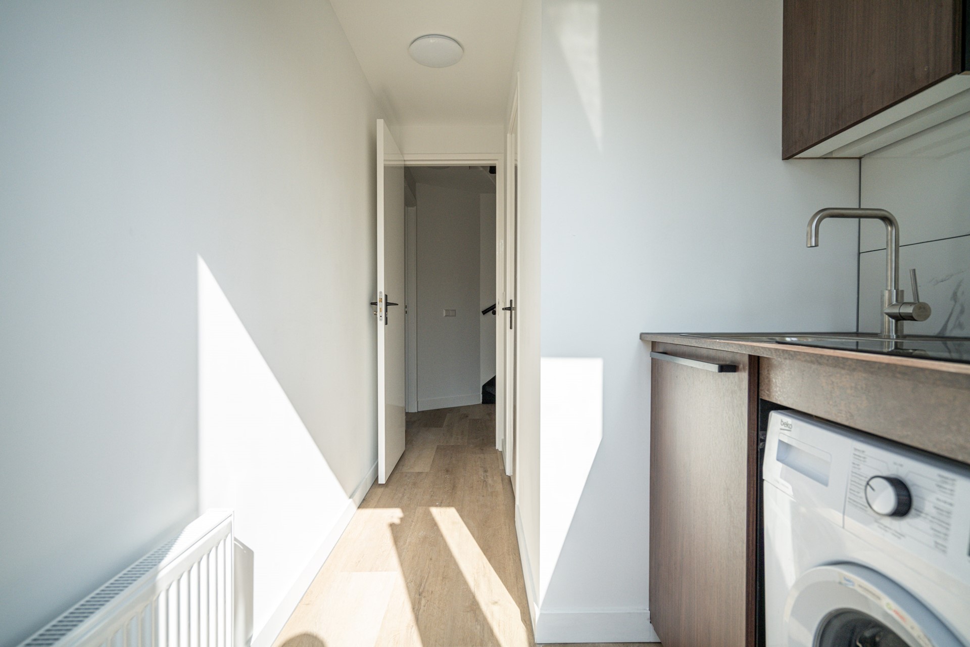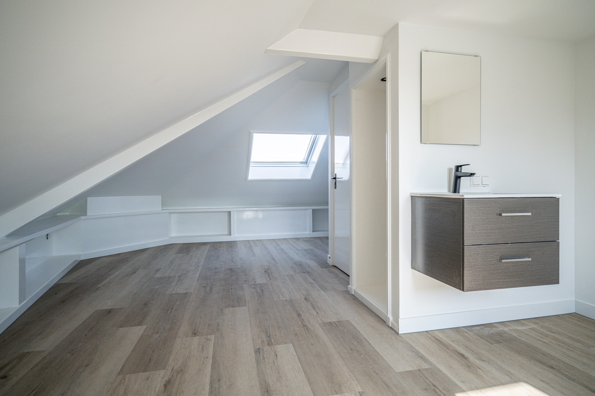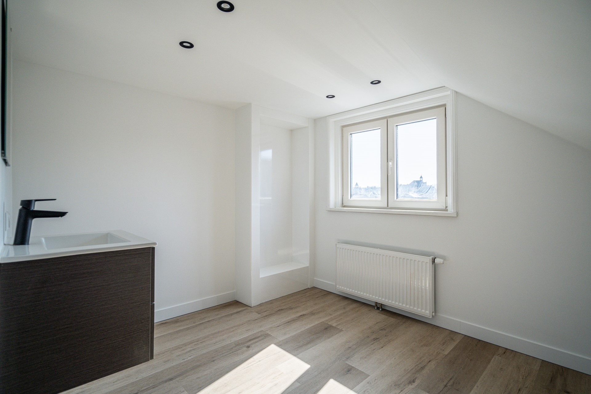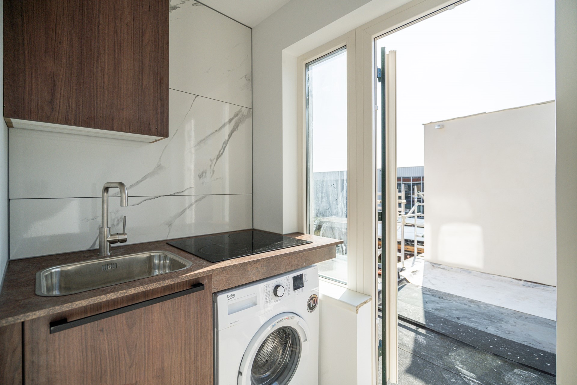 Via de eigen entree bereik je de woning op de eerste verdieping. Hier vind je een lichte en sfeervolle woonkamer met open keuken, strak afgewerkt en volledig instapklaar.