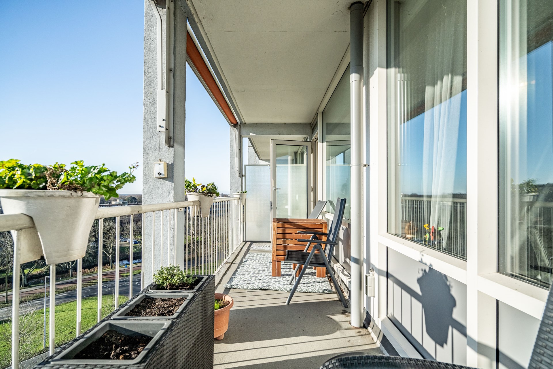 Aan de zuidzijde vindt u het eerste balkon: een brede, zonnige buitenruimte waar u vanaf de vroege middag tot laat in de avond heerlijk kunt genieten van zon, lucht en uitzicht. Het zonnescherm maakt het op warme dagen extra comfortabel.
