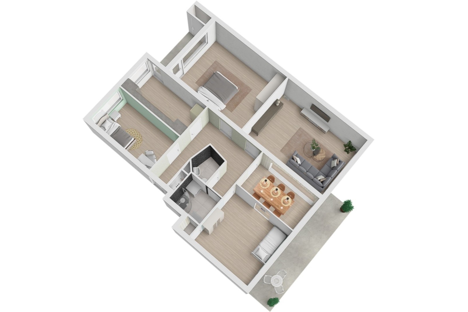 Het appartement beschikt over drie ruime slaapkamers (voorheen vier).