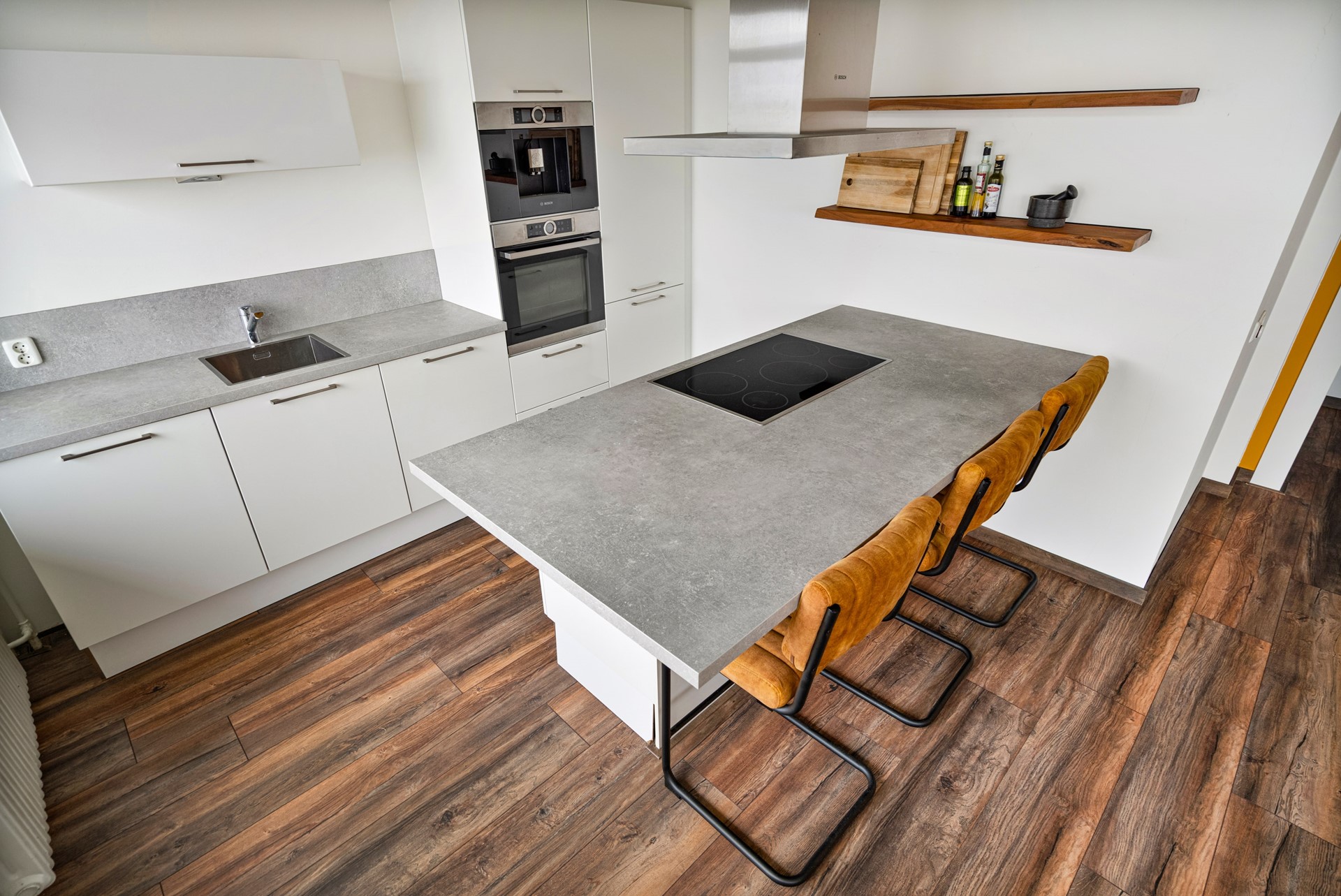 De keuken is uitgevoerd met een stijlvol kookeiland en diverse inbouwapparatuur – ideaal voor kookliefhebbers en gezellige avonden met vrienden of familie.