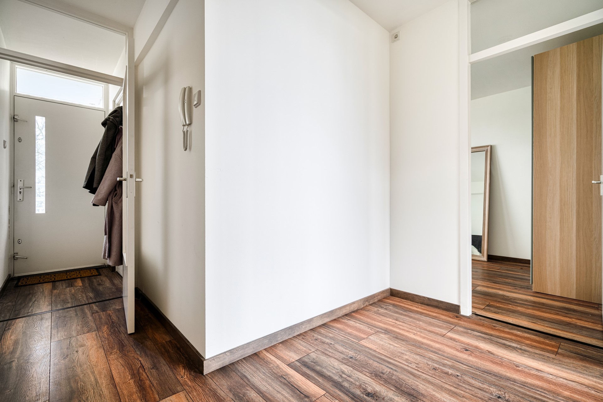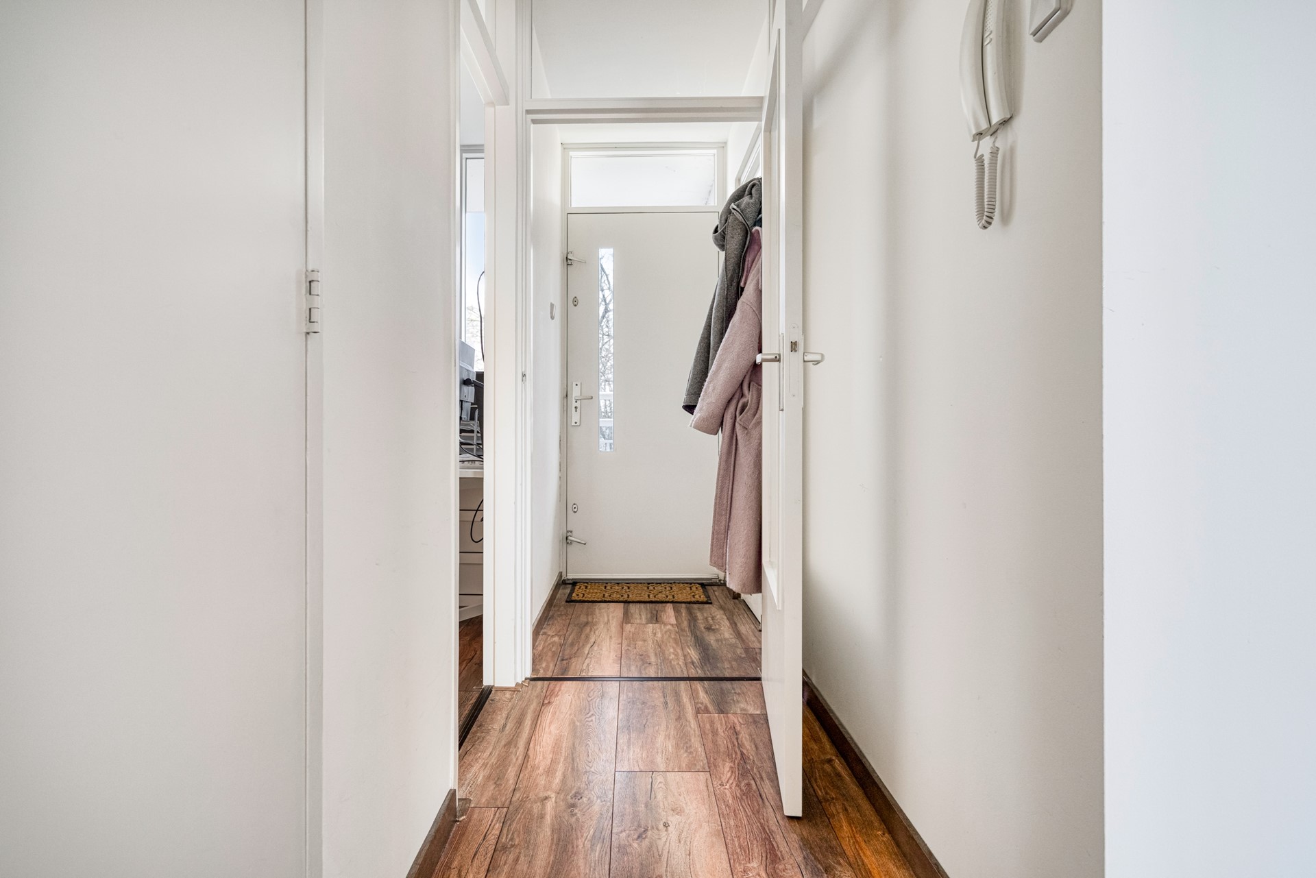 Via de nette, gemeenschappelijke entree met intercom, brievenbussen, lift en trappenhuis bereikt u het appartement op de derde verdieping.