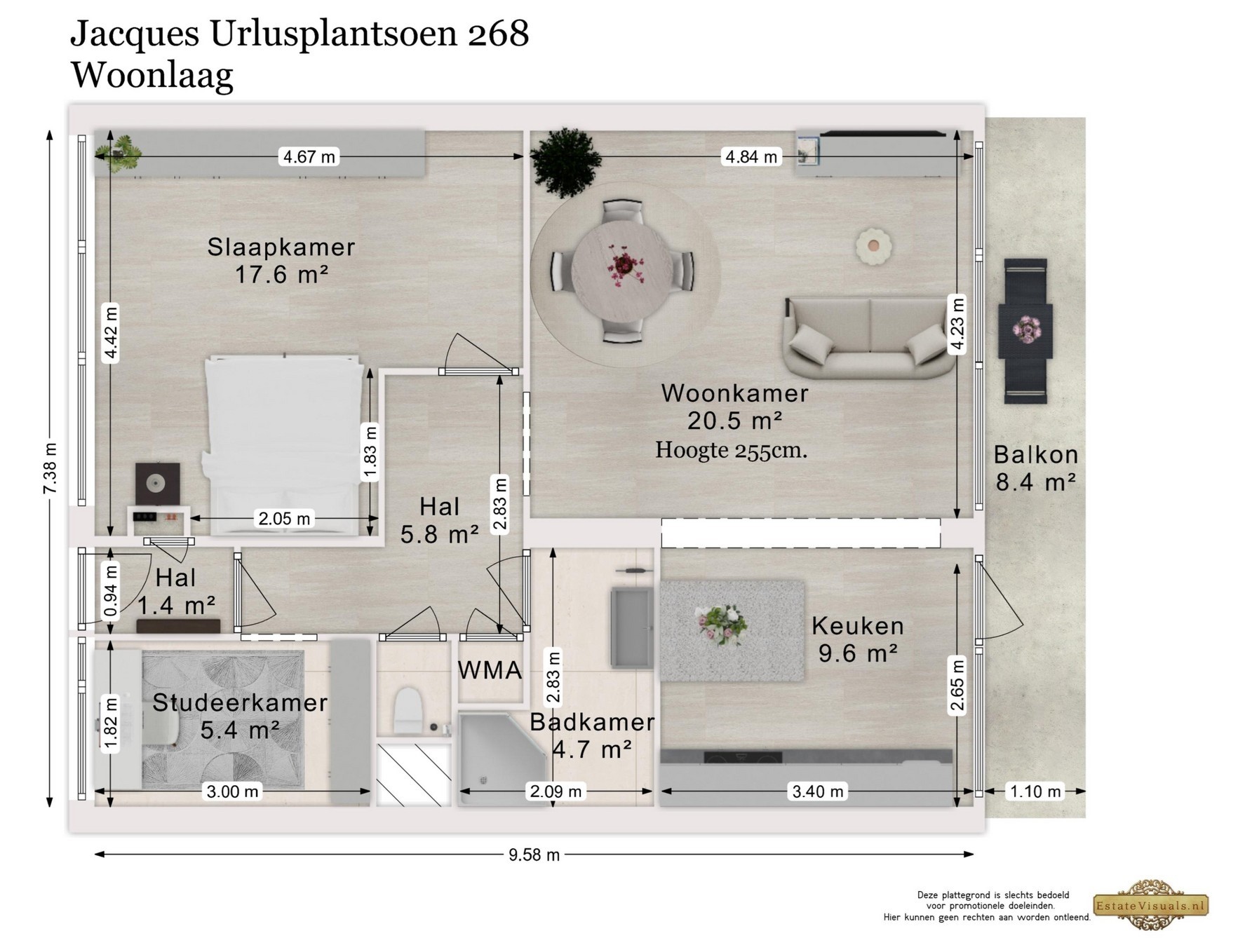 • Ruim balkon over de volledige breedte