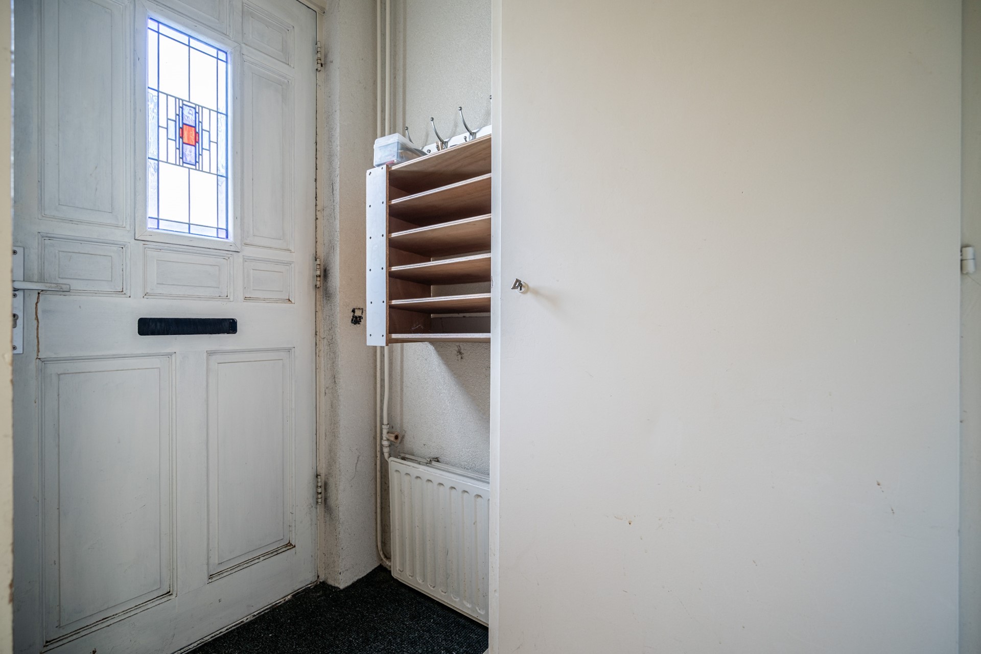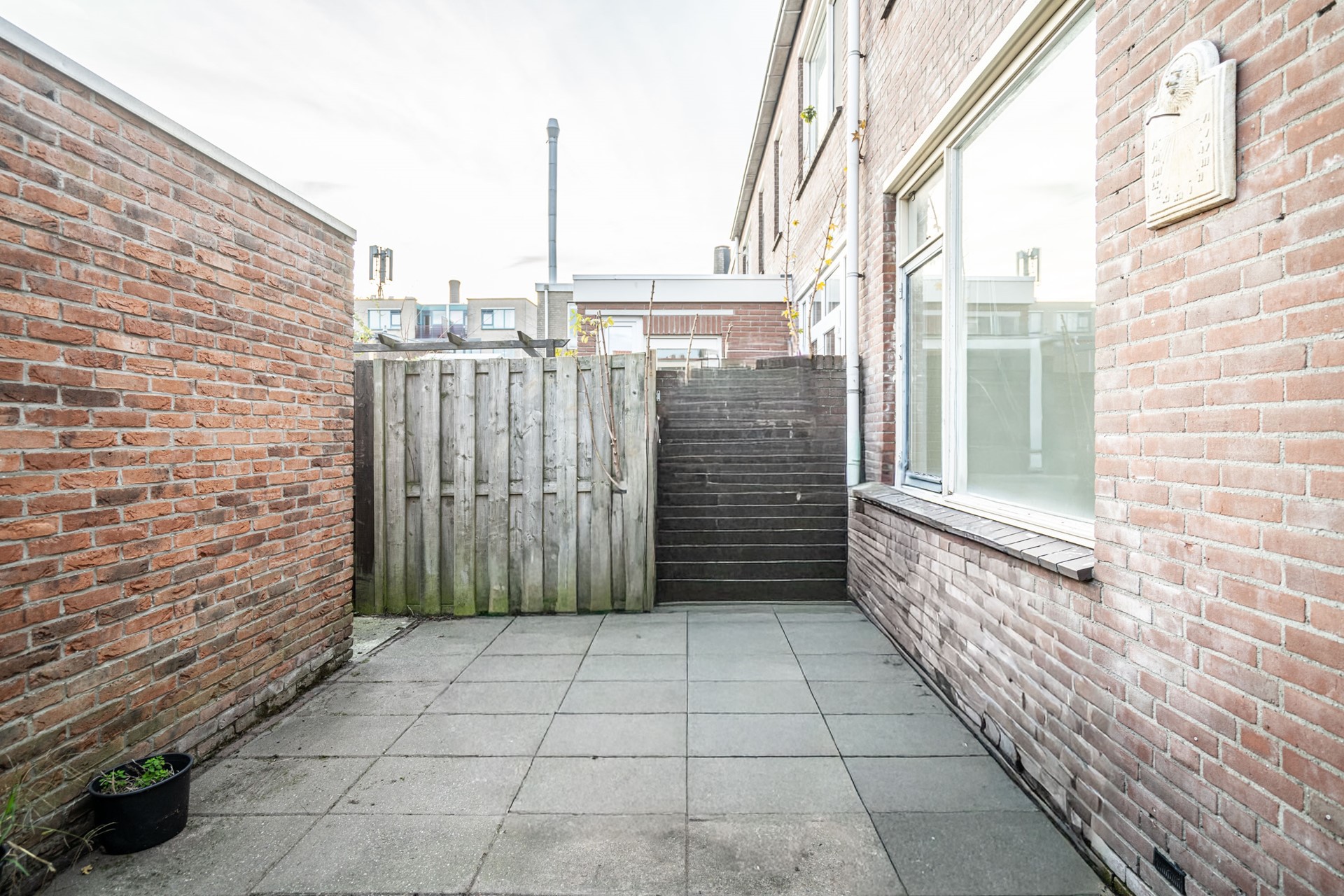 Entree, hal met meterkast en toilet. Trapopgang. Op deze verdieping zijn 2 kamers aanwezig, aan de achterzijde bevindt zich de keuken met toegang tot de achtertuin. De achtertuin is voorzien van een zeer ruime berging met achterom.