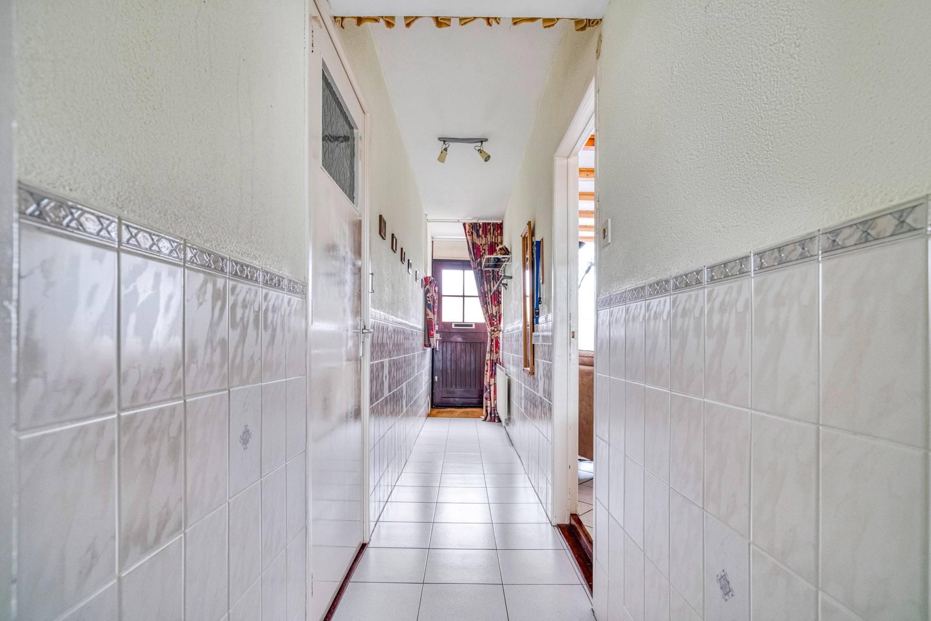 De badkamer is praktisch ingericht met een douche, wastafel en toilet. Aan de achterzijde van de woning bevinden zich de keuken en bijkeuken. De keuken is uitgerust met een 4-pits gasfornuis, afzuigkap en vaatwasser. In de bijkeuken vind je de aansluitingen voor wasmachine en droger, én de opstelplaats van de vernieuwde C.V.-ketel (2025).