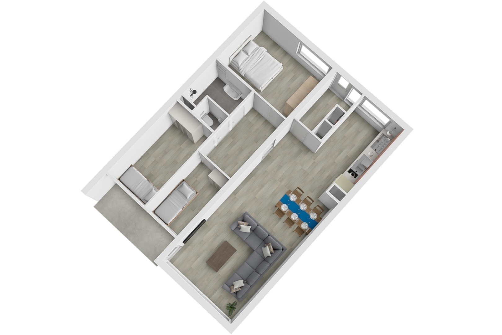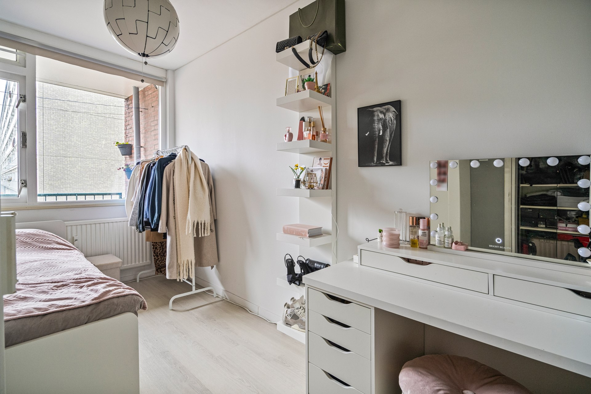 Aan de voorzijde bevindt zich de lichte en sfeervolle woonkamer. Dankzij de brede raampartijen valt hier veel daglicht binnen en is er volop ruimte voor zowel een comfortabele zithoek als een eettafel. De woonkamer sluit prettig aan op het balkon aan de achterzijde, waar je een rustige plek hebt om even buiten te zitten en te genieten van de buitenlucht.