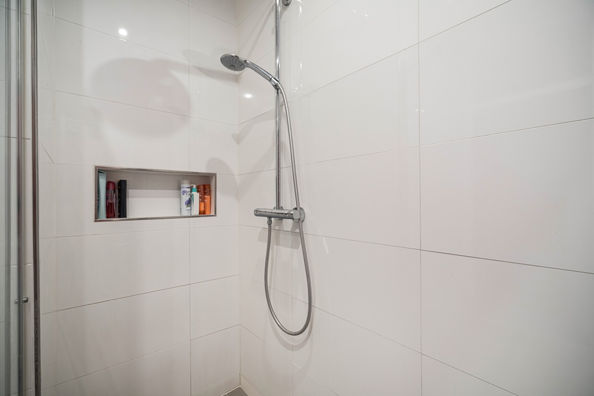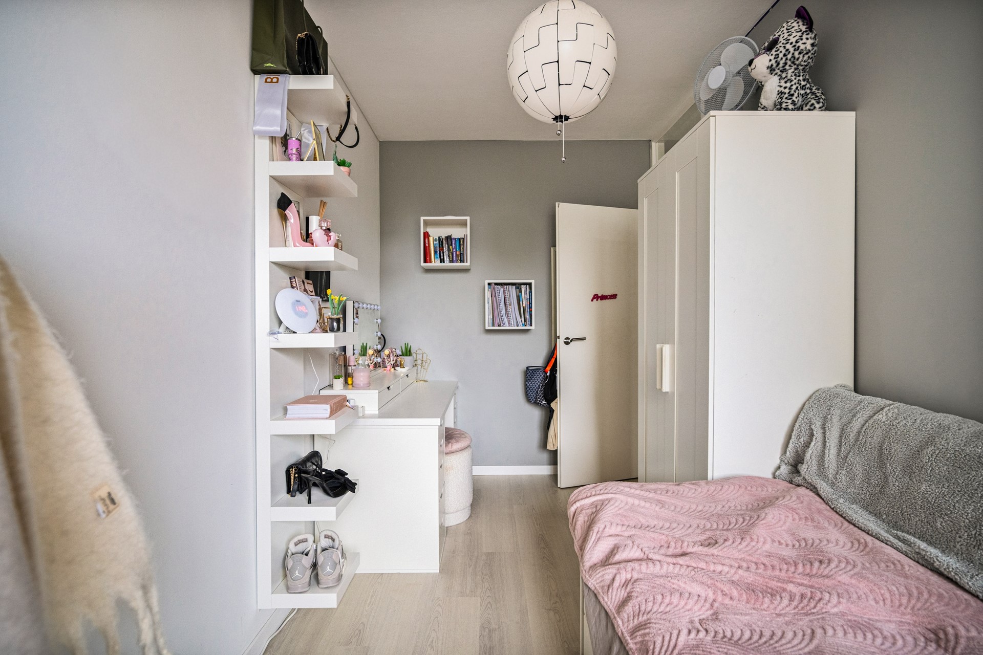 Via de centrale hal zijn de drie slaapkamers bereikbaar. De hoofdslaapkamer is ruim en rustig gelegen; de tweede en derde slaapkamer is ideaal te gebruiken als logeerkamer, thuiswerkplek of kinderkamer. De moderne badkamer is netjes afgewerkt en voorzien van een inloopdouche en wastafelmeubel, handdoekradiator en voldoende opbergruimte. Daarnaast is er een separaat toilet in de hal, wat het wooncomfort compleet maakt.