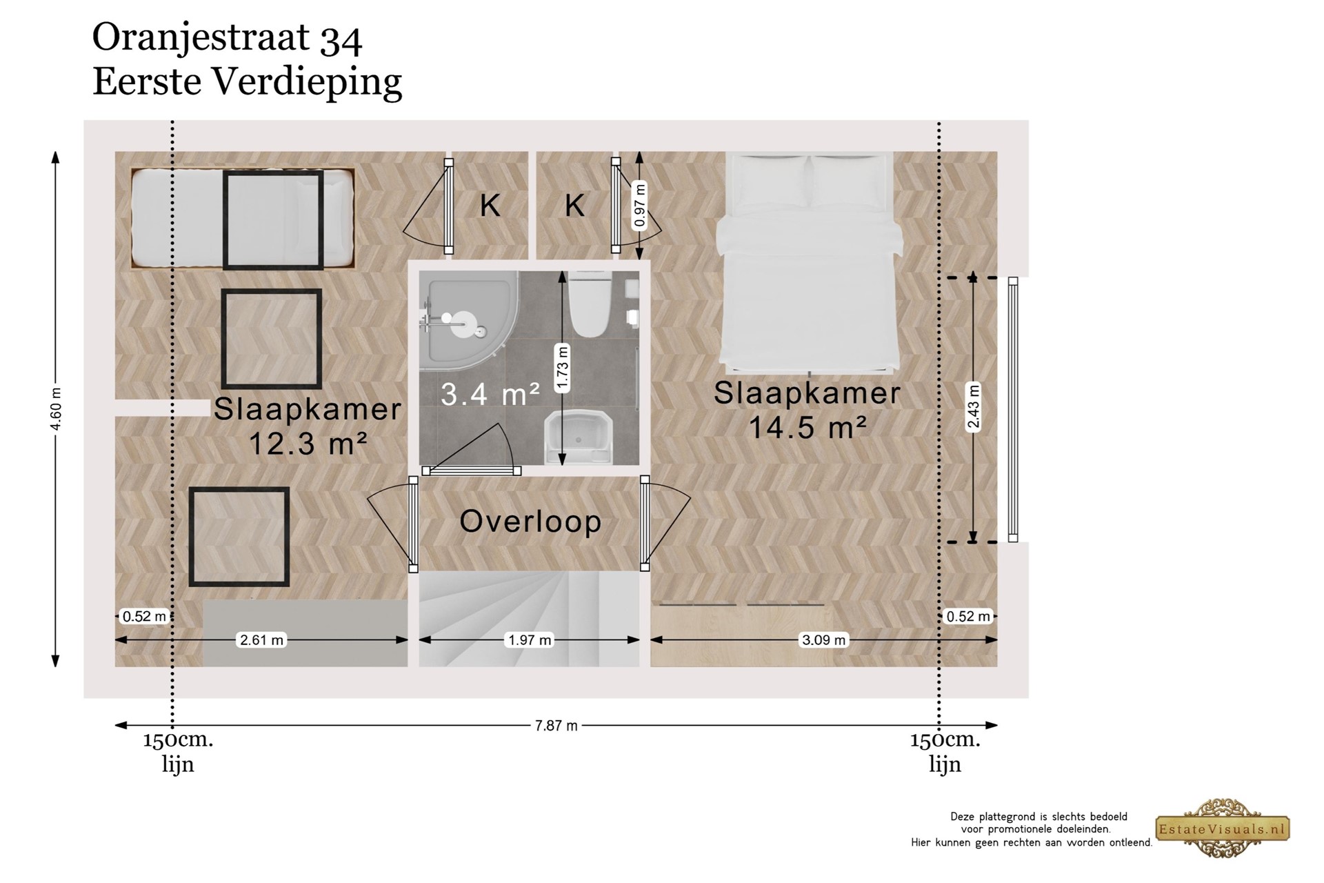 Via de vaste trap bereikt u de eerste verdieping. Hier bevinden zich twee ruime slaapkamers en een super nette en moderne badkamer, voorzien van een douche, wastafel, 2e toilet en designradiator