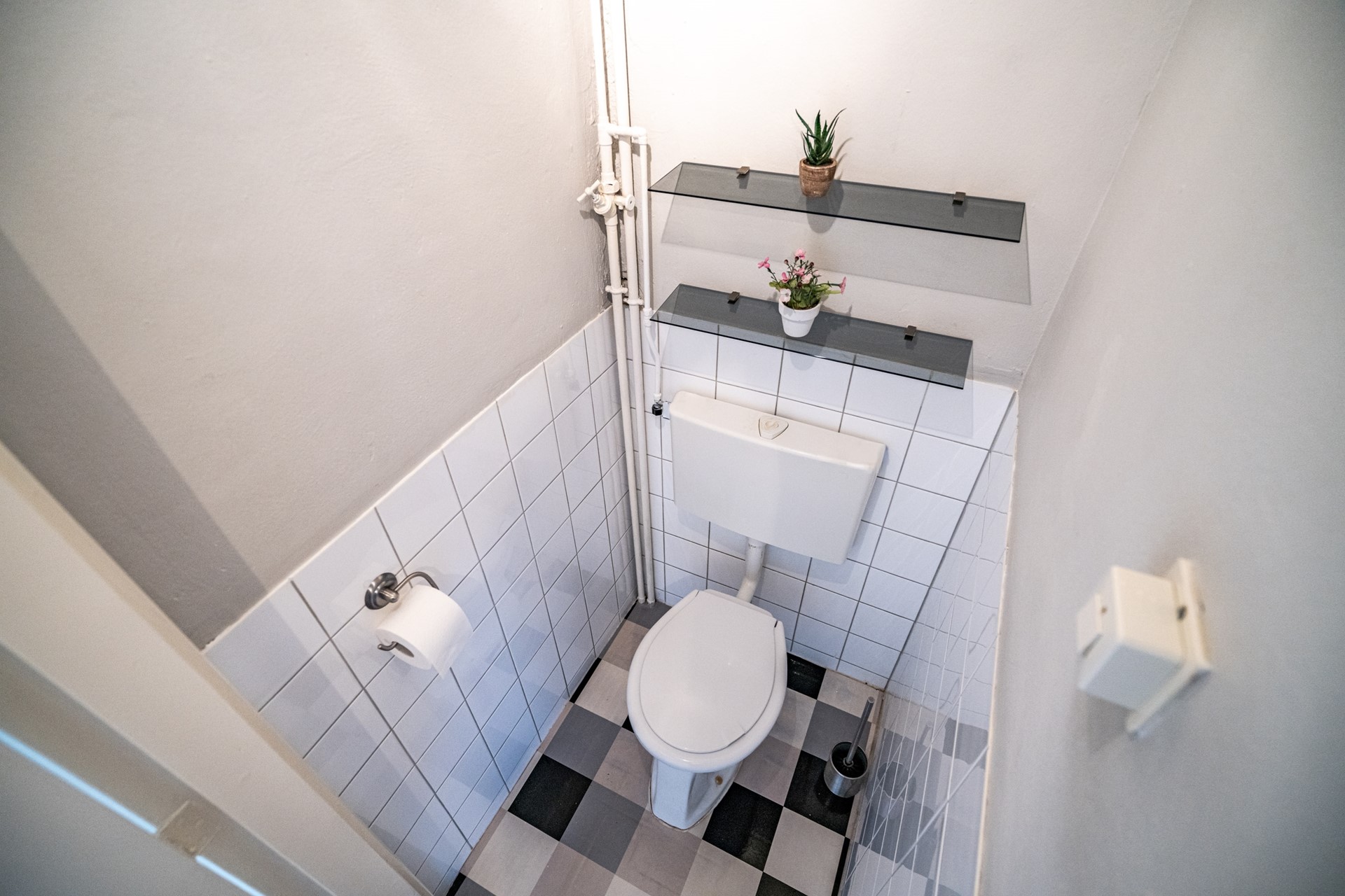 Afgesloten entree met brievenbussen, bellentableau en trappenhuis. In het souterrain bevindt zich de ruime privéberging, netjes afgewerkt en met mogelijkheden voor bijvoorbeeld een werkplek.