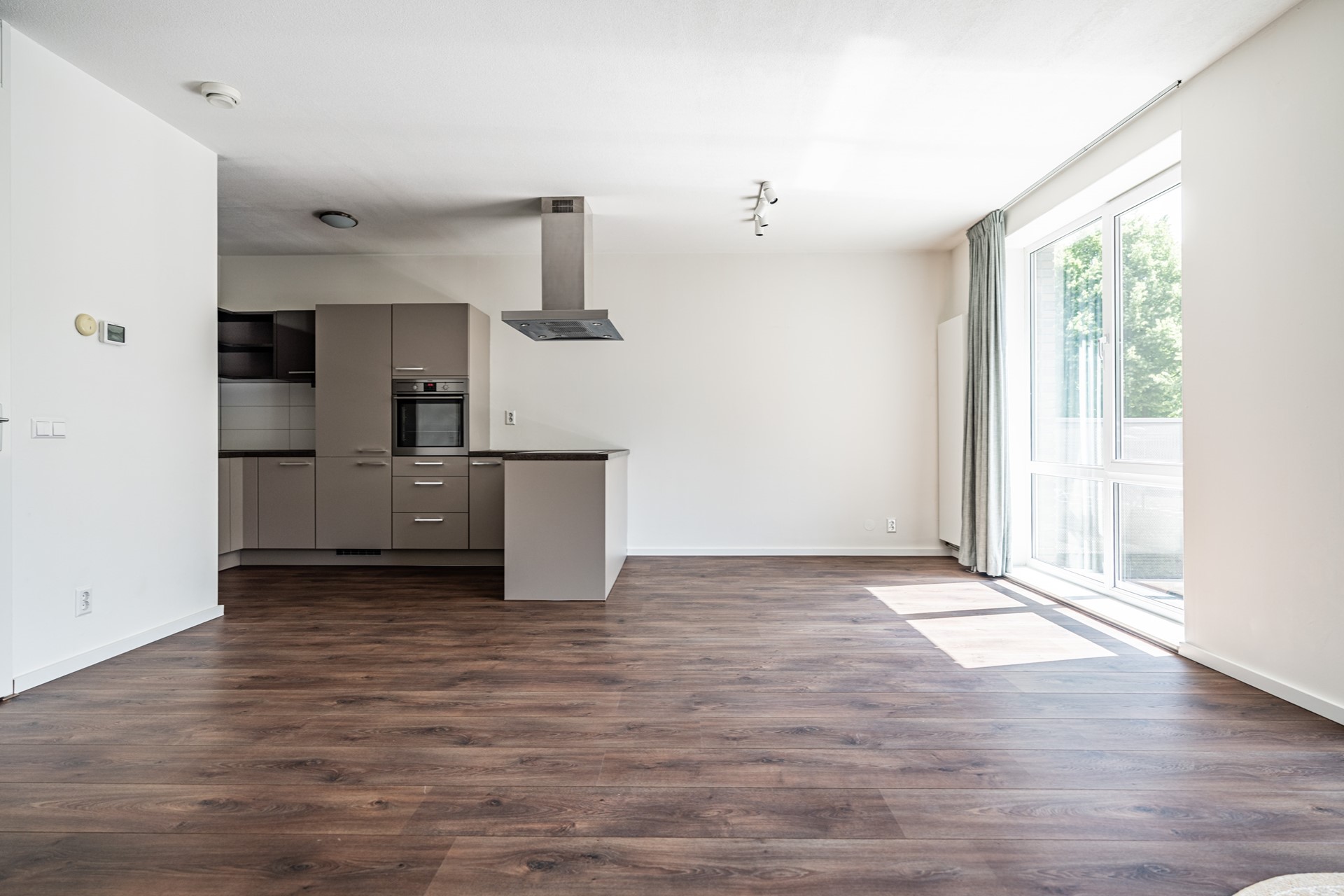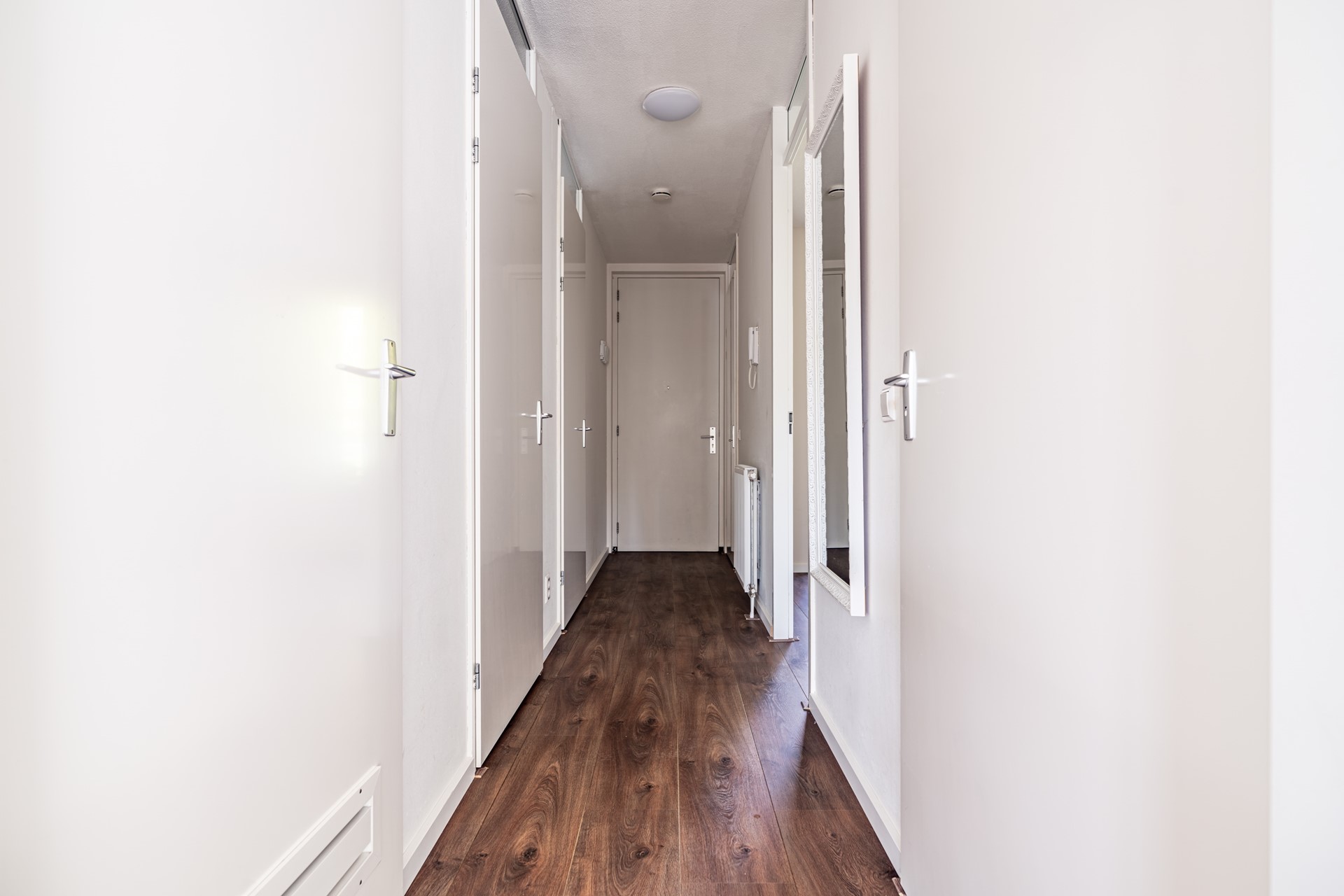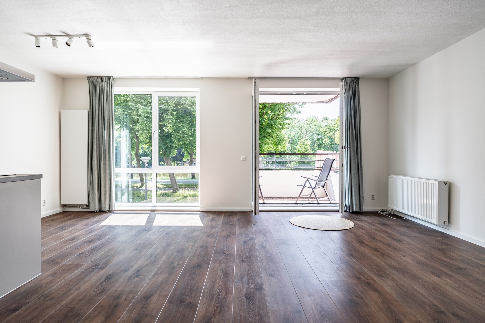 Je komt binnen in een ruime hal die toegang biedt tot alle vertrekken. De lichte woonkamer met hoge ramen en openslaande deuren naar het balkon is het hart van de woning. De open keuken is strak afgewerkt en voorzien van moderne inbouwapparatuur. Verder zijn er twee fijne slaapkamers, een moderne badkamer met inloopdouche en wastafelmeubel, een separaat toilet en een technische ruimte met aansluitingen voor wasmachine en droger.