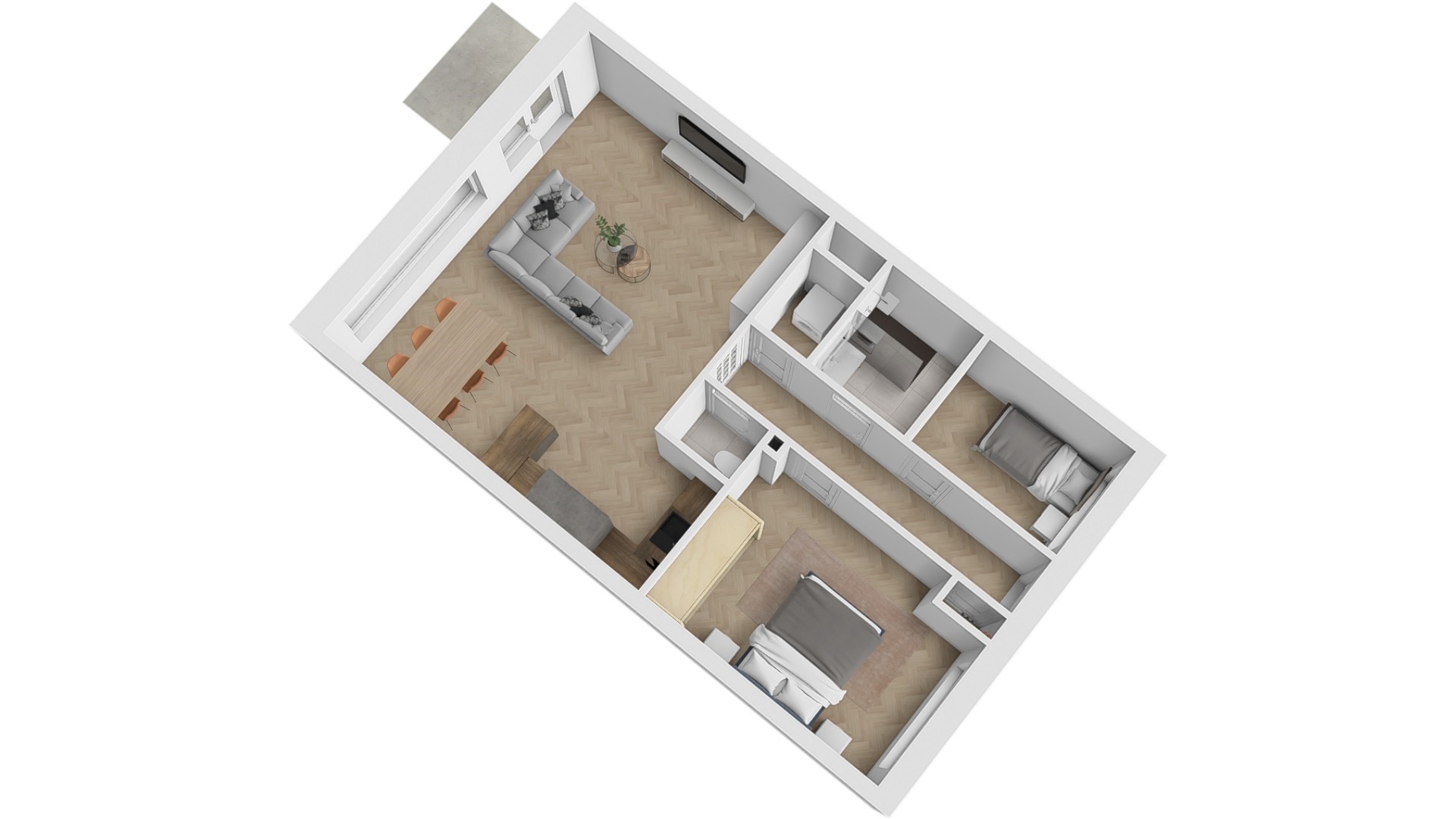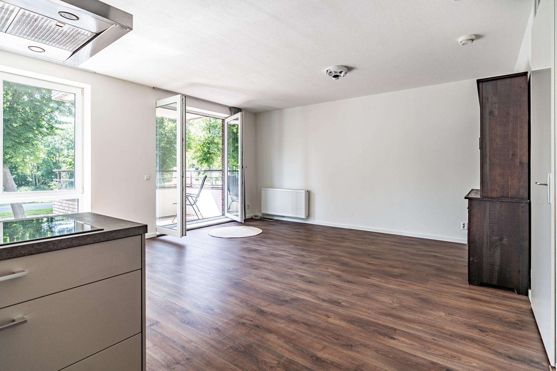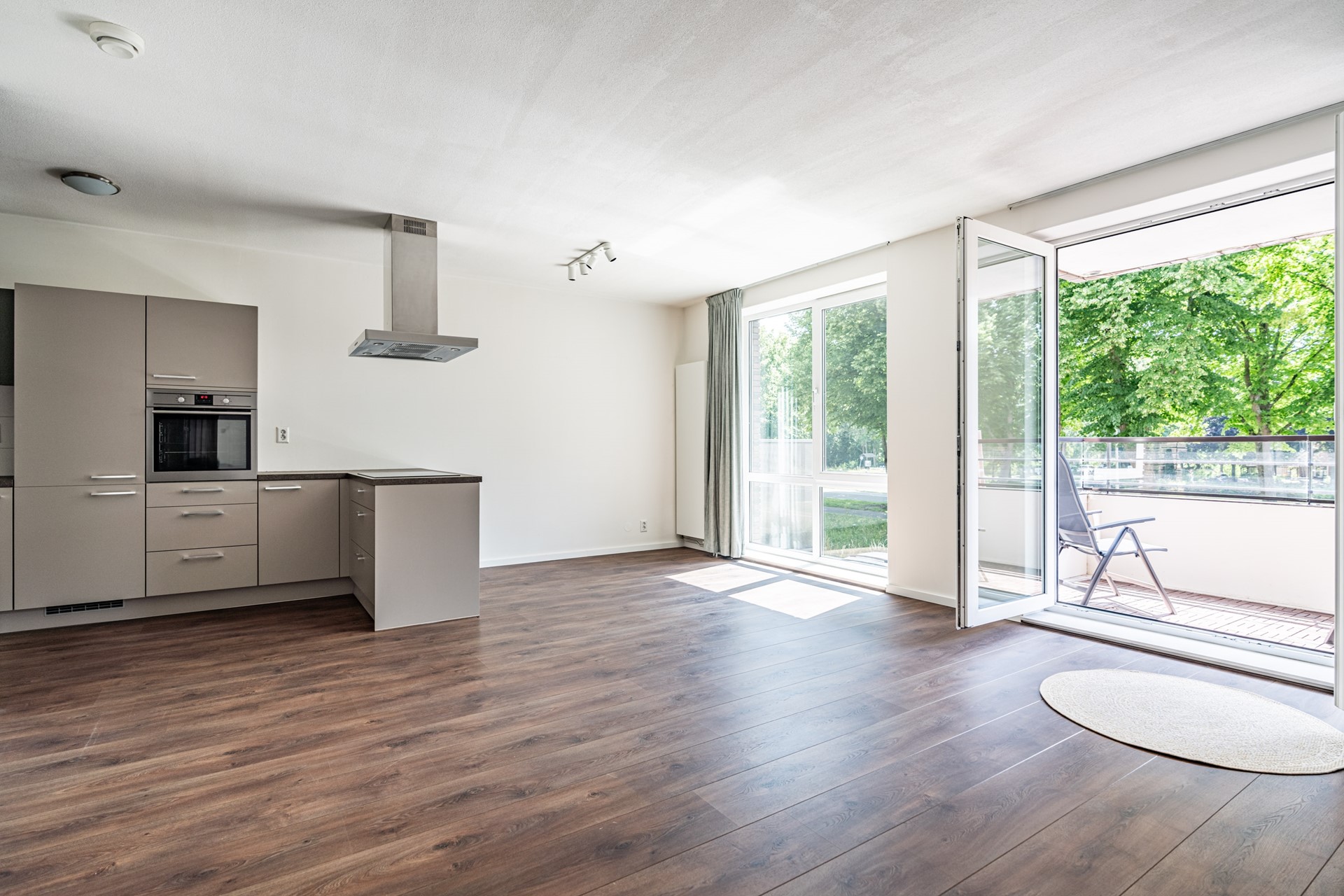 Je komt binnen in een ruime hal die toegang biedt tot alle vertrekken. De lichte woonkamer met hoge ramen en openslaande deuren naar het balkon is het hart van de woning. De open keuken is strak afgewerkt en voorzien van moderne inbouwapparatuur. Verder zijn er twee fijne slaapkamers, een moderne badkamer met inloopdouche en wastafelmeubel, een separaat toilet en een technische ruimte met aansluitingen voor wasmachine en droger.