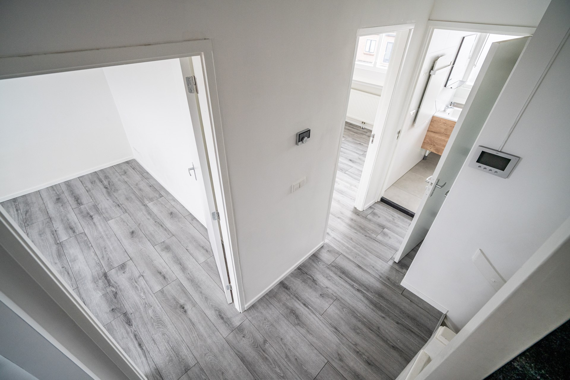 Via the entrance at street level, you reach the shared staircase to apartments 52A and 52B. Apartment 52B has its own enclosed entrance on the first floor.