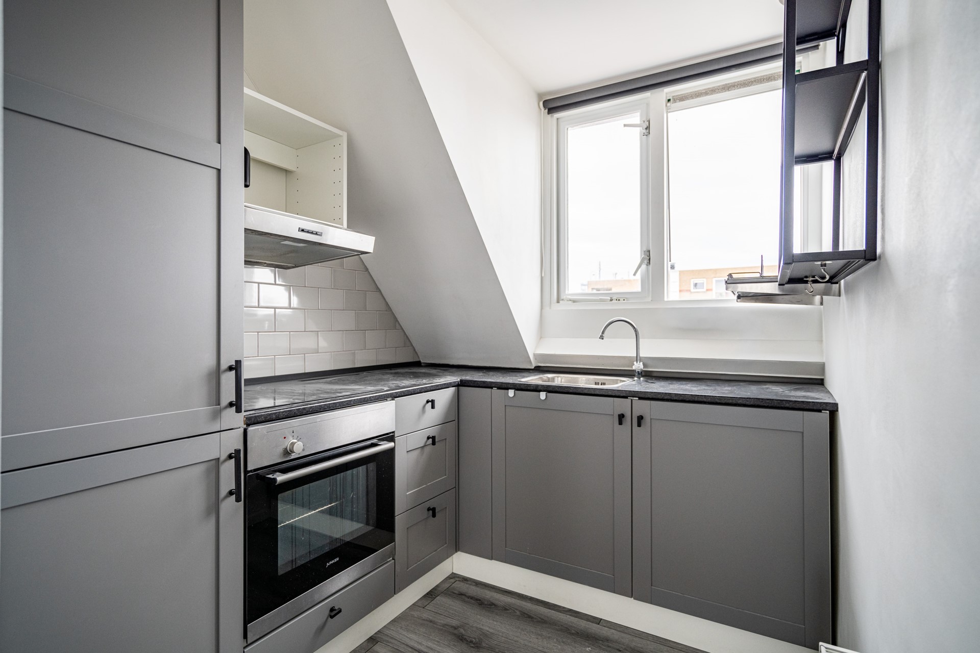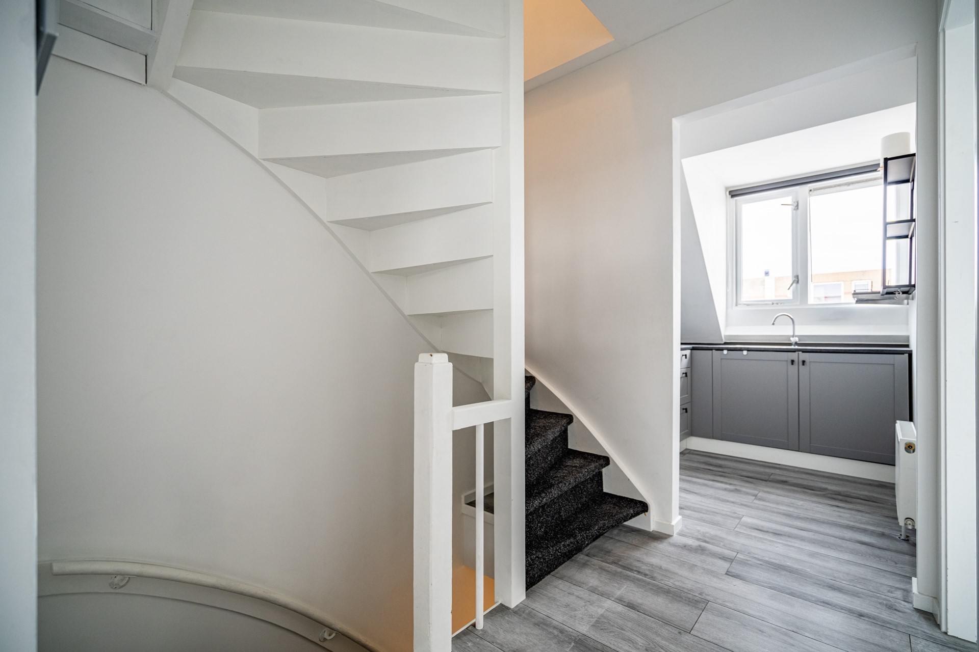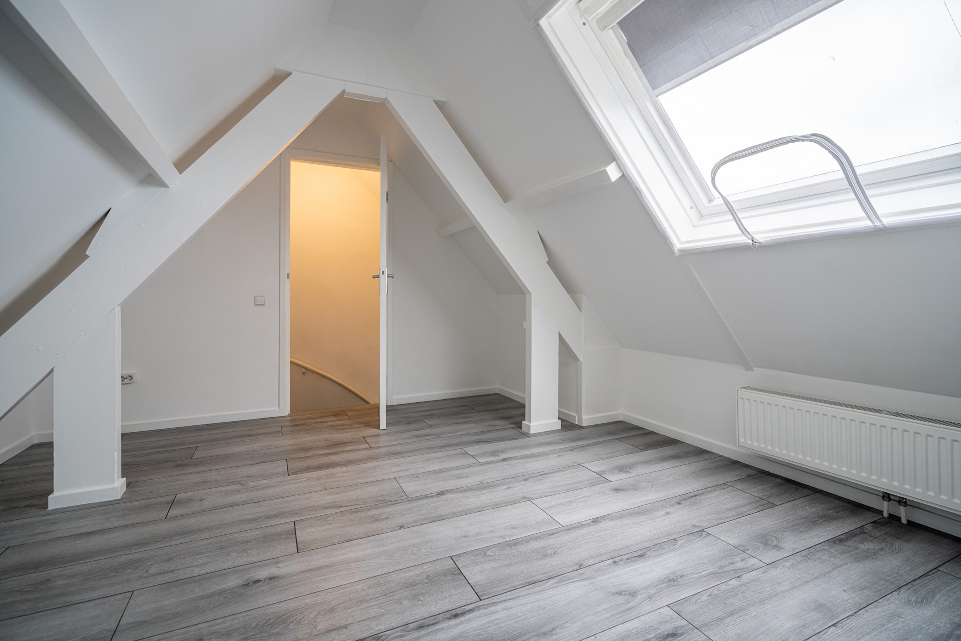This neatly finished 3-room apartment is located on the top floors of a characteristic 1930s building in the popular and centrally located De Kooi neighborhood. The home is spread over two floors and offers a pleasant combination of space, light, and a practical layout.