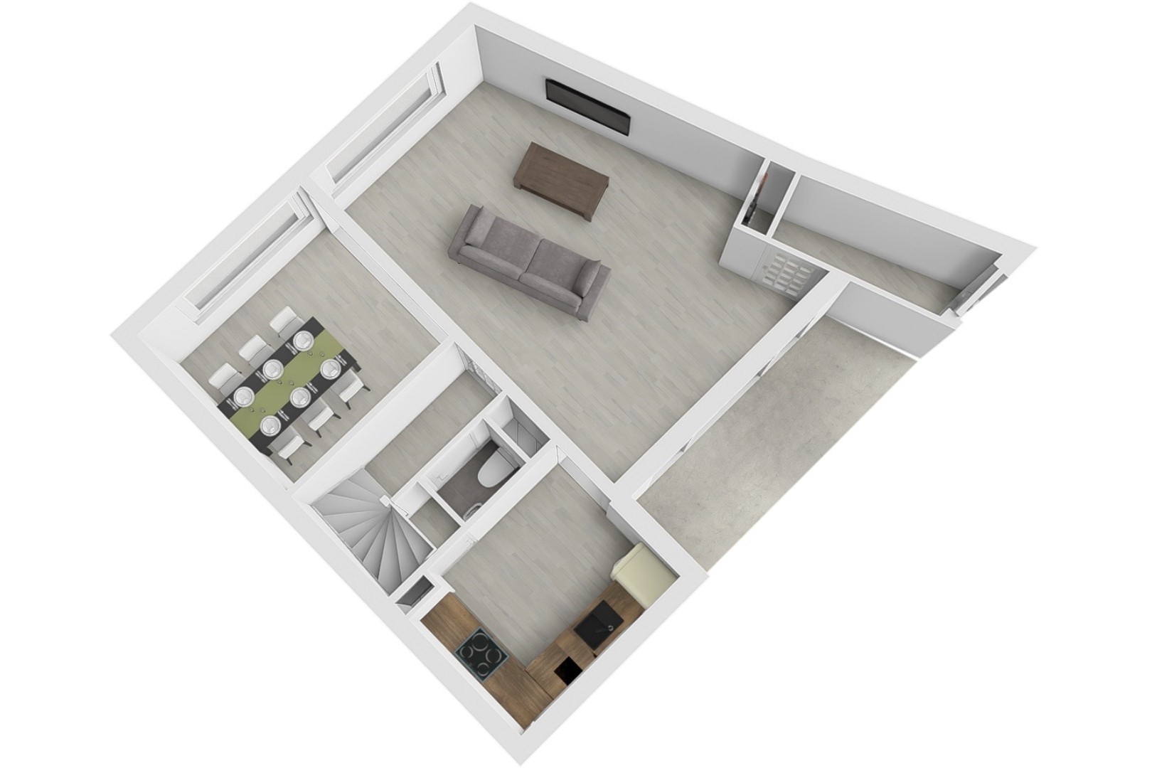 • Woonkamer doorgebroken voor extra ruimte