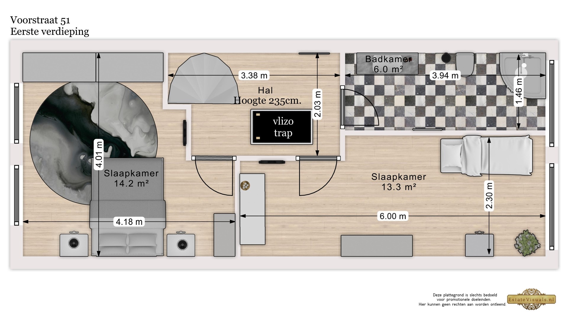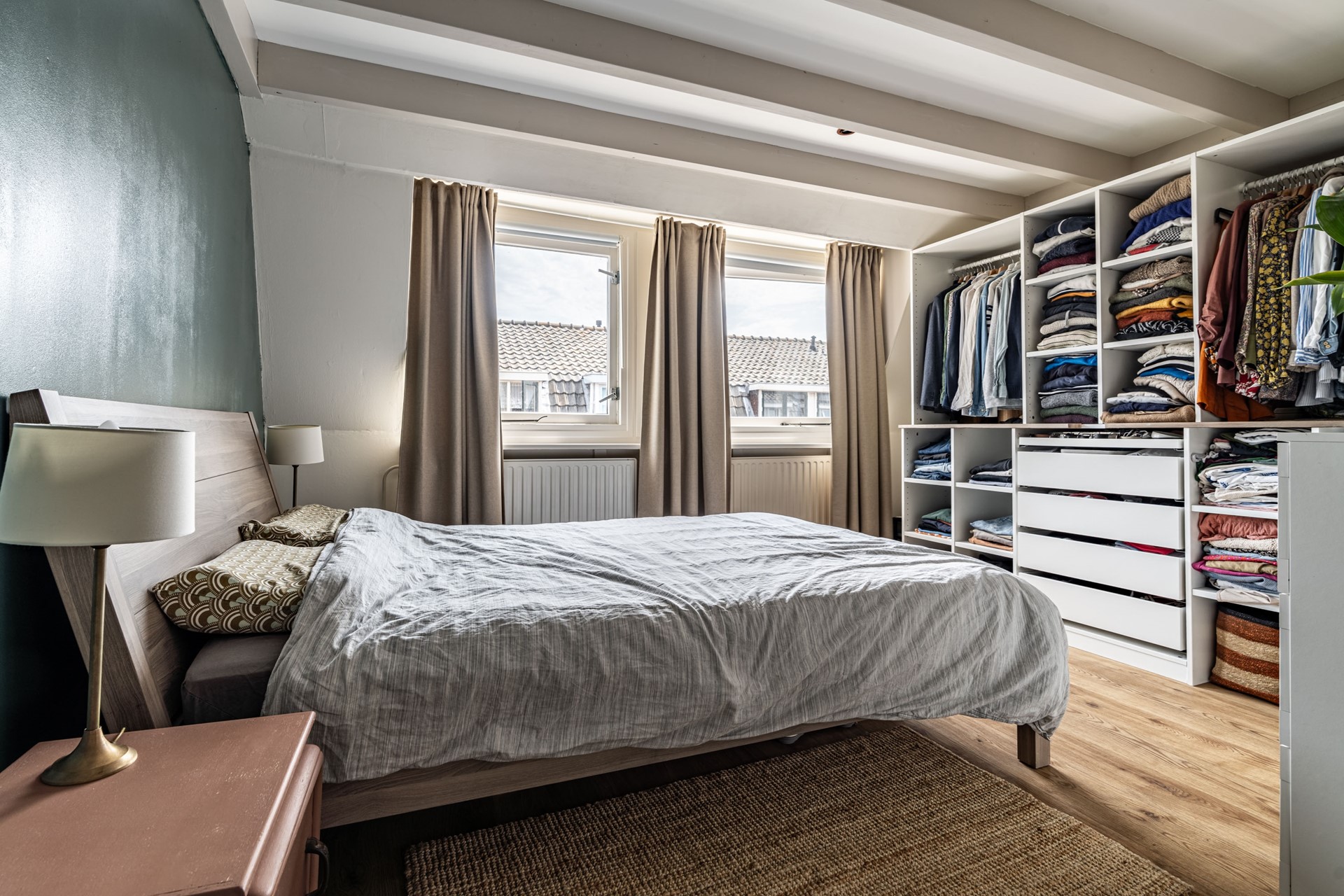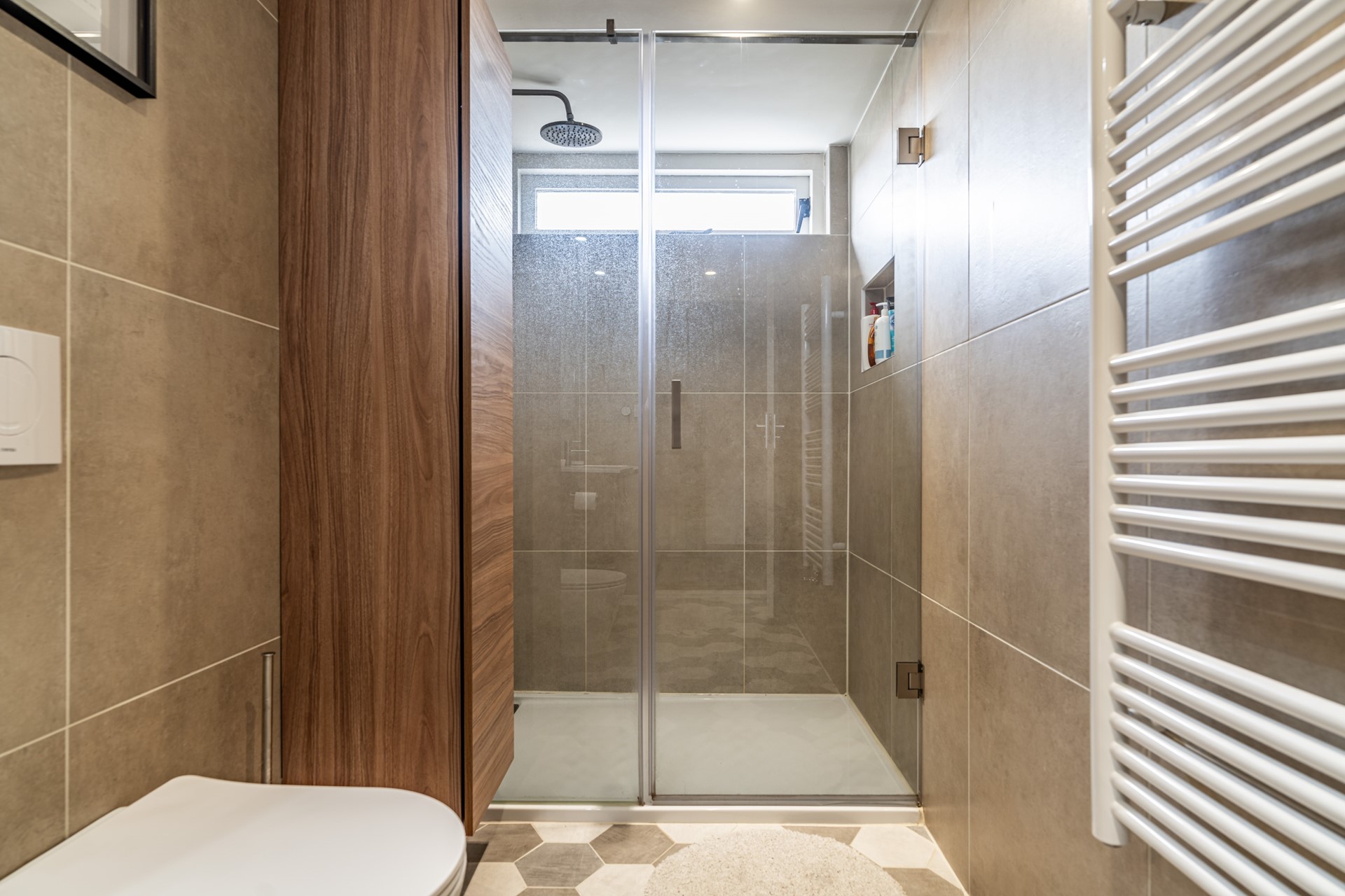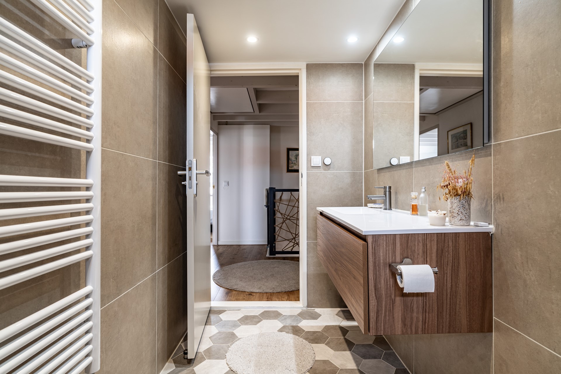 Overloop met toegang tot twee zeer ruime slaapkamers. De recent vernieuwde badkamer is een echte eyecatcher: voorzien van inloopdouche, wastafel, tweede hangend toilet, radiator en aansluitingen voor wasmachine en droger. De slaapkamers zijn voorzien van HR++ beglazing, wat bijdraagt aan extra comfort en isolatie.