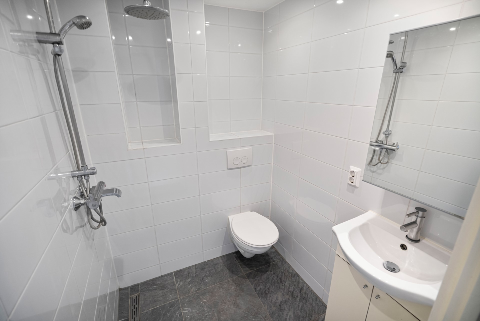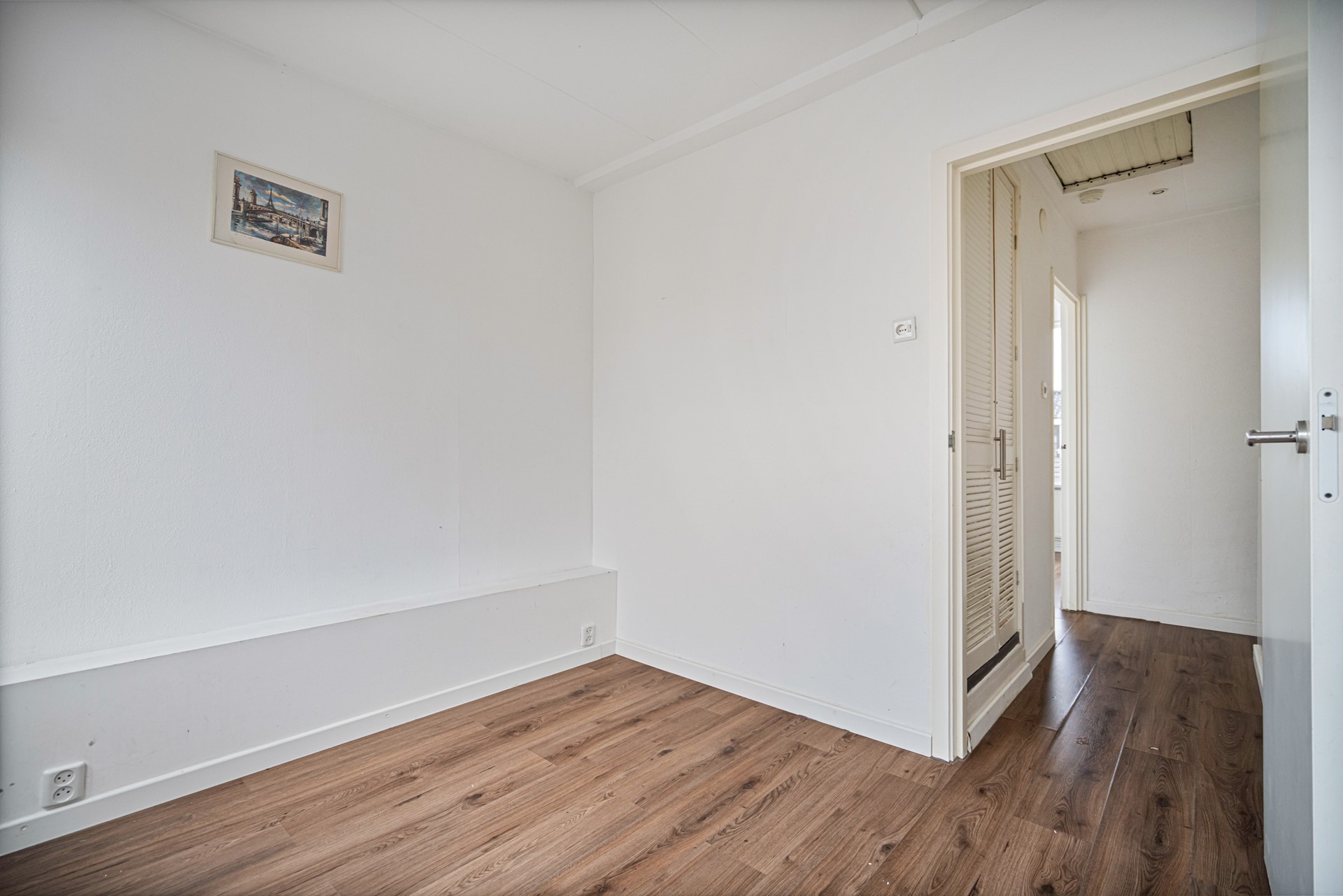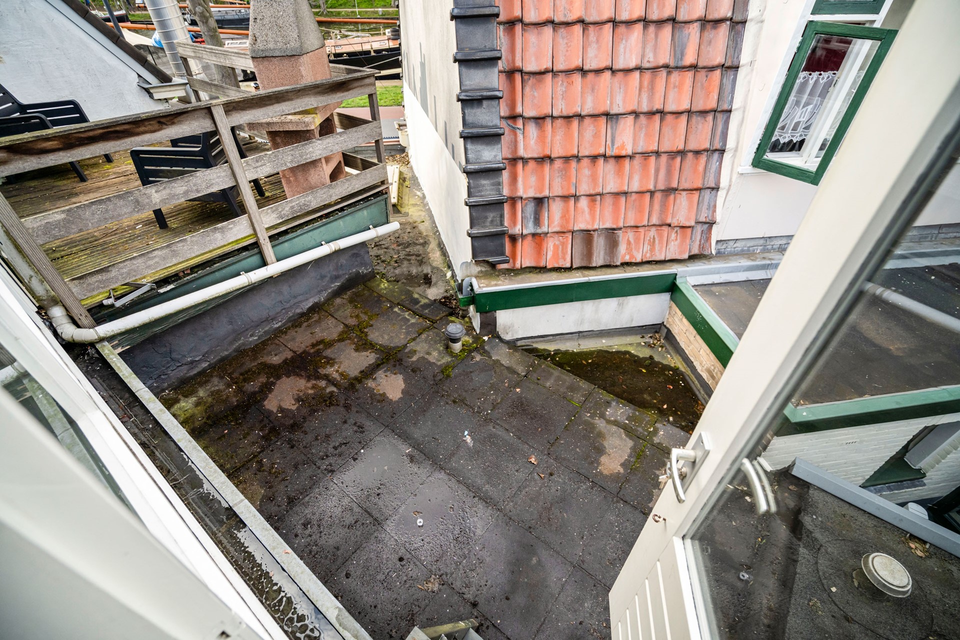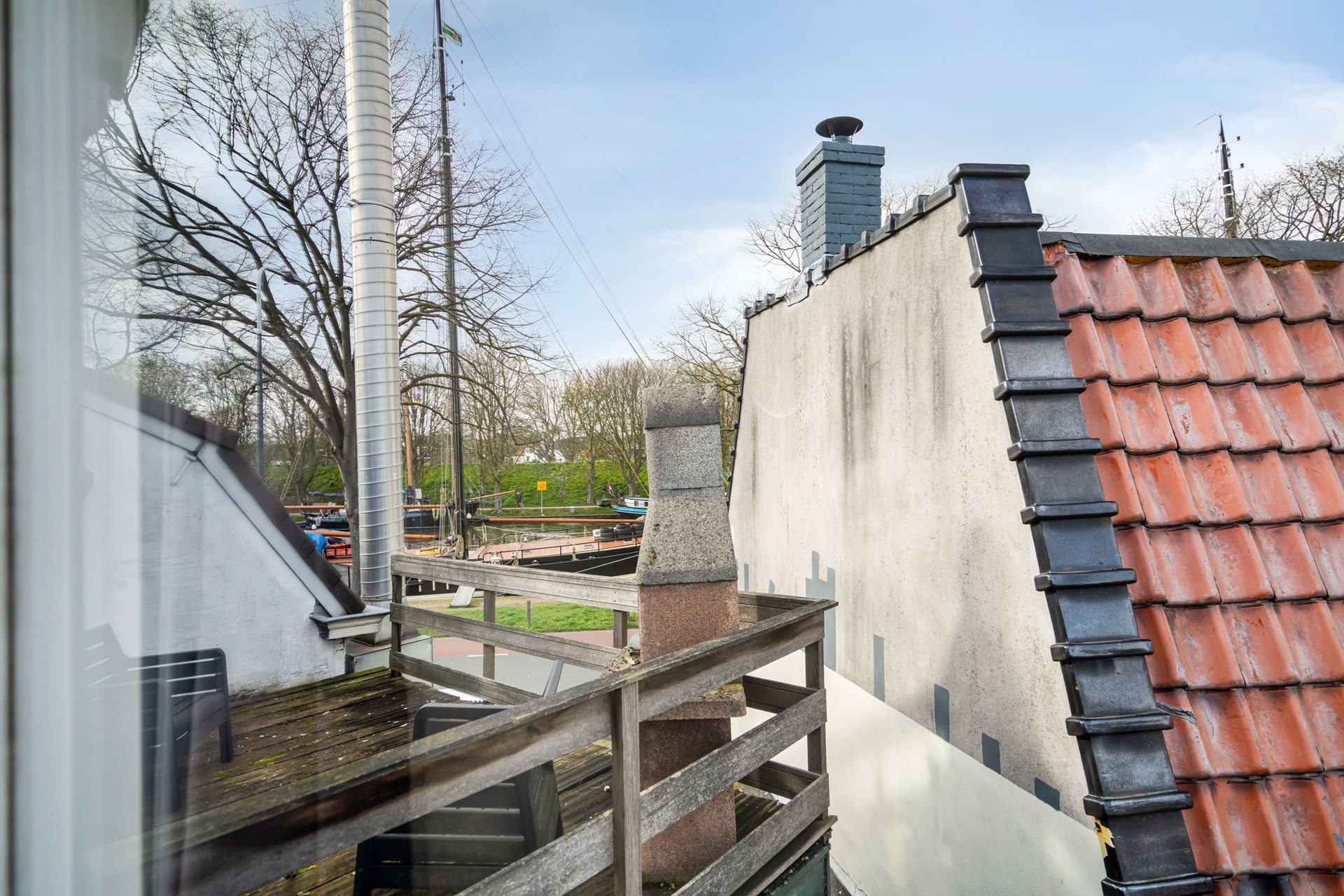 Via de trap bereik je de eerste verdieping. Hier vind je twee slaapkamers en een nette badkamer. De badkamer is voorzien van een tweede hangend toilet, wastafel, douche en mechanische ventilatie. De slaapkamer aan de achterzijde beschikt over een deur naar het dak en biedt bovendien een mooi uitzicht over het vaarwater van de singel – een bijzonder pluspunt van deze woning.