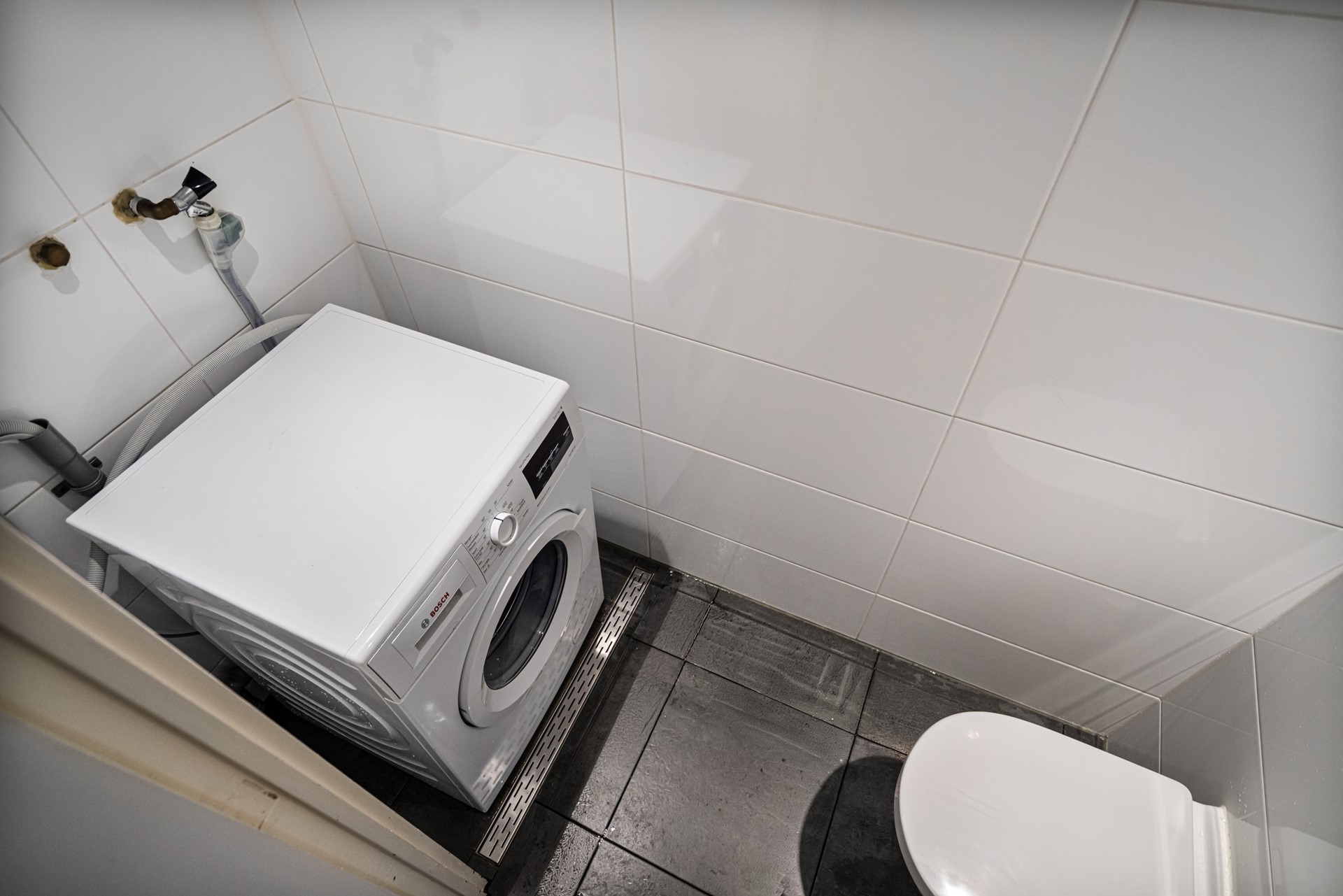 Bij binnenkomst tref je de entree met meterkast. De woning beschikt over een lichte en ruime woonkamer met een open keuken, die aan de achterzijde is gesitueerd. Deze opstelling zorgt voor een prettige leefruimte met een fijne verbinding tussen koken en wonen. Aansluitend aan de keuken bevinden zich het toilet en de opstelplaats voor de wasmachine.