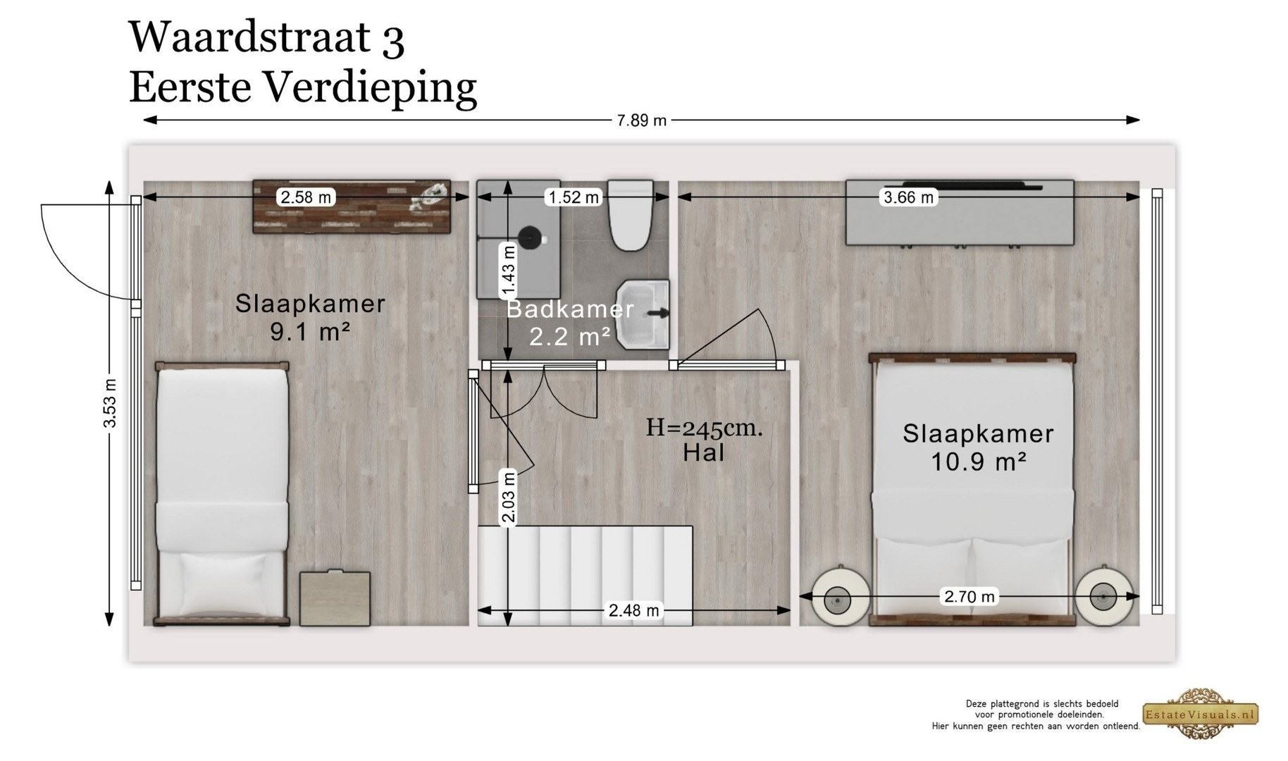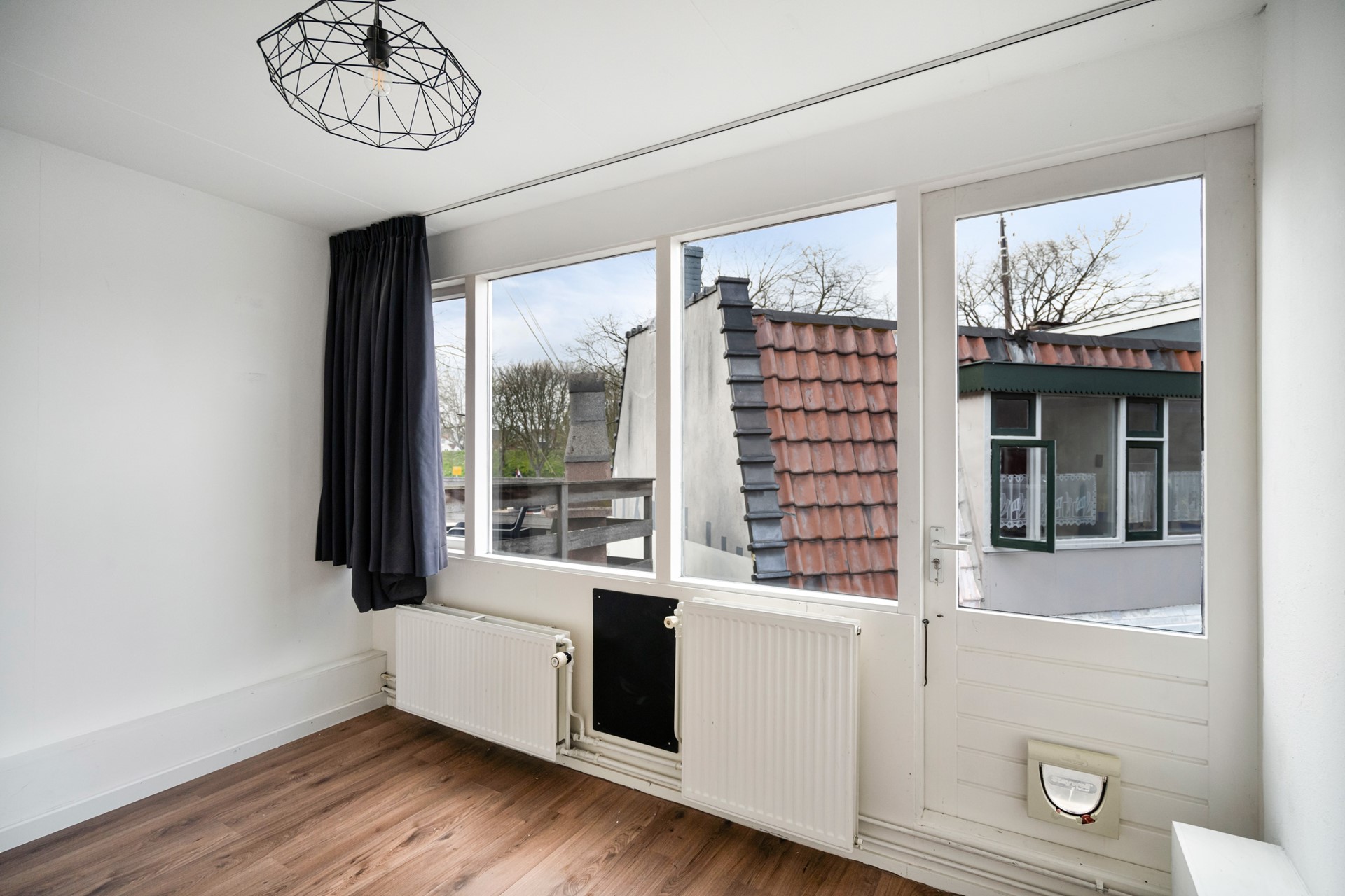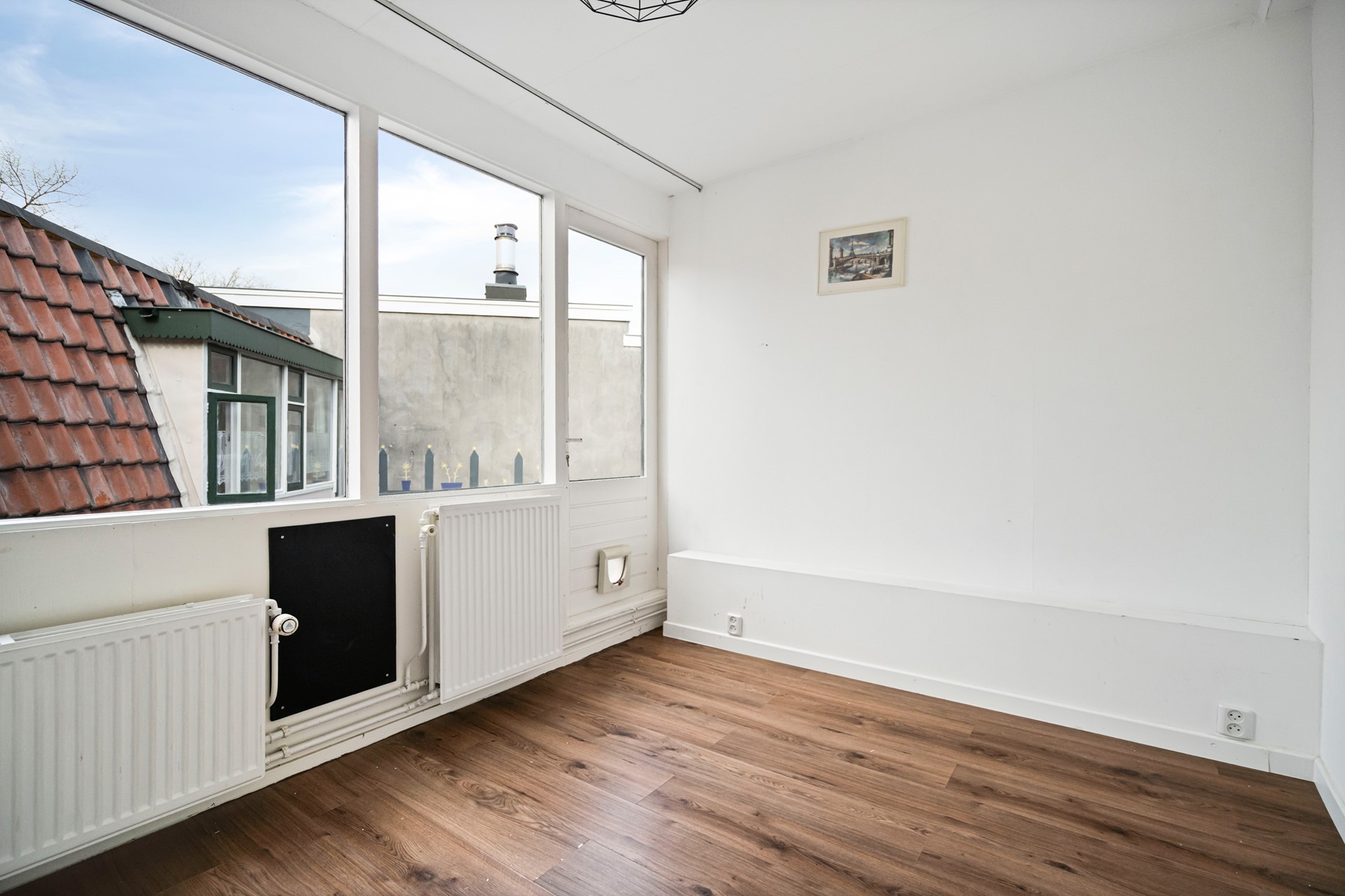 Via de trap bereik je de eerste verdieping. Hier vind je twee slaapkamers en een nette badkamer. De badkamer is voorzien van een tweede hangend toilet, wastafel, douche en mechanische ventilatie. De slaapkamer aan de achterzijde beschikt over een deur naar het dak en biedt bovendien een mooi uitzicht over het vaarwater van de singel – een bijzonder pluspunt van deze woning.