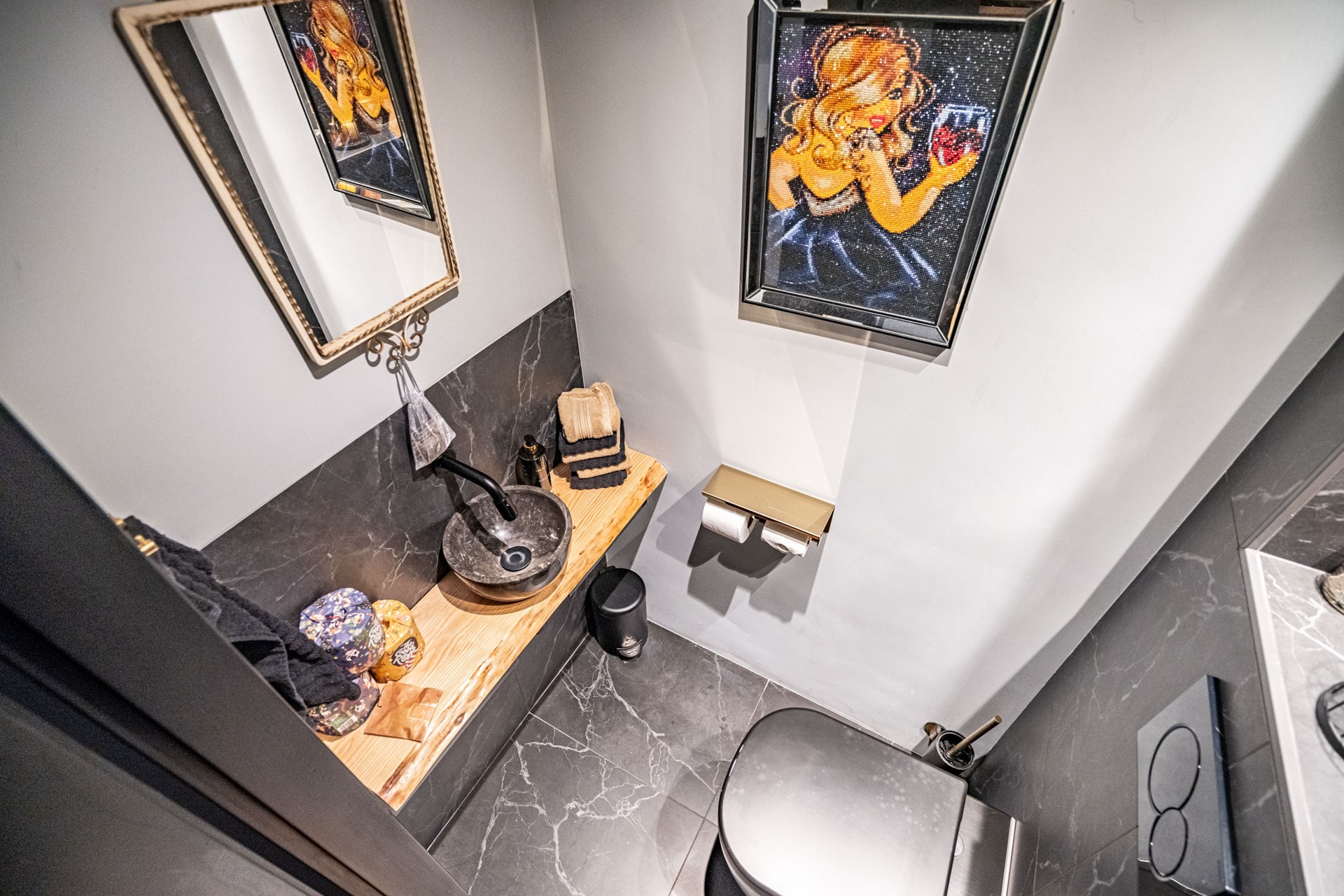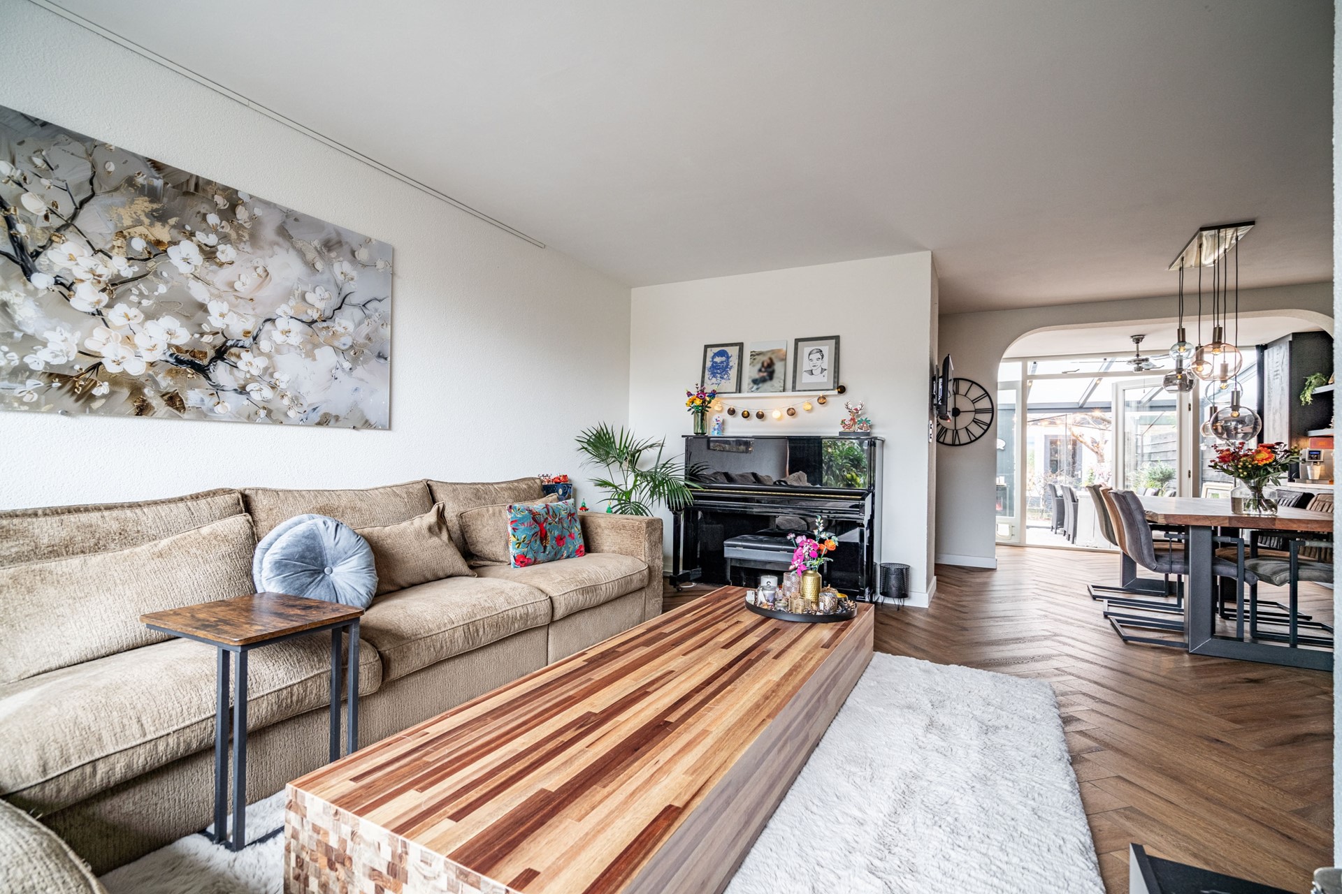 The spacious hallway features an upgraded meter cupboard and a modern toilet (2022). As soon as you step into the living room, one thing immediately stands out: the abundance of natural light and the pleasant layout. The sitting area is located at the front, while the dining area and semi-open kitchen at the rear create a warm and inviting living space.