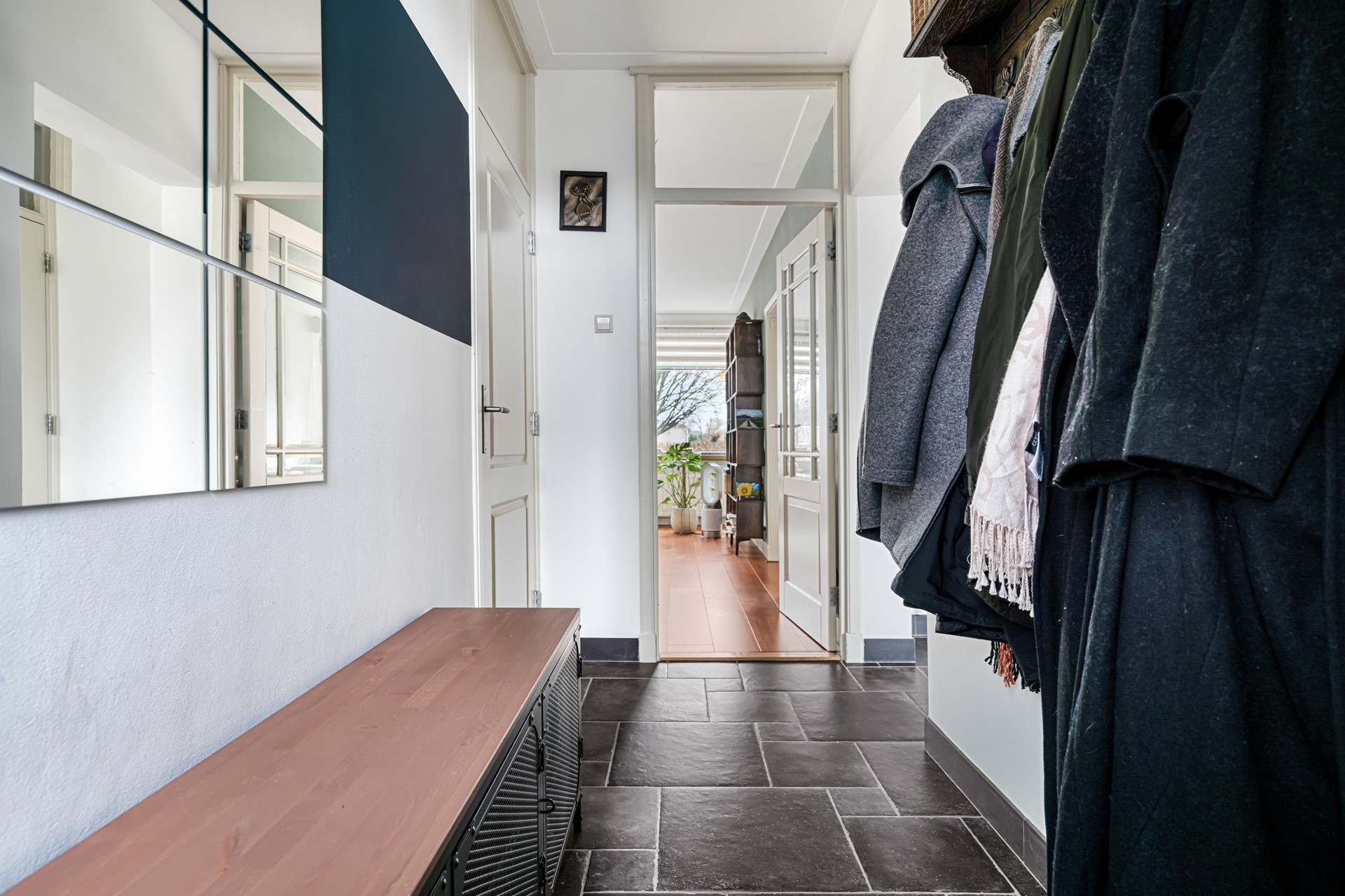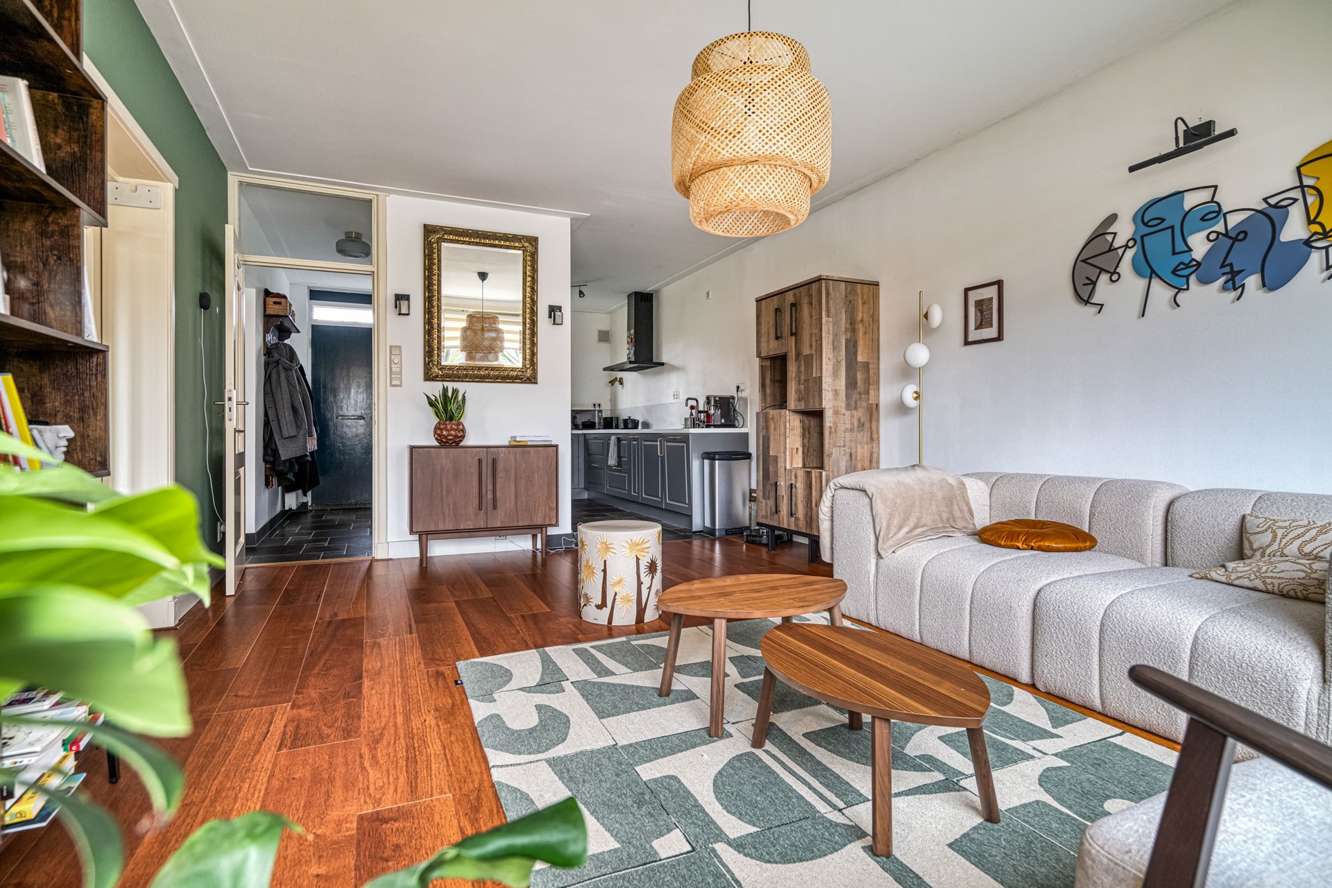 Via de entree kom je binnen in de hal, die toegang geeft tot de verschillende vertrekken. Vanuit de hal bereik je de ruime en lichte woonkamer, die dankzij de grote raampartijen een prettig woongevoel biedt. De woonkamer staat in open verbinding met de moderne keuken, die in 2023 volledig is vernieuwd.
