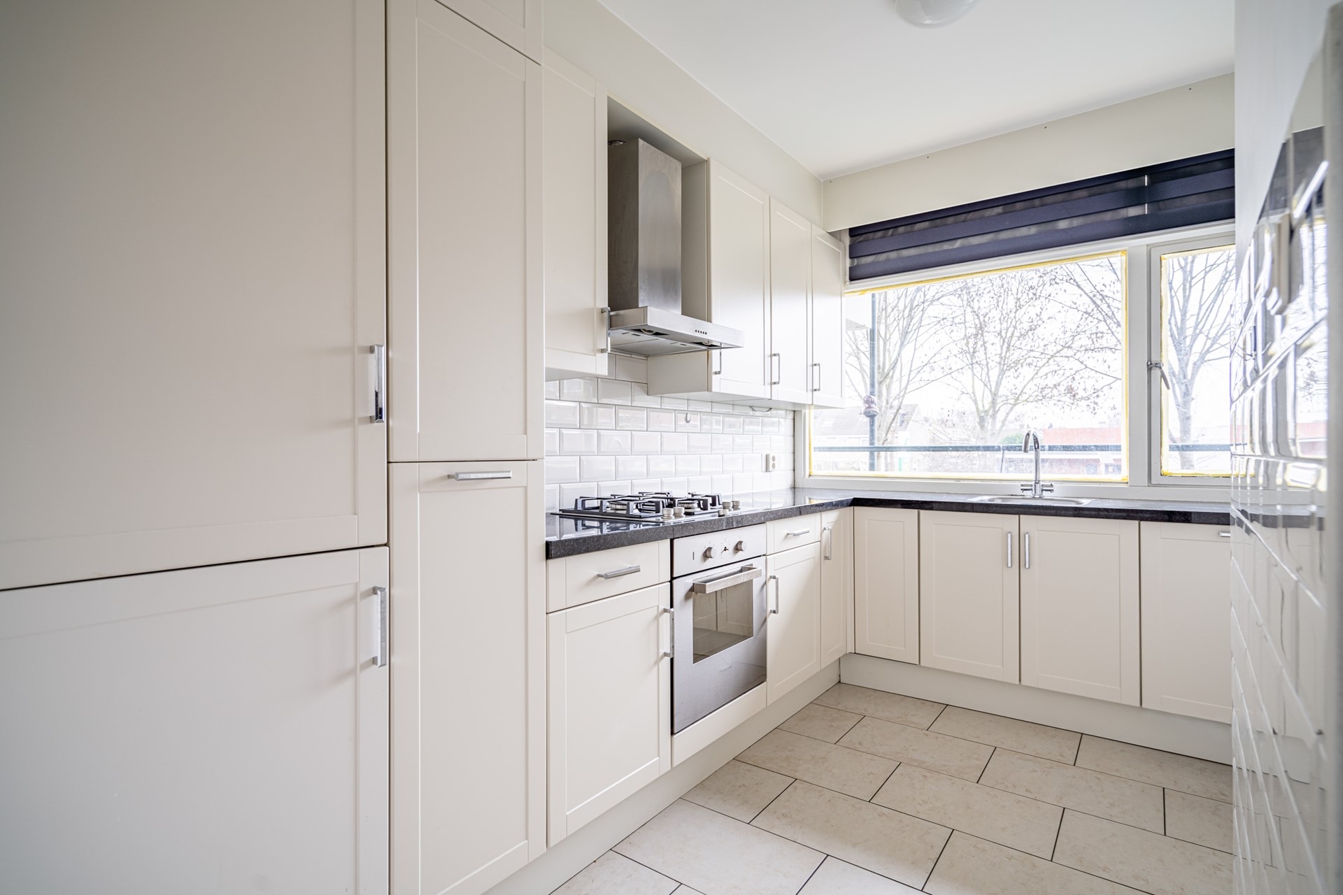 Via de tussenhal zijn de drie slaapkamers bereikbaar, waaronder een ruime hoofdslaapkamer en twee goed in te richten kamers die ideaal zijn als kinder-, werk- of logeerkamer. De badkamer is voorzien van douchecabine, wastafel en is netjes betegeld. Separaat toilet aanwezig. Nette keuken gelegen aan voorzijde.