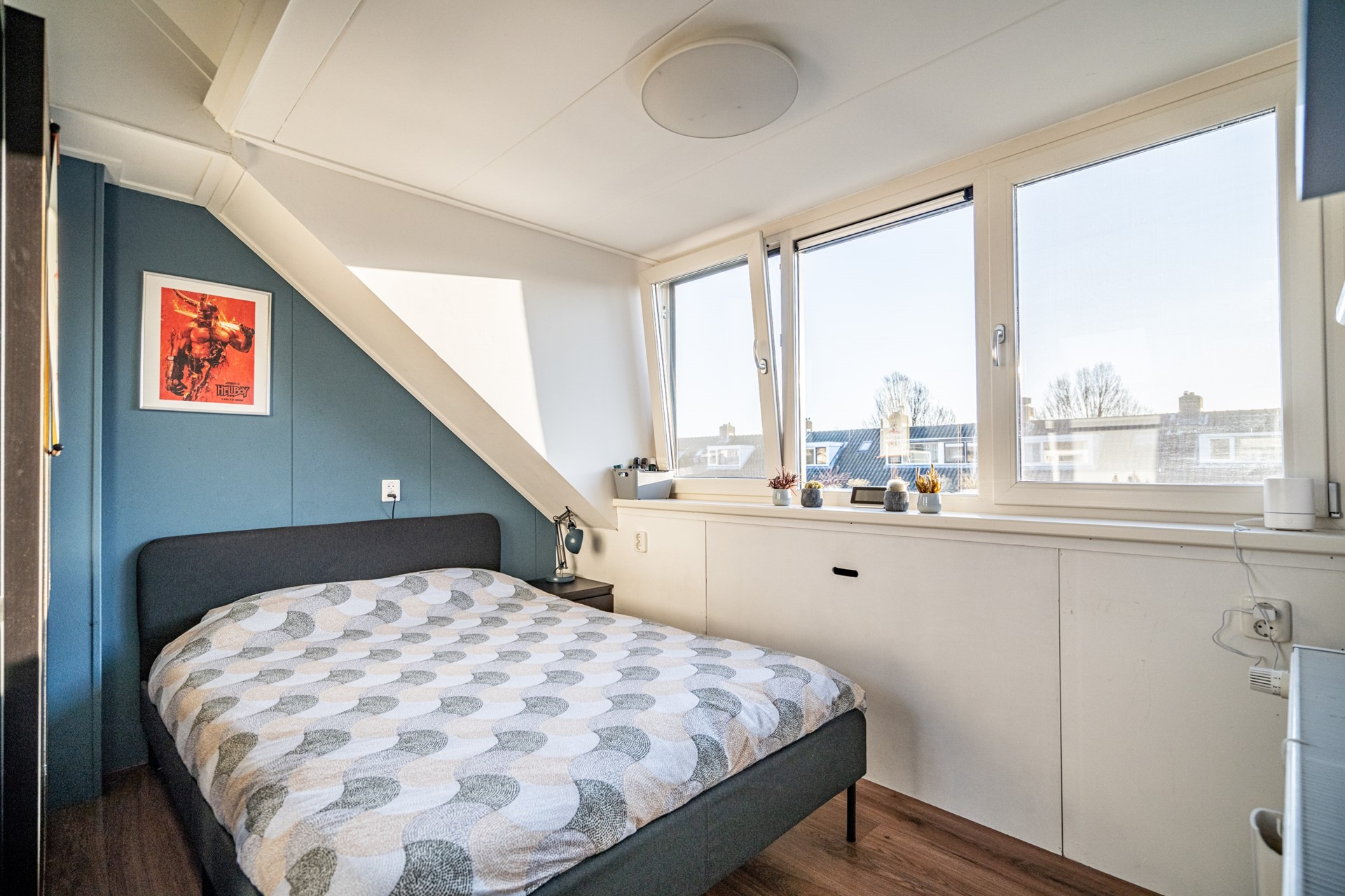 De tweede kamer tevens met dakkapel is perfect als thuiswerkplek, hobbyruimte of logeerkamer.
