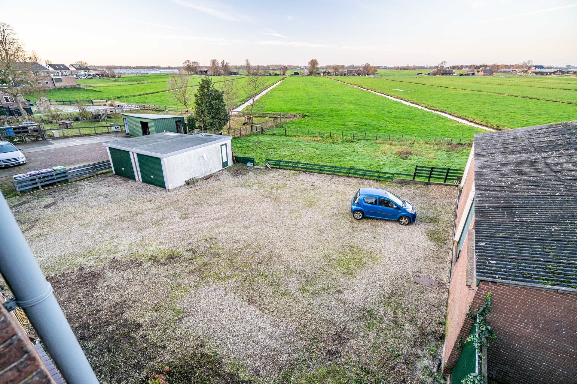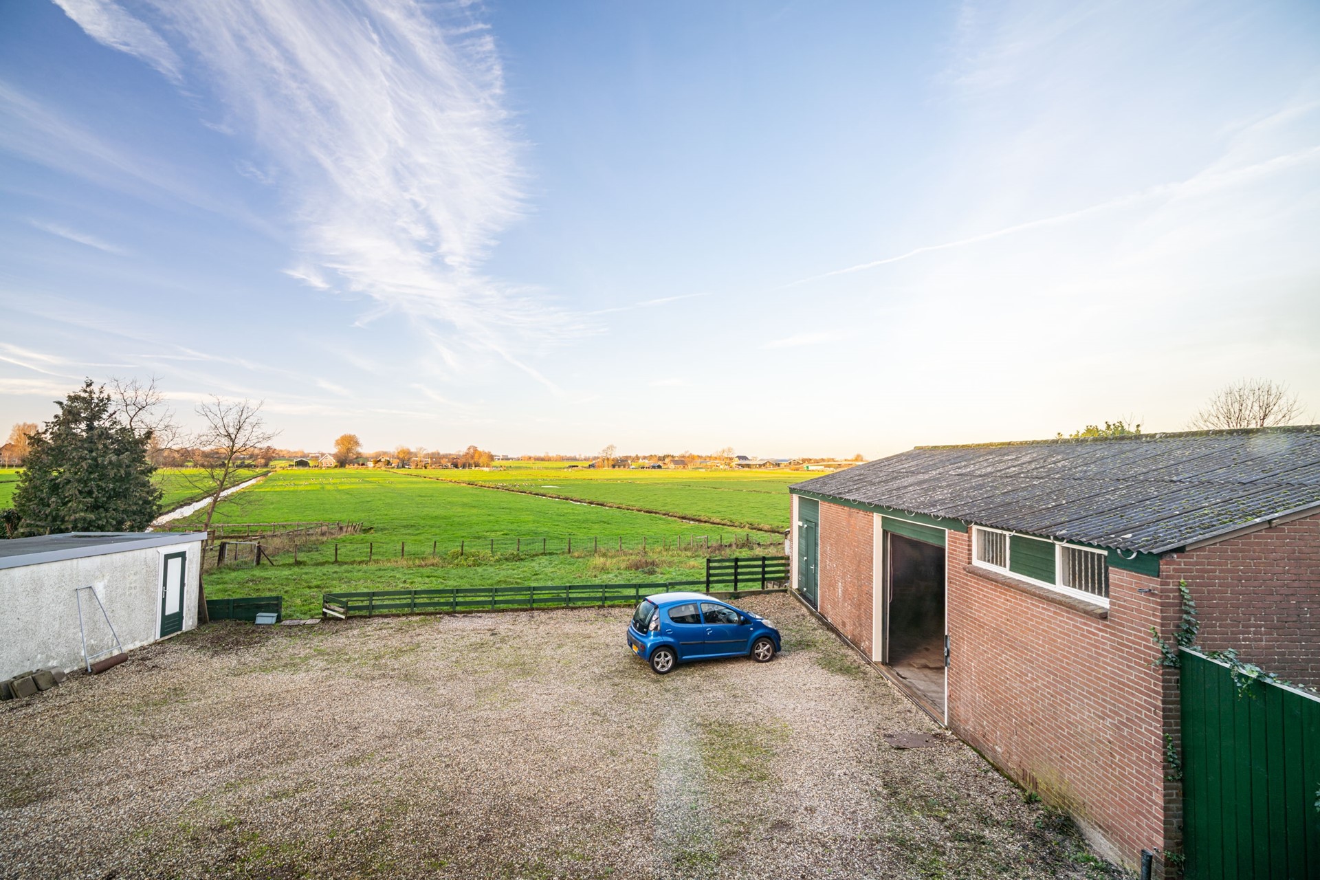 Nog vóórdat u het erf bereikt, rijdt u over een charmant bruggetje dat direct het landelijke karakter van deze plek benadrukt. Eenmaal aangekomen ontvouwt zich een indrukwekkend perceel van circa 1.600 m², bestaande uit twee percelen, waar mogelijkheden werkelijk legio zijn.